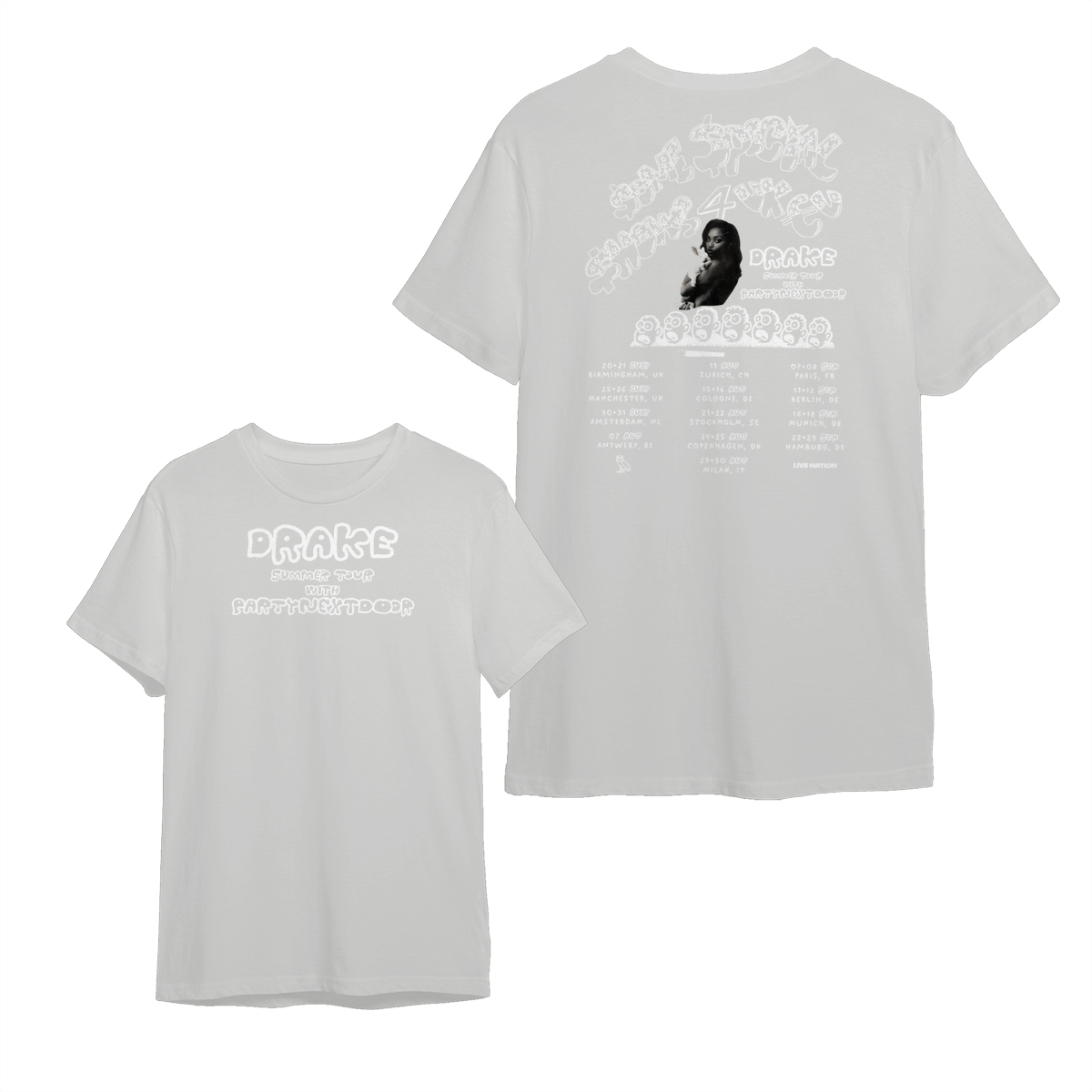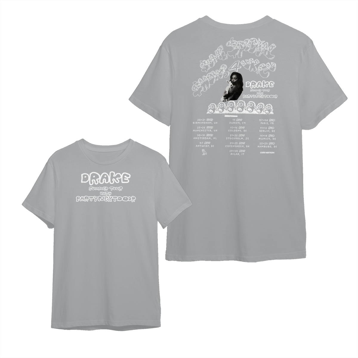 Drake Summer Tour T-Shirt – Black Concert Tee Featuring PARTYNEXTDOOR, Bold Graphic Back Print with Tour Dates, Hip-Hop Streetwear for Fans