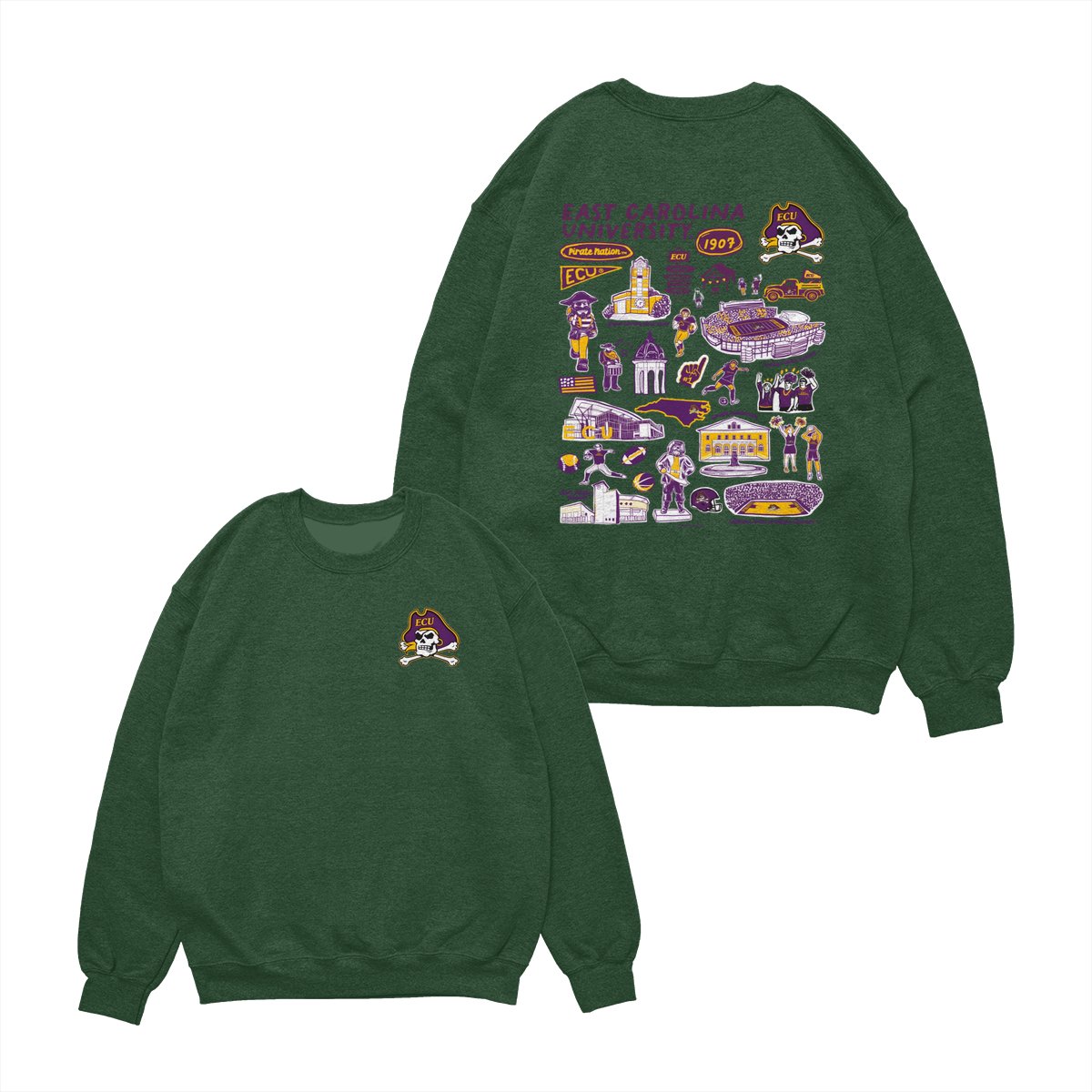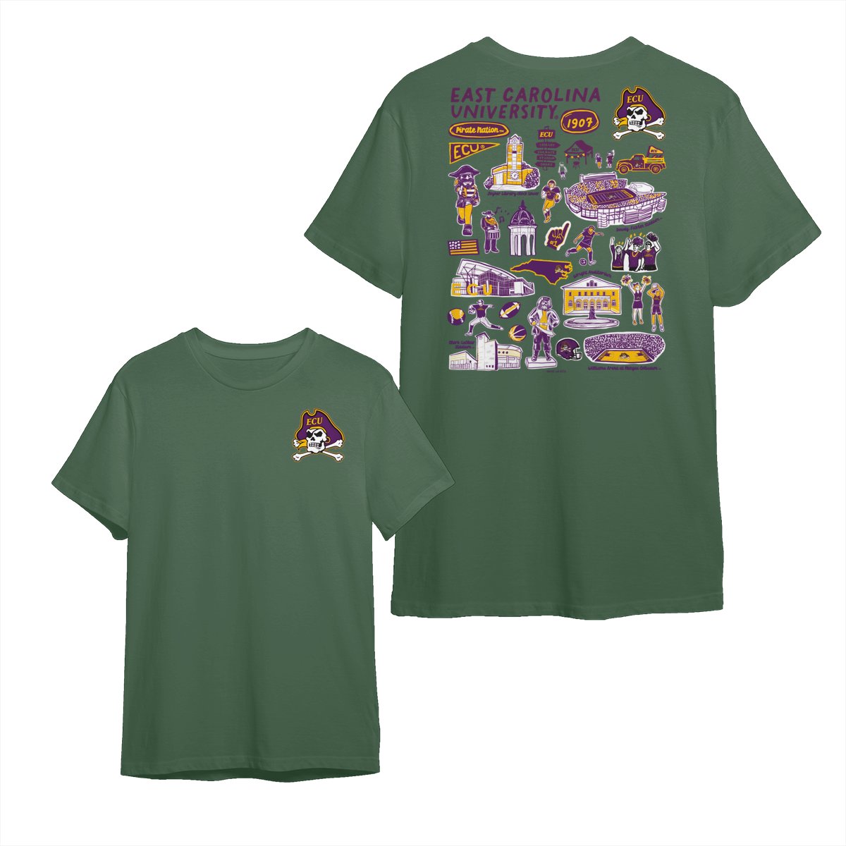 East Carolina Pirates Artwork T-Shirt – Vintage ECU Campus Map Design, Pirate Nation Spirit Tee, Unisex College Fan Shirt