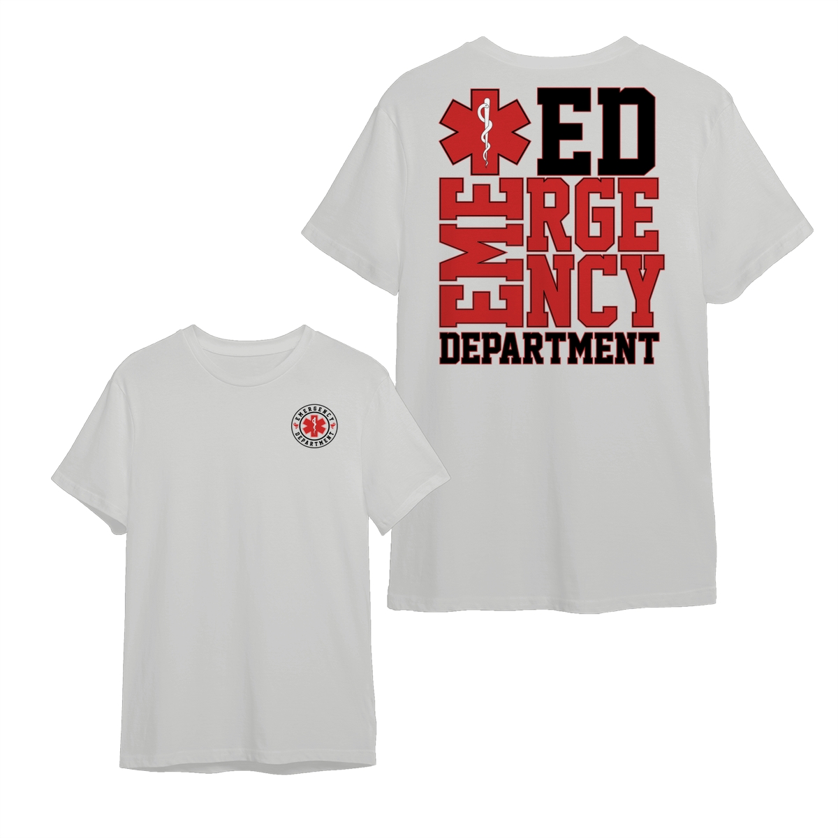 EMT Emergency Department T-Shirt – Bold Red Star of Life & Text Design – Ideal for Paramedic, Nurse, Firefighter & Rescue Team Members – Unisex EMS Tee