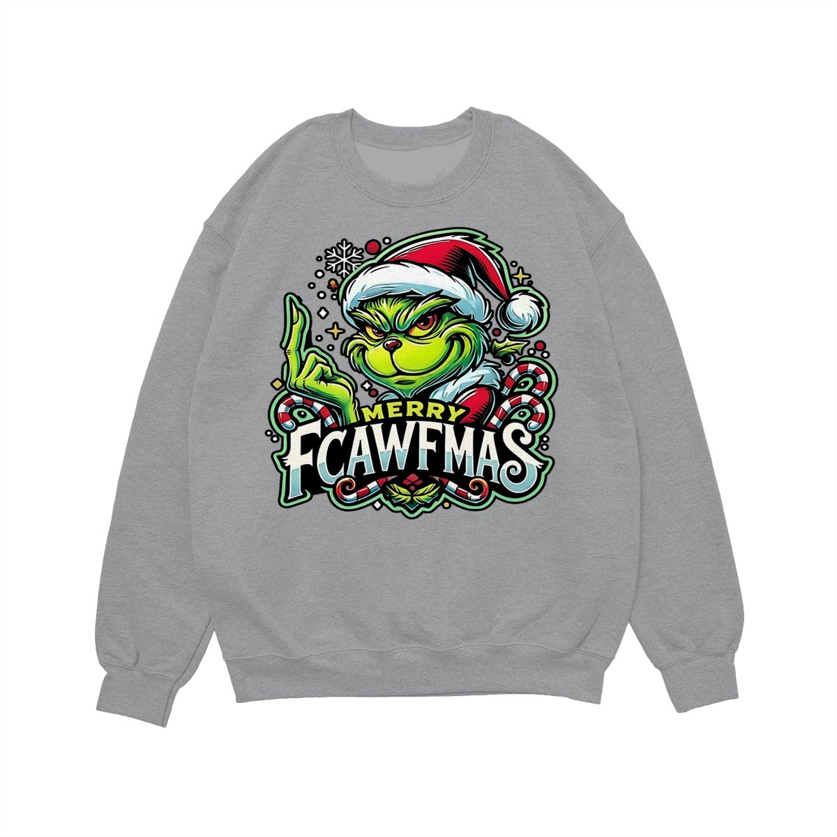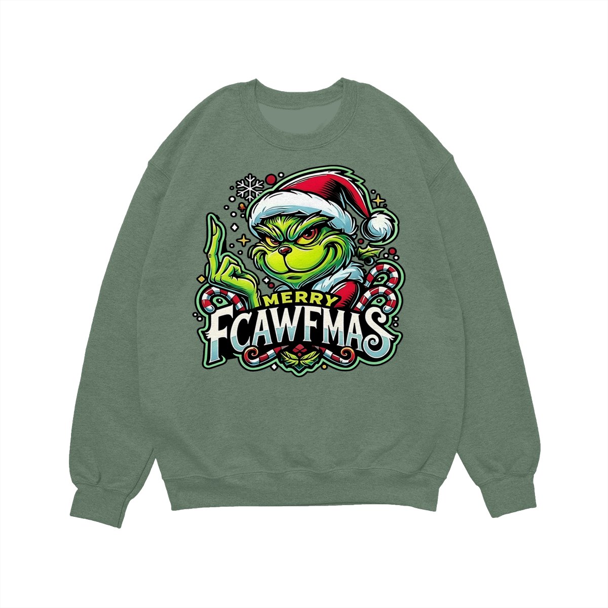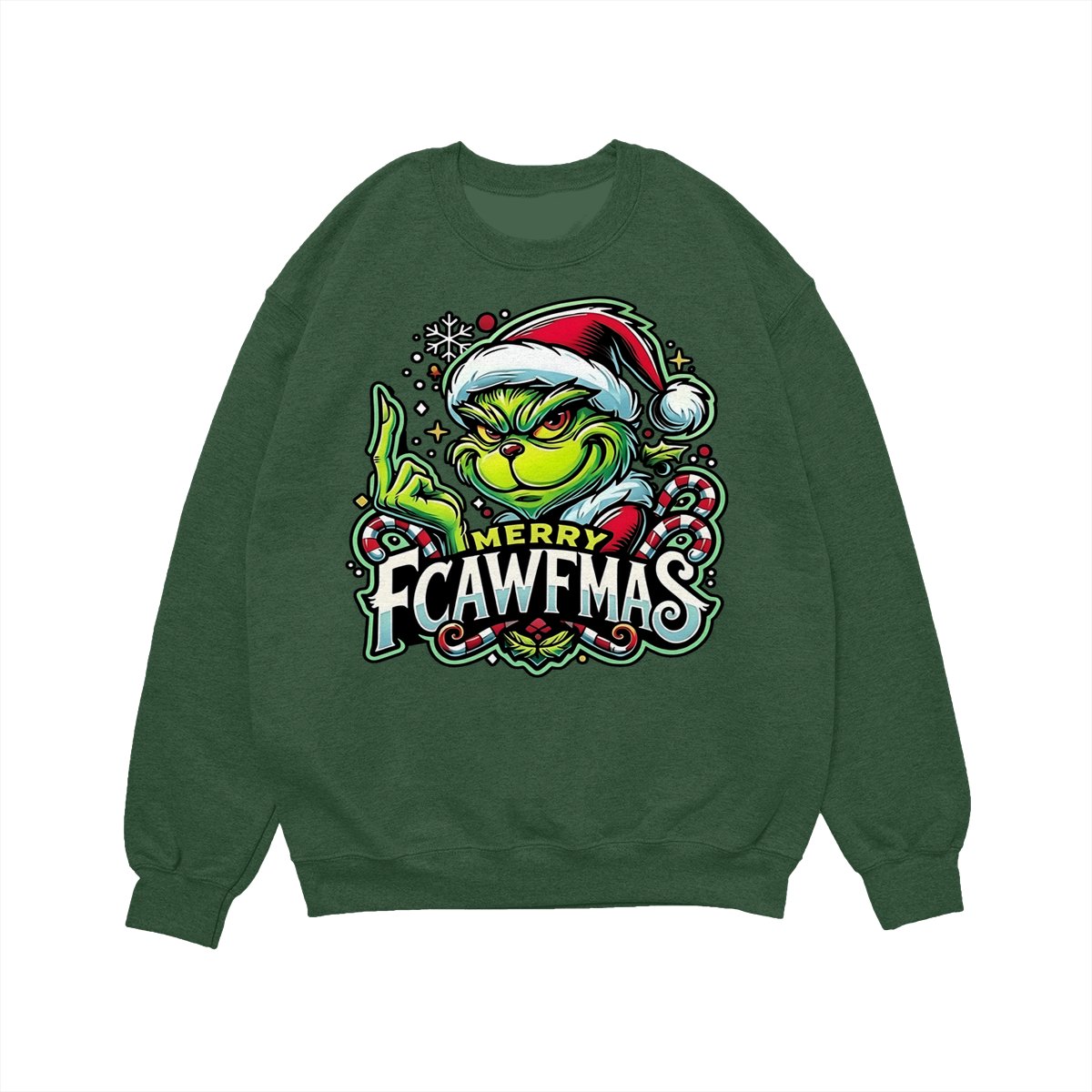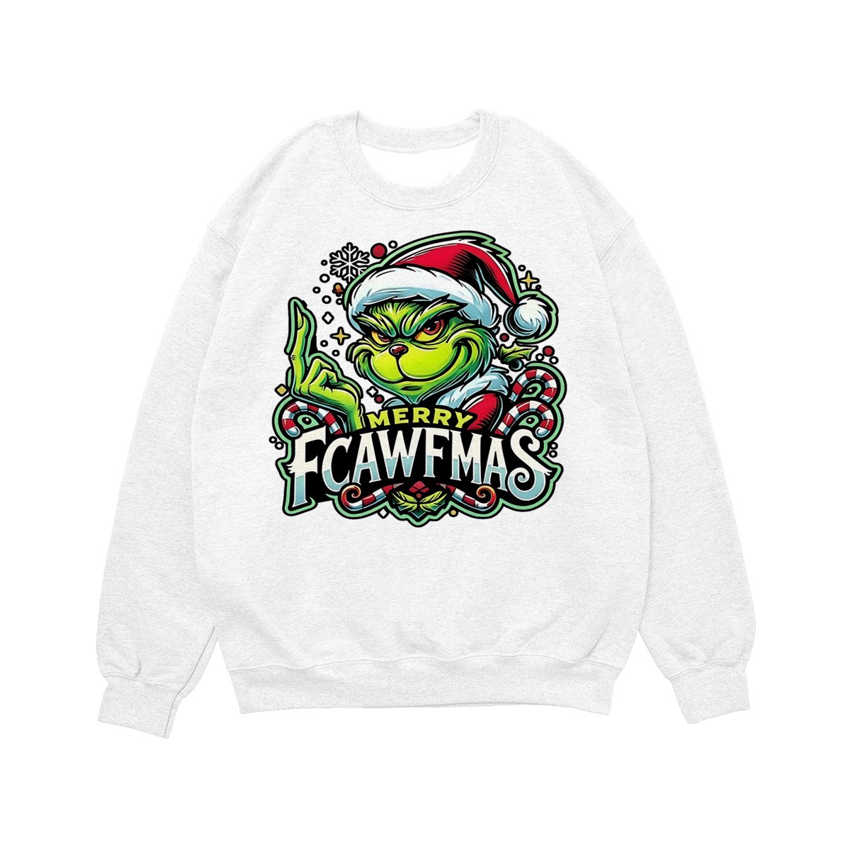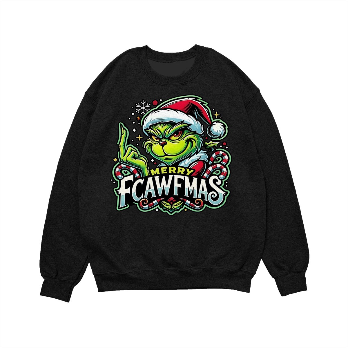 F-Caw-F Grinch Christmas Sweatshirt, Merry FCAWFMAS Graphic, Funny Green Mischief Character, Unisex Ugly Xmas Jumper