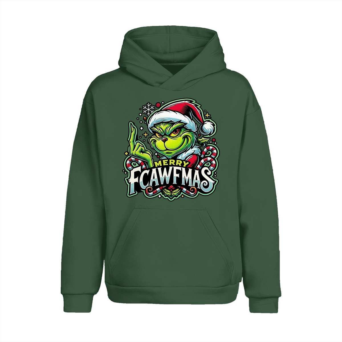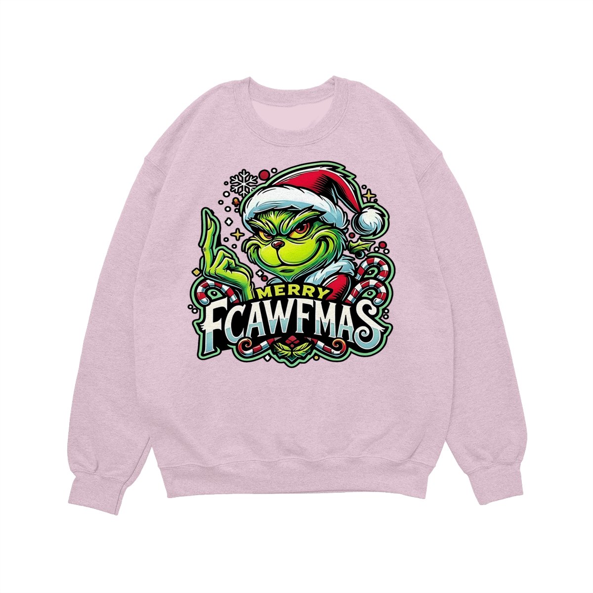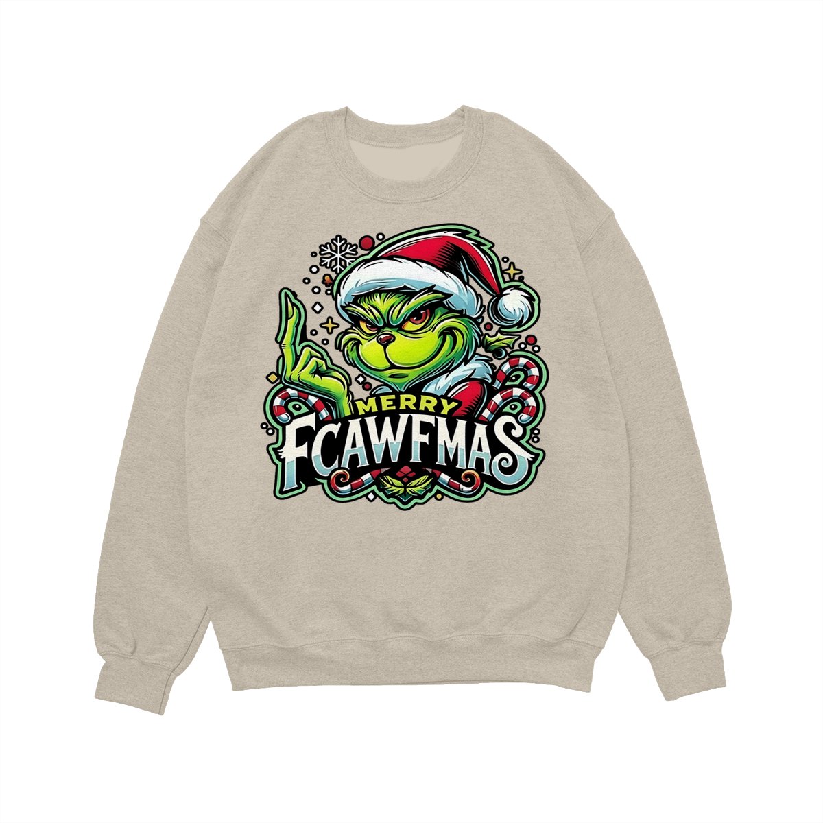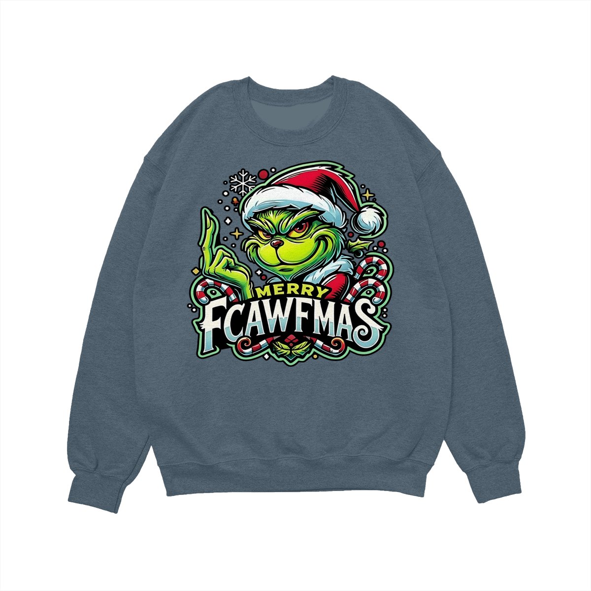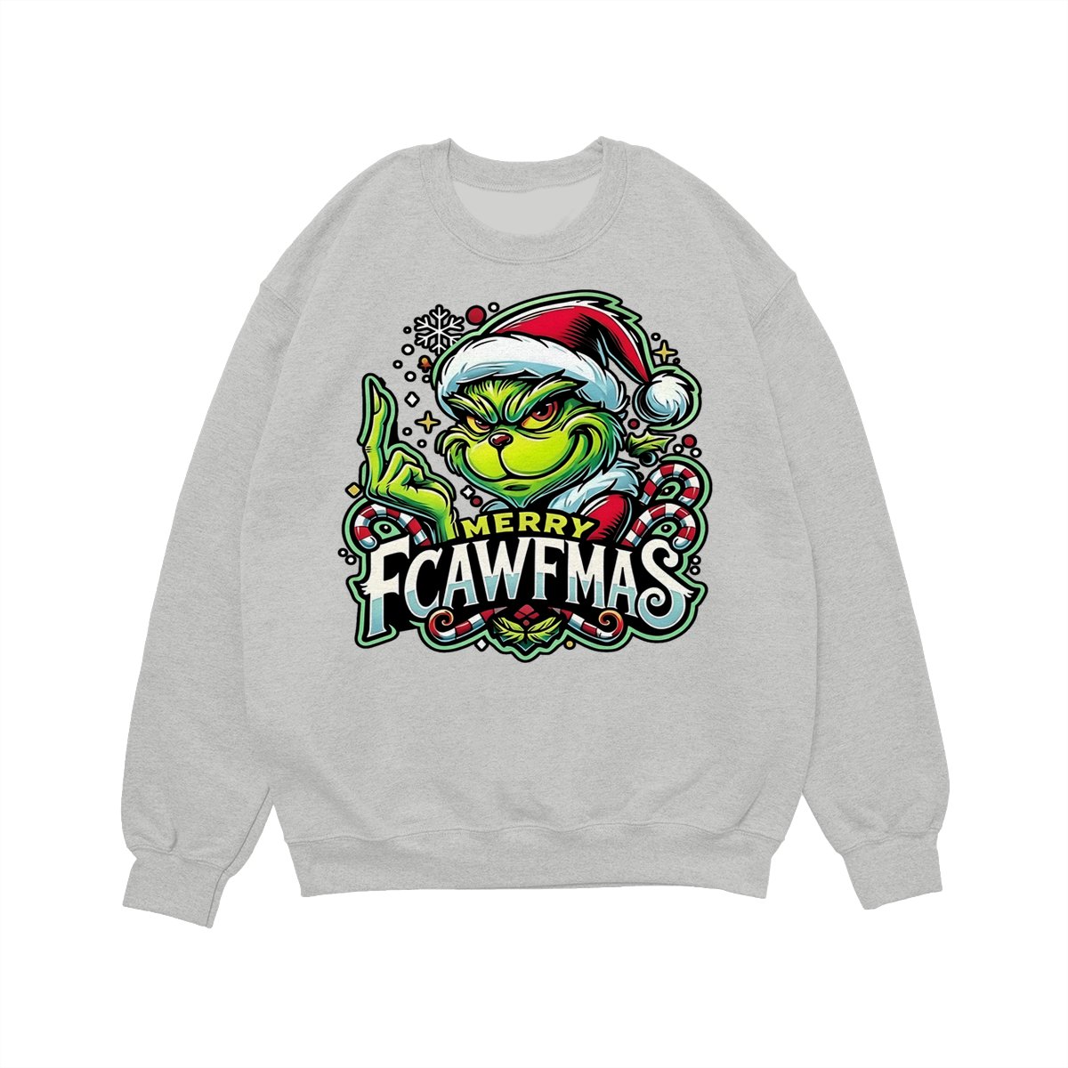 F-Caw-F Grinch Christmas Sweatshirt, Merry FCAWFMAS Graphic, Funny Green Mischief Character, Unisex Ugly Xmas Jumper