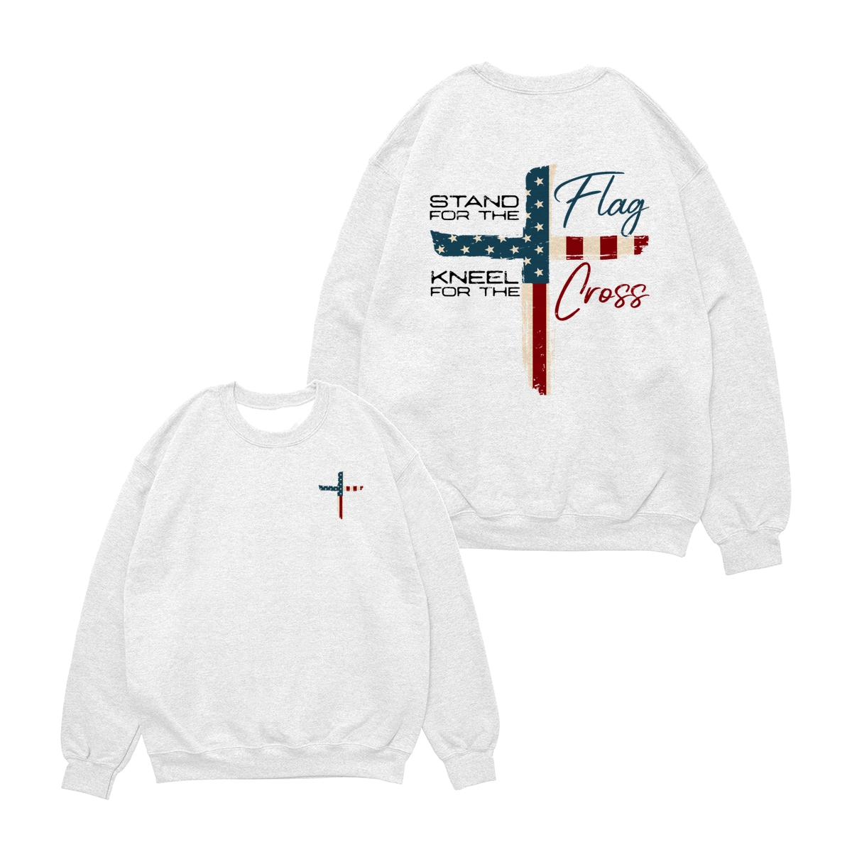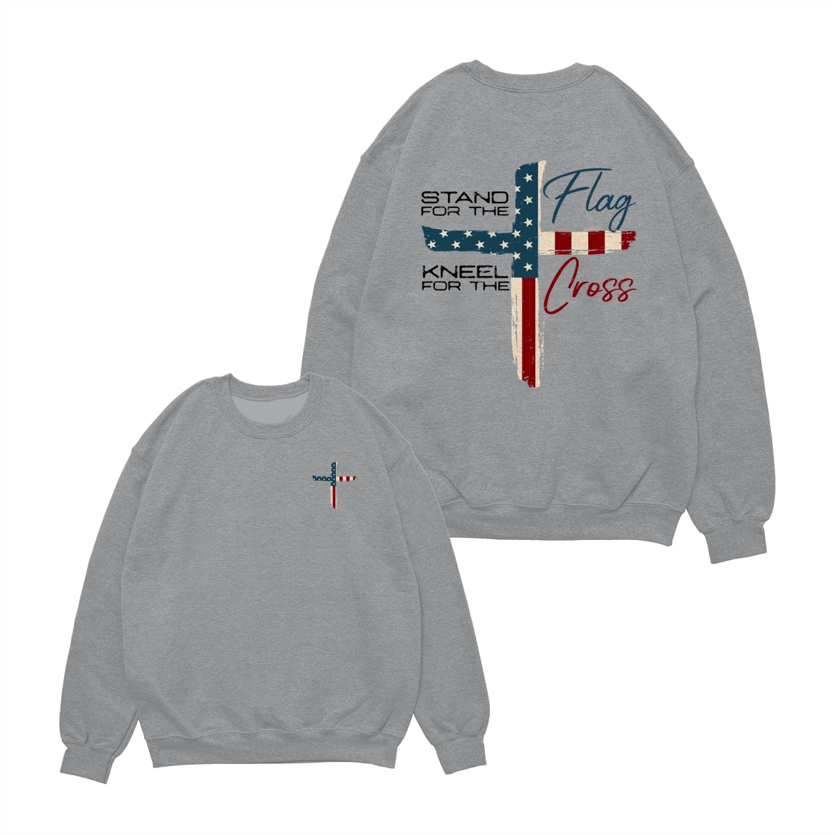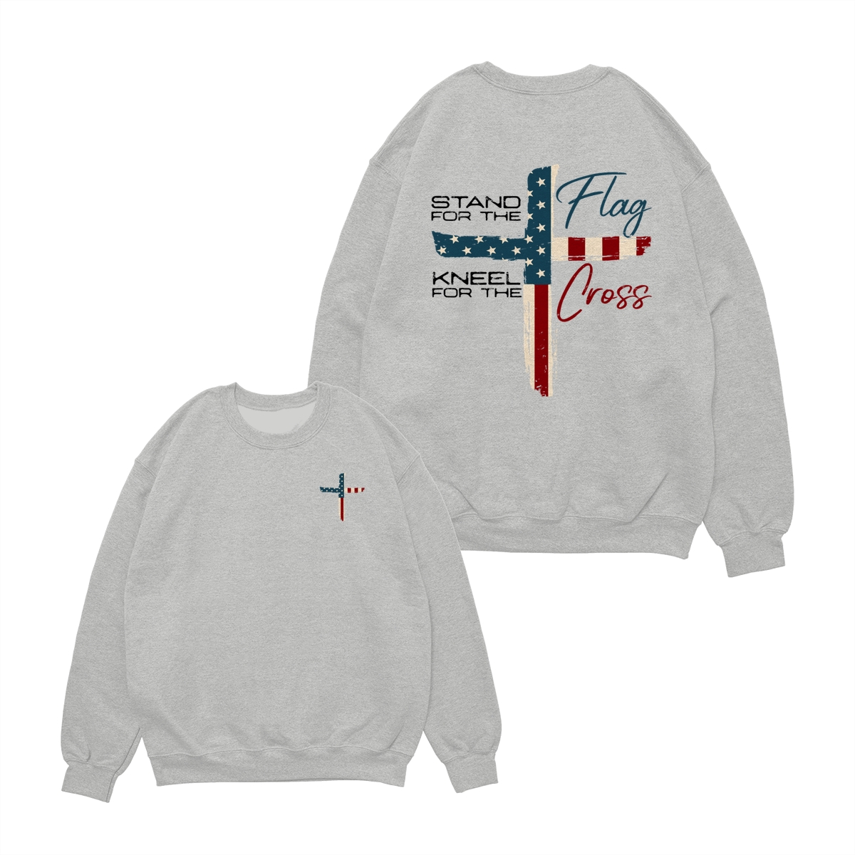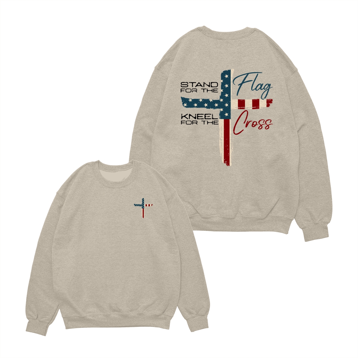 Faith & Freedom T-Shirt – Stand for the Flag, Kneel for the Cross Graphic Tee with USA Flag & Rustic Cross, Trending Patriotic Shirt 2025