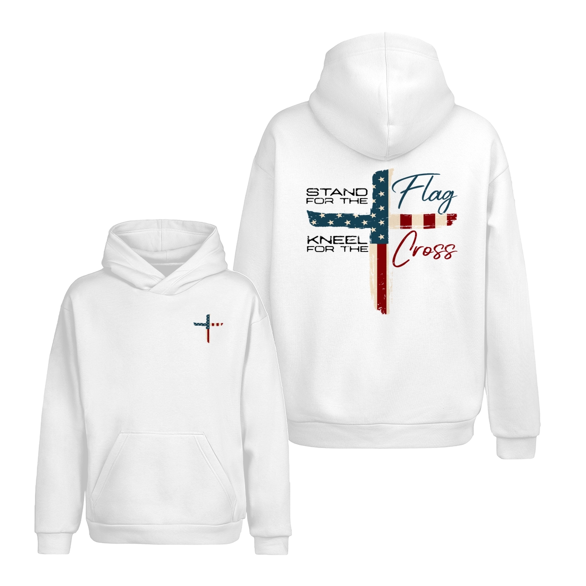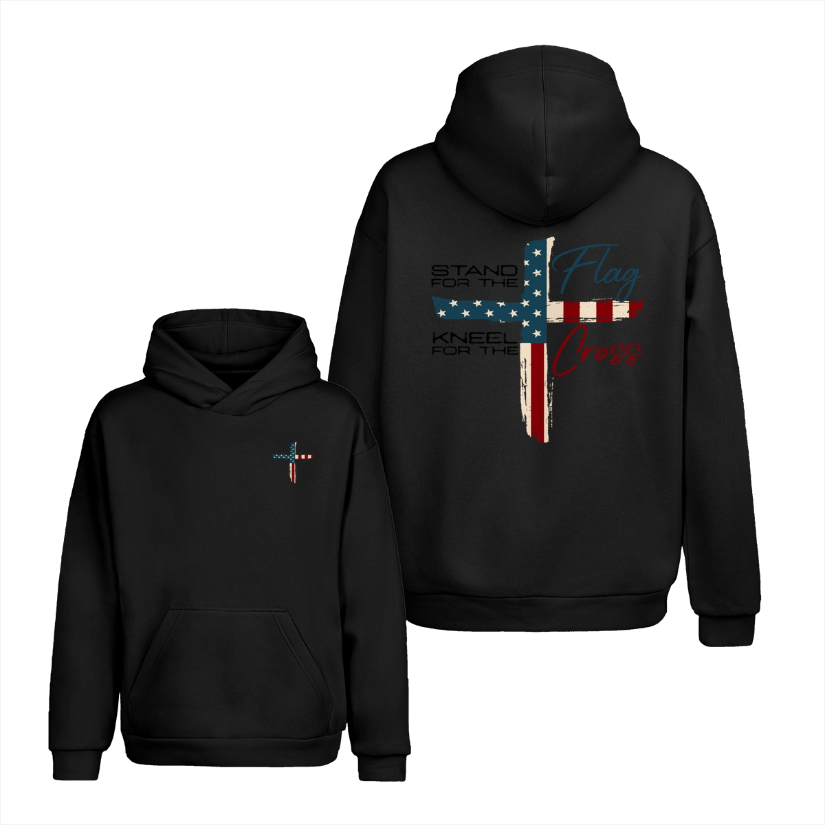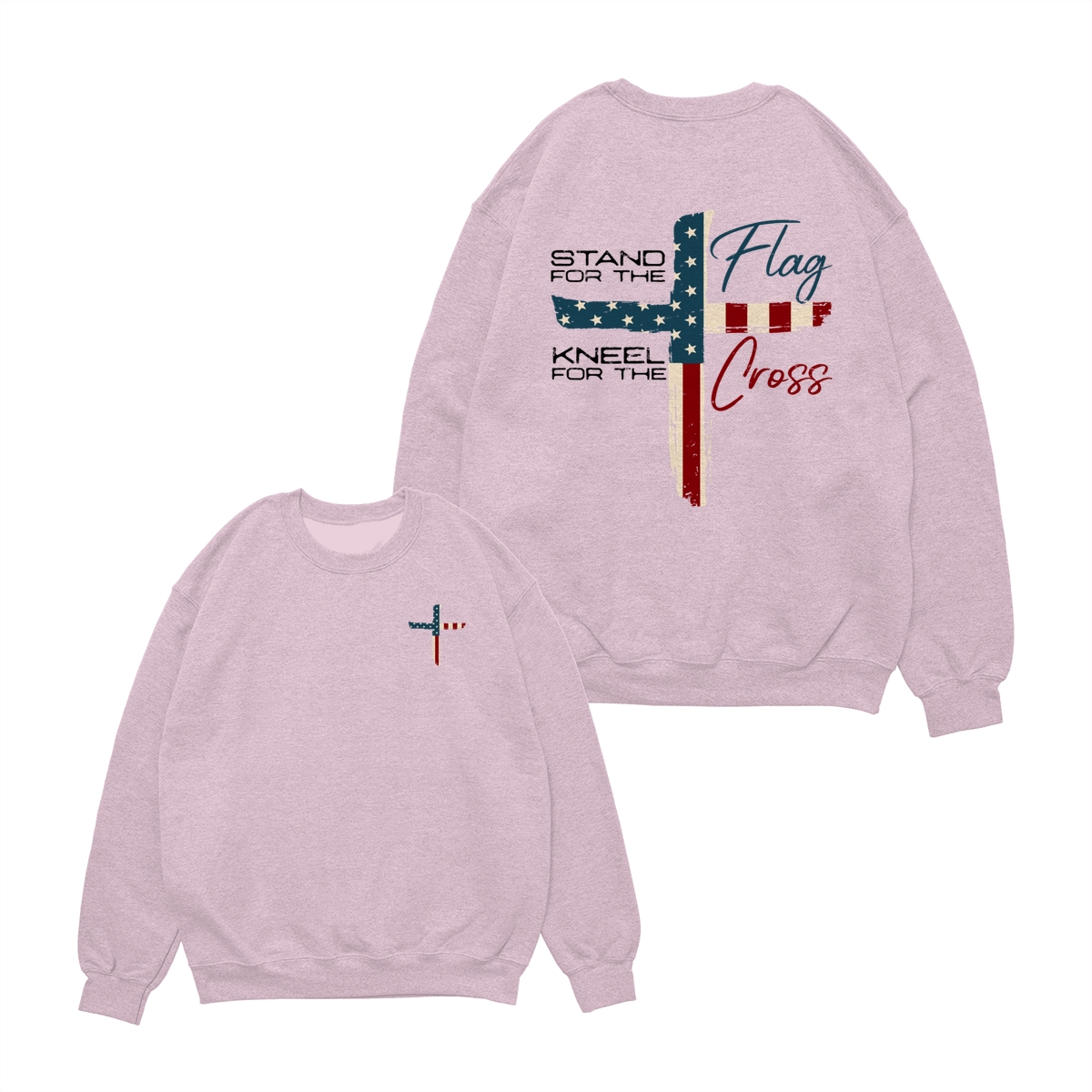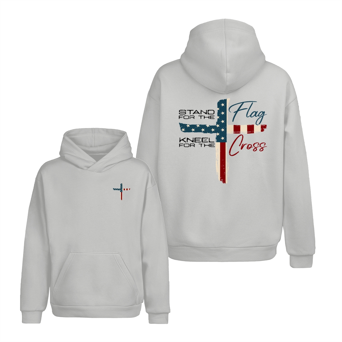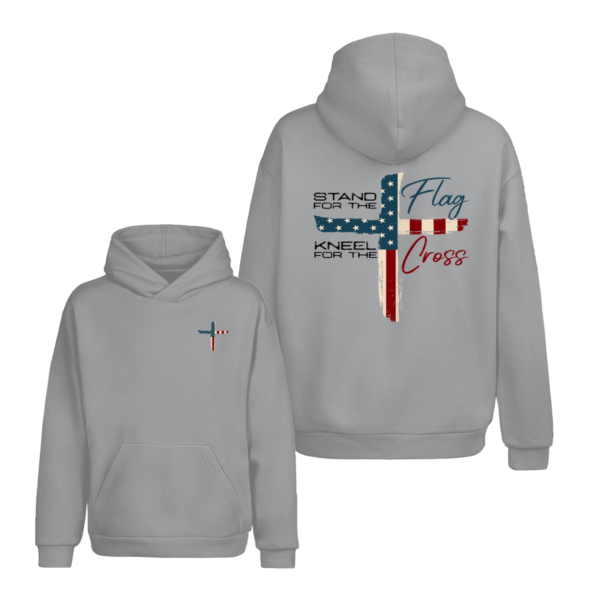 Faith & Freedom T-Shirt – Stand for the Flag, Kneel for the Cross Graphic Tee with USA Flag & Rustic Cross, Trending Patriotic Shirt 2025