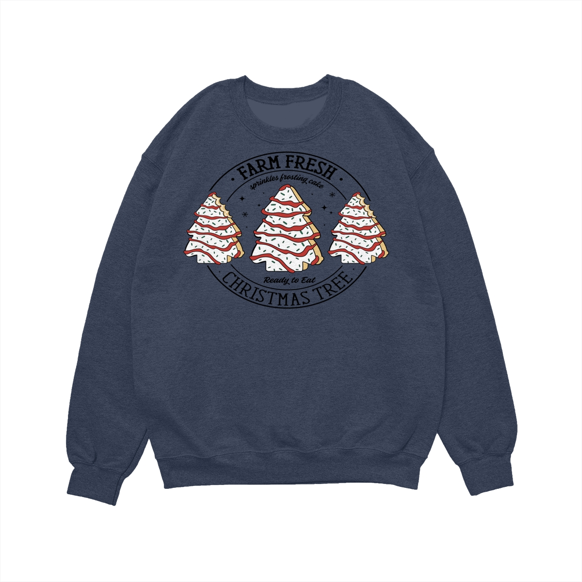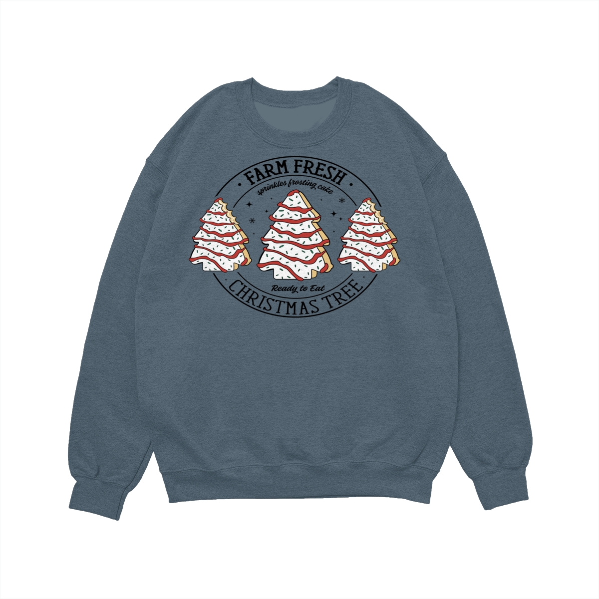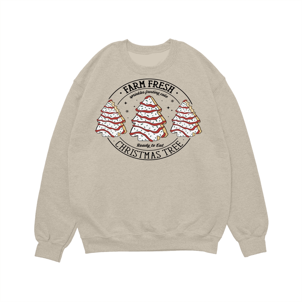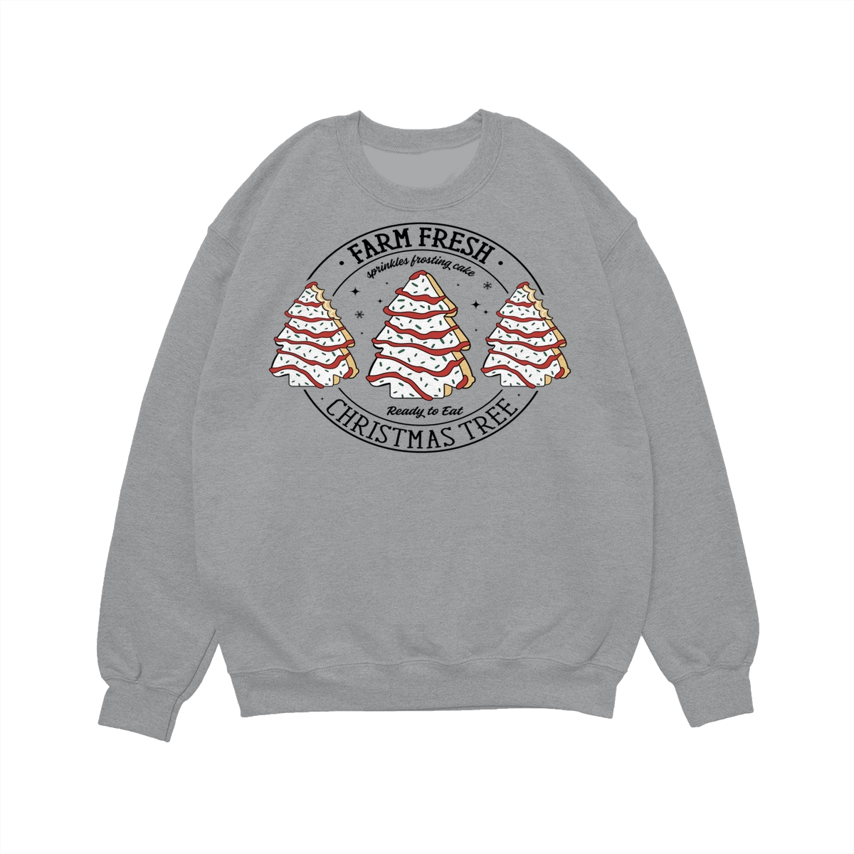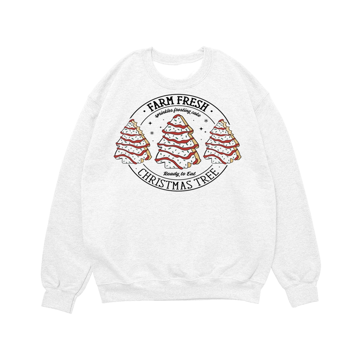 Farm Fresh Christmas Tree Sweatshirt, Festive Crewneck with Cake Design, Cozy Holiday Pullover for Women, Cute Seasonal Wear, Gift Ready
