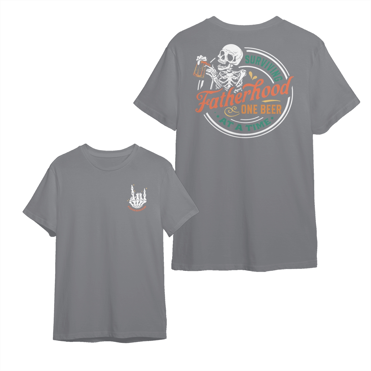 Fatherhood T-Shirt – “Surviving Fatherhood One Beer at a Time” with Skeleton Graphic – tiktok shop store, Men’s & Women’s Casual Shirt – Top Tshirt