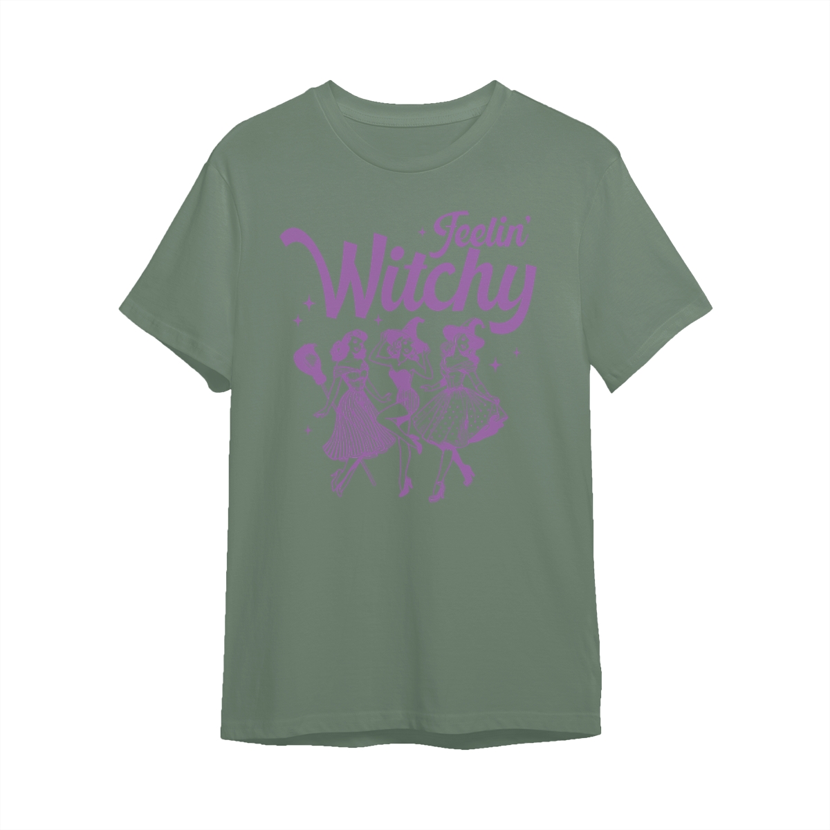Feelin’ Witchy Shirt, Trendy Halloween Tee, Oversiz Halloween Cotton T Shirt Tee Comfy