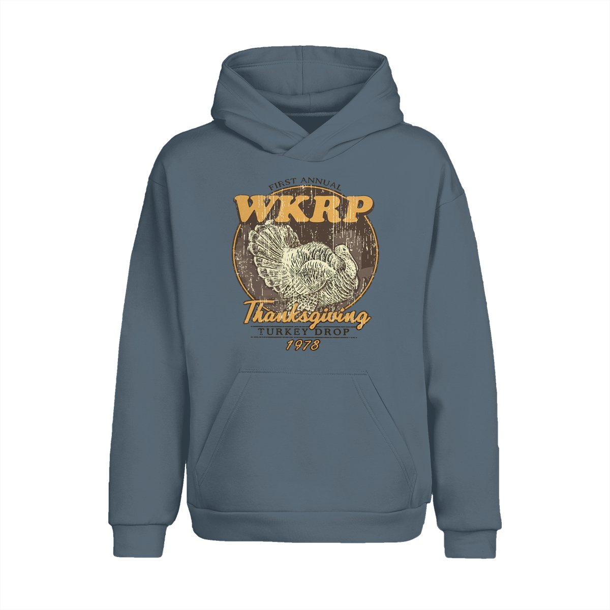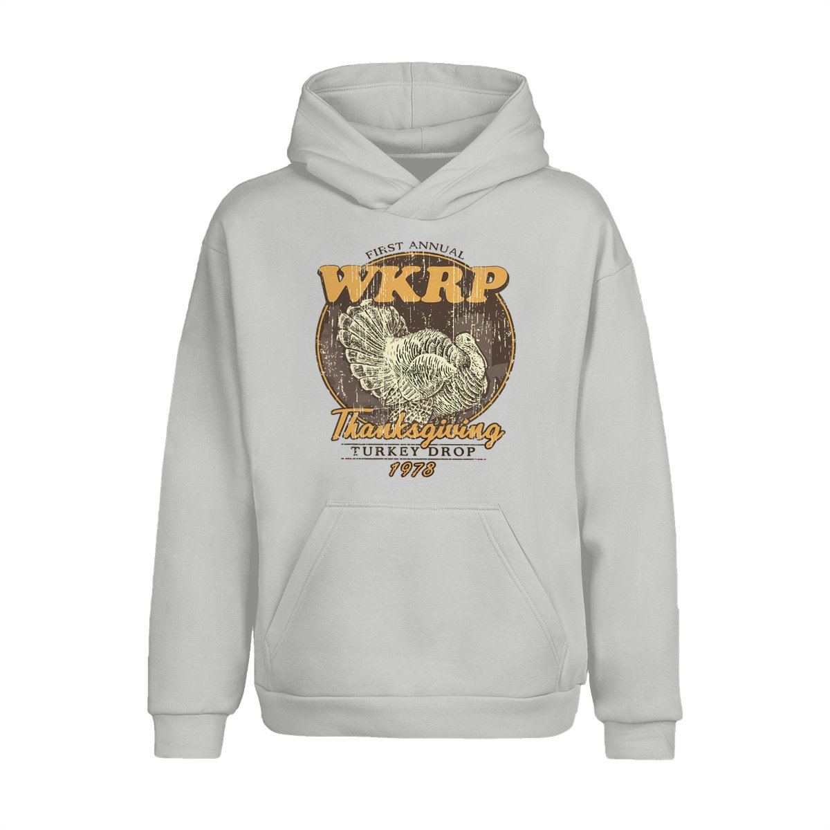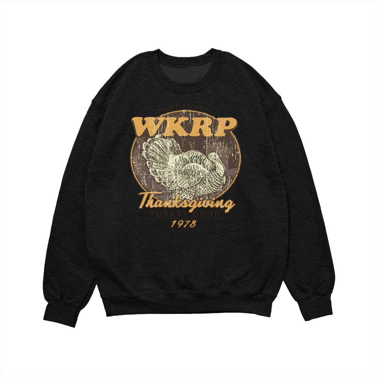 First Annual WKRP Turkey Drop Thanksgiving T-Shirt, Sweatshirt & Hoodie, Funny Turkey Day Tee for Men & Women, In Cincinnati Movie Sweatshirt, Retro Thanksgiving Gift Top
