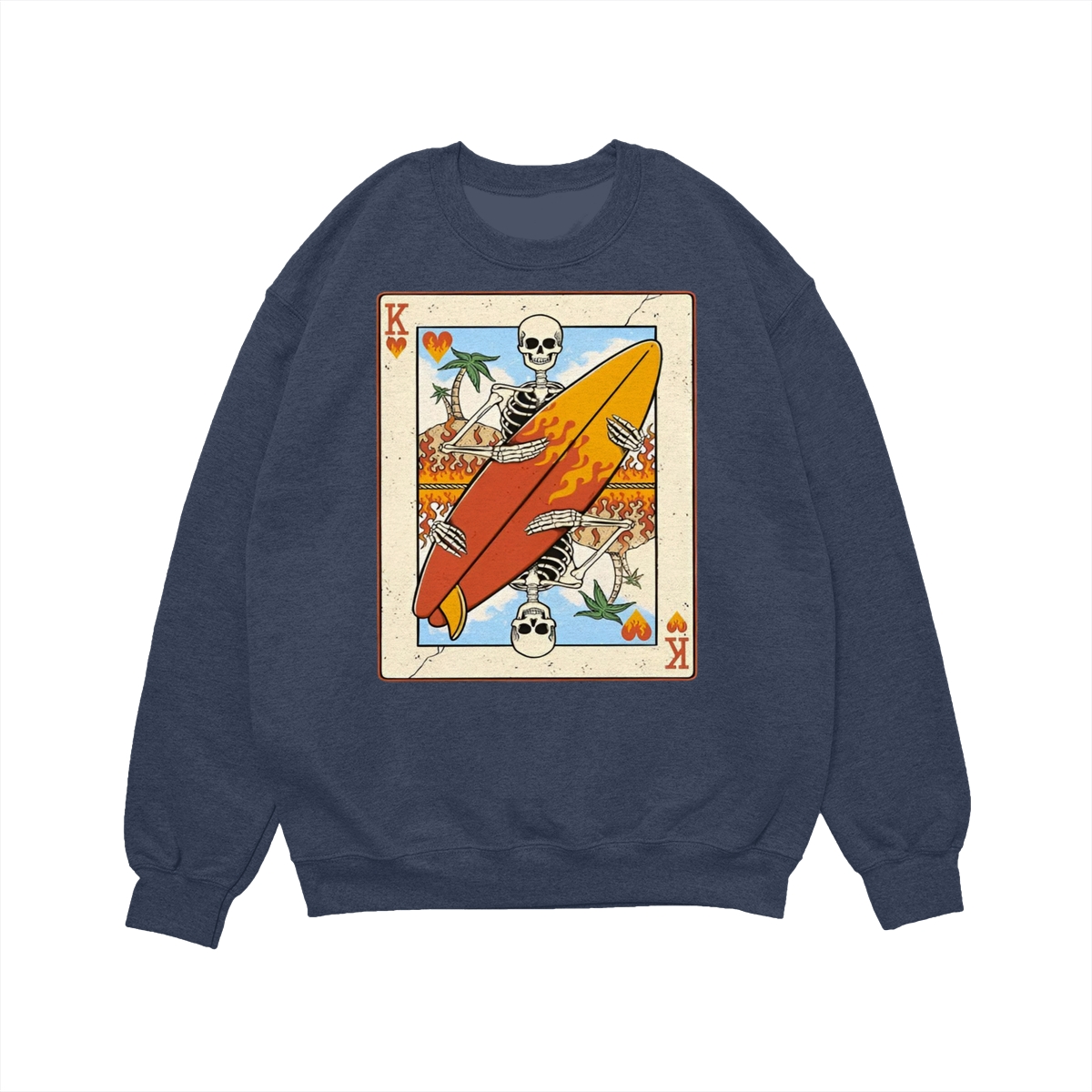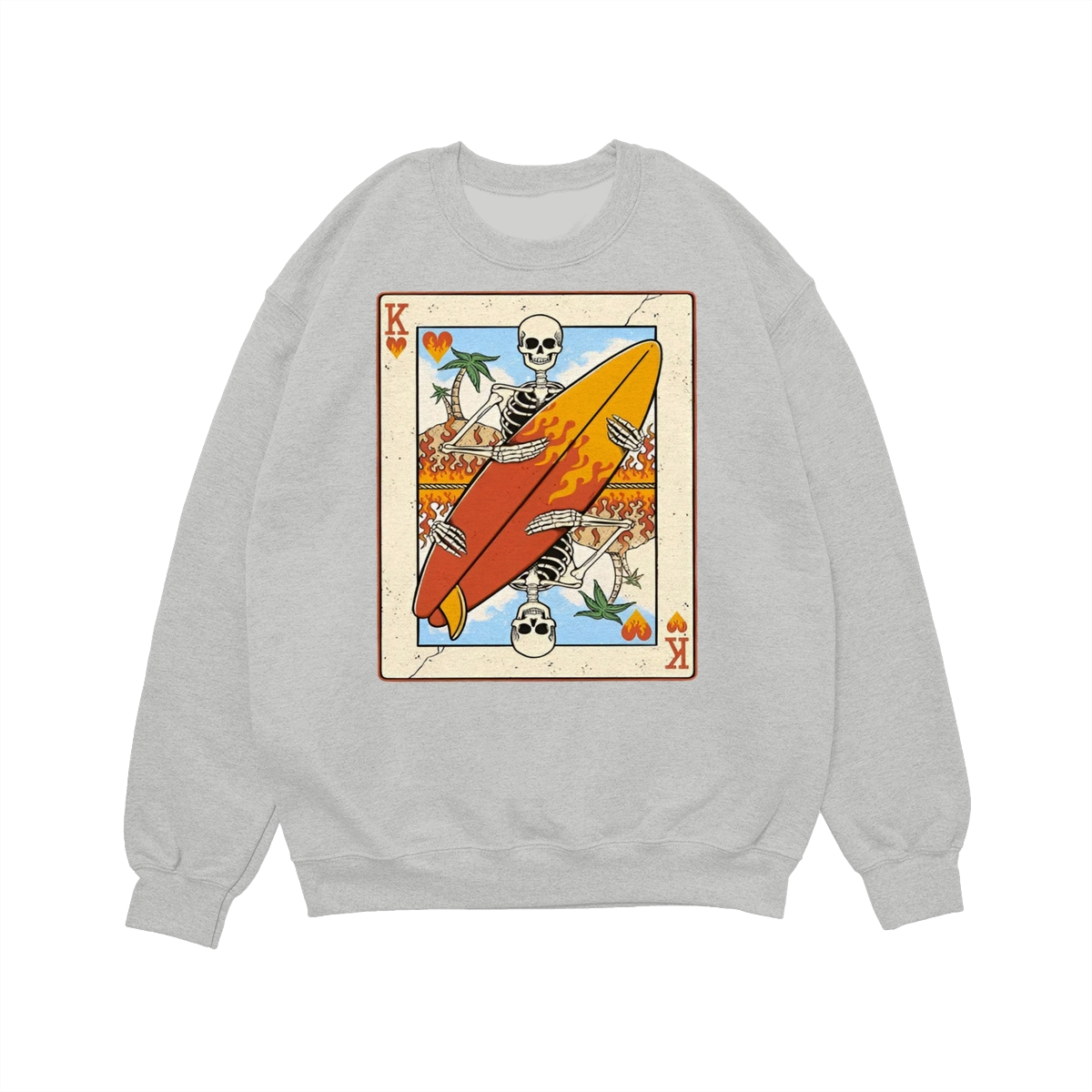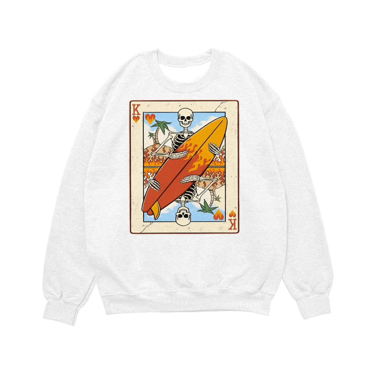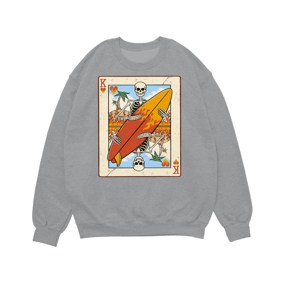 Flaming Surf King Skeleton Shirt – Vintage Playing Card Graphic Tee for Men & Women, Cool Beach Vibes Summer Shirt