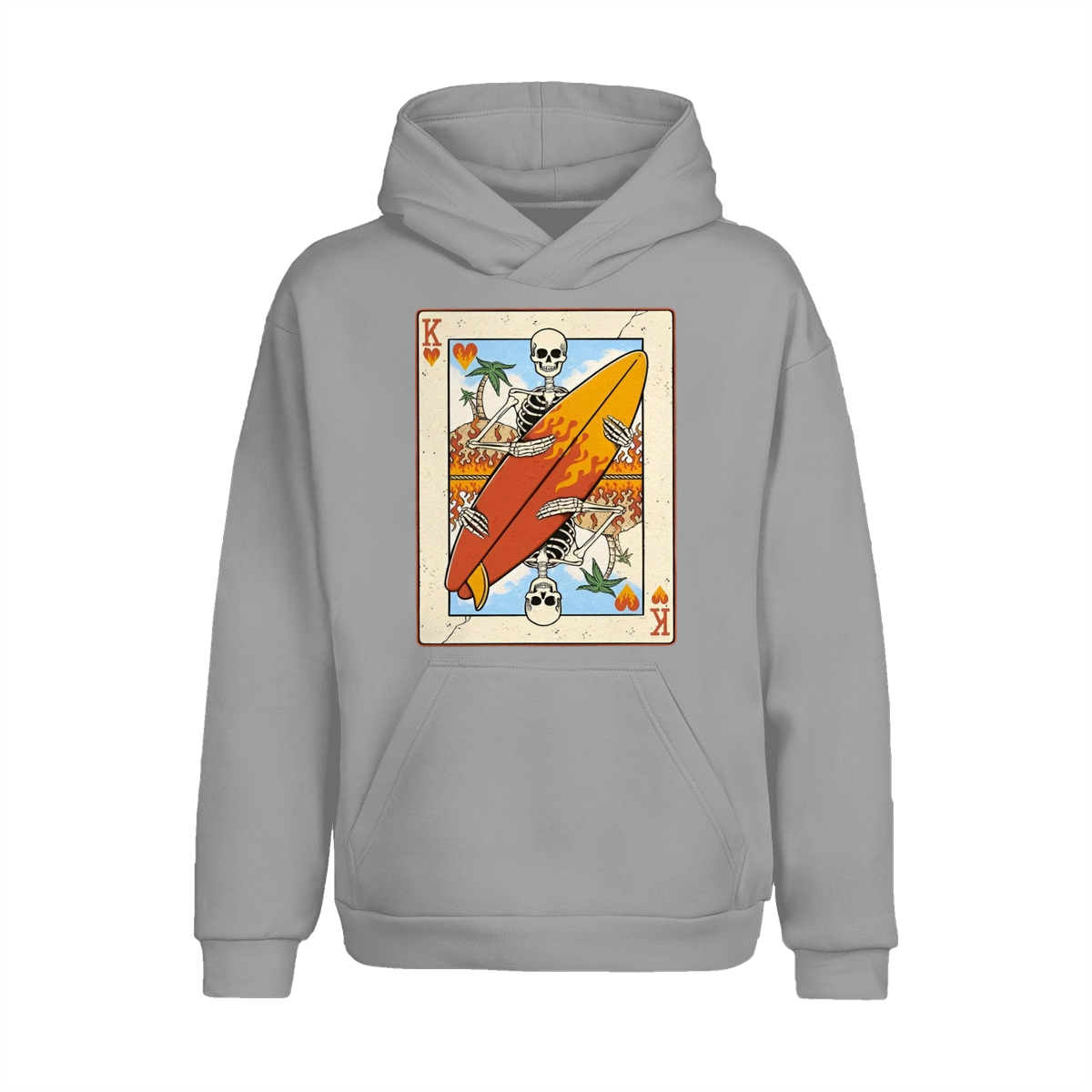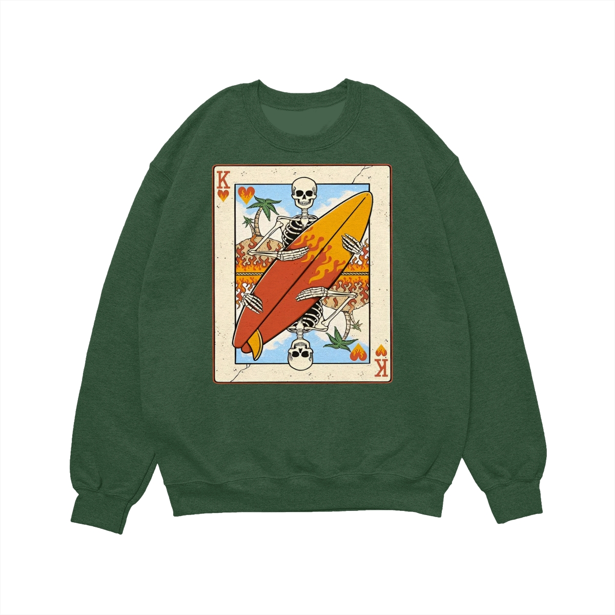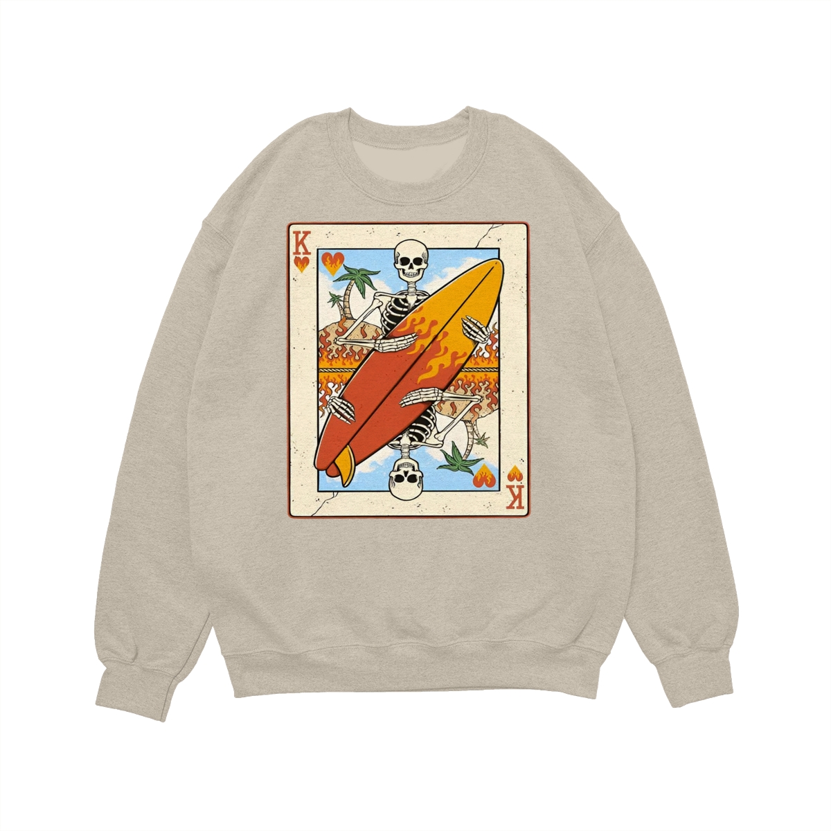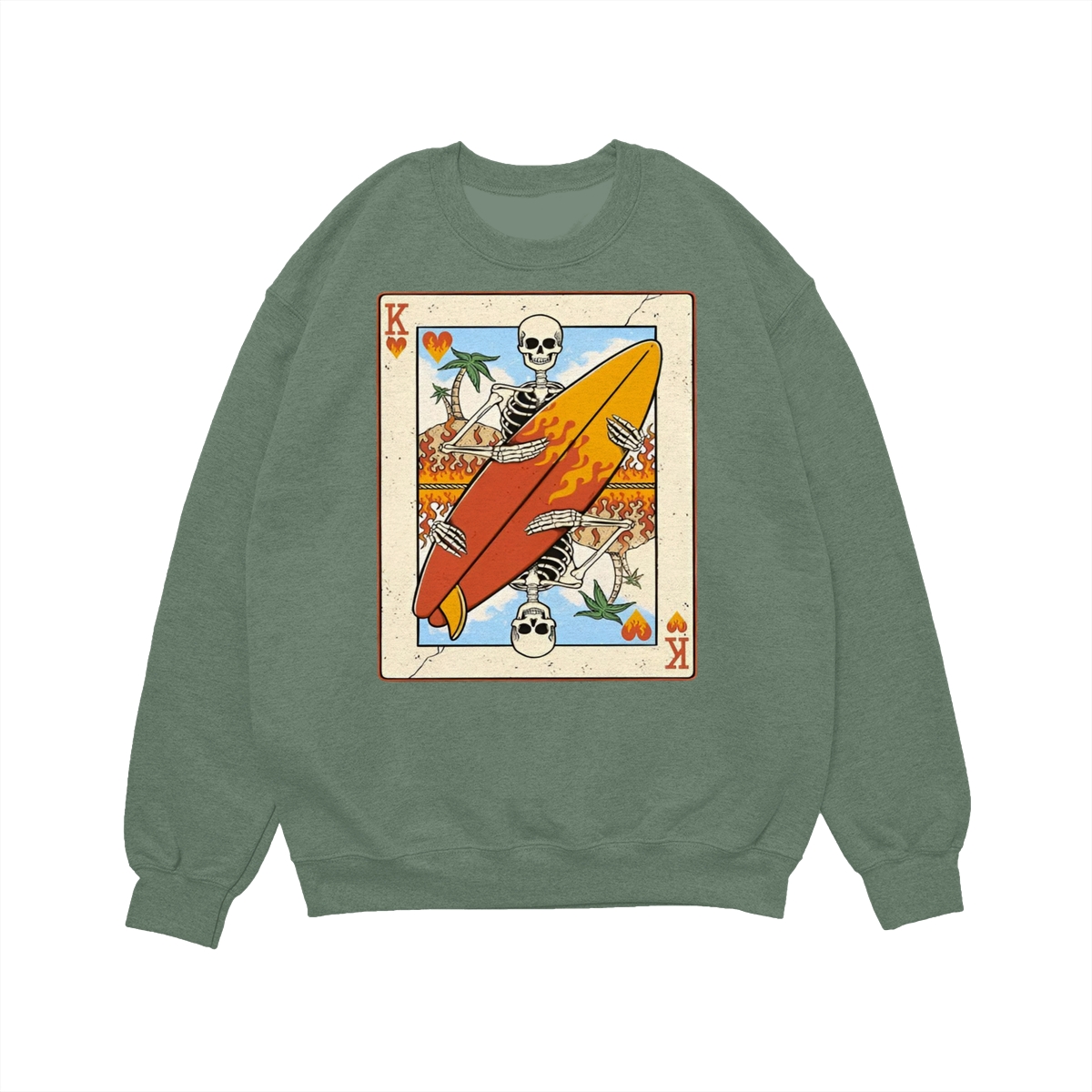Flaming Surf King Skeleton Shirt – Vintage Playing Card Graphic Tee for Men & Women, Cool Beach Vibes Summer Shirt