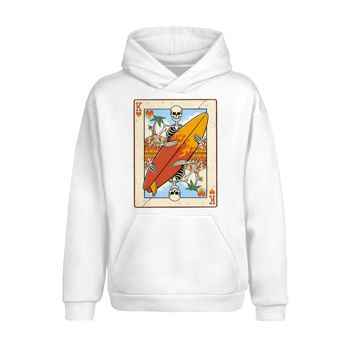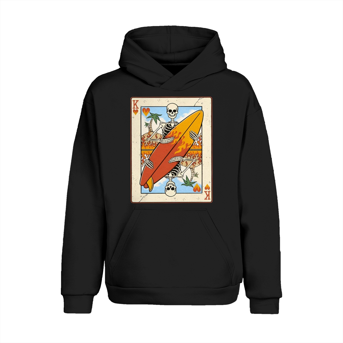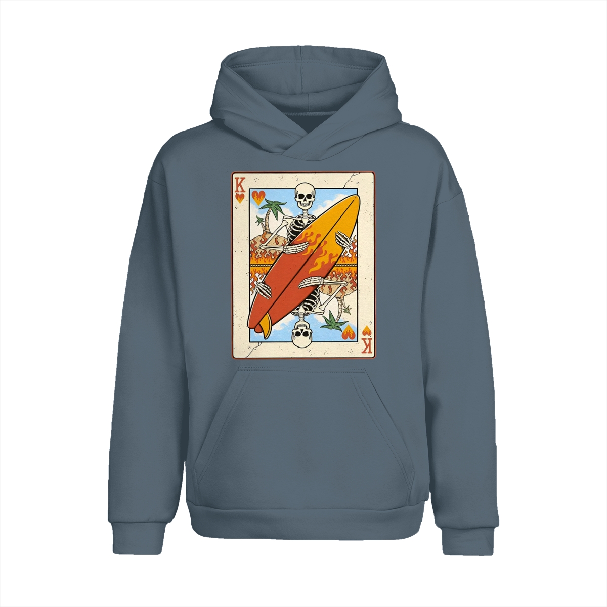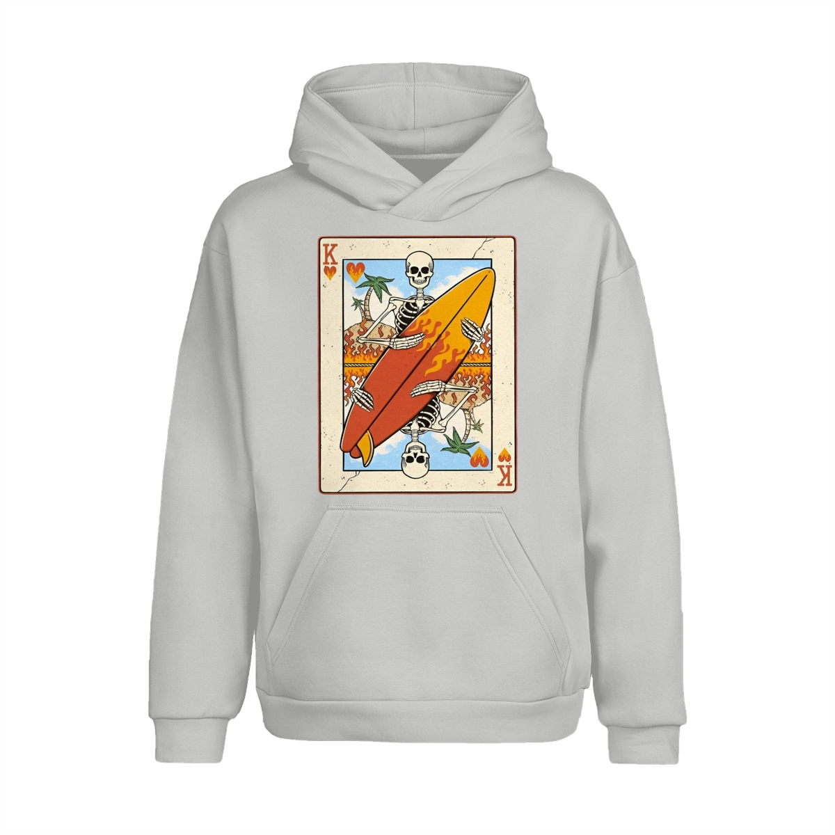 Flaming Surf King Skeleton Shirt – Vintage Playing Card Graphic Tee for Men & Women, Cool Beach Vibes Summer Shirt