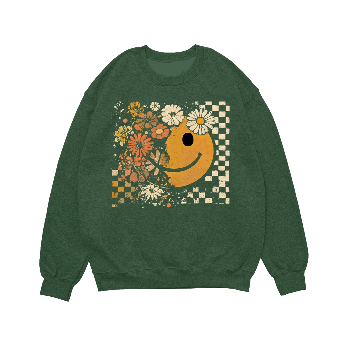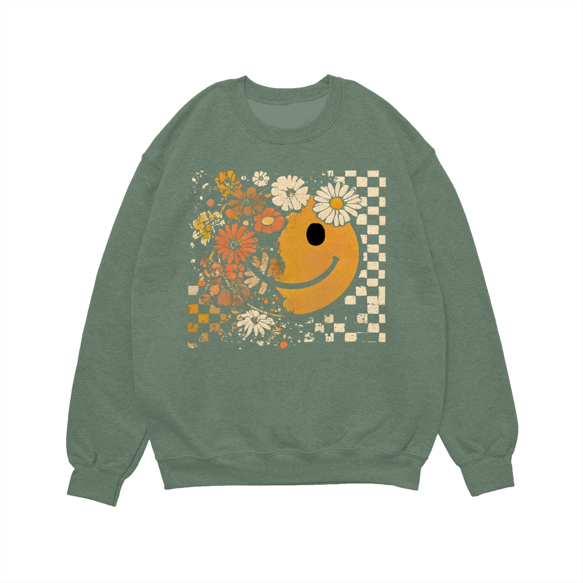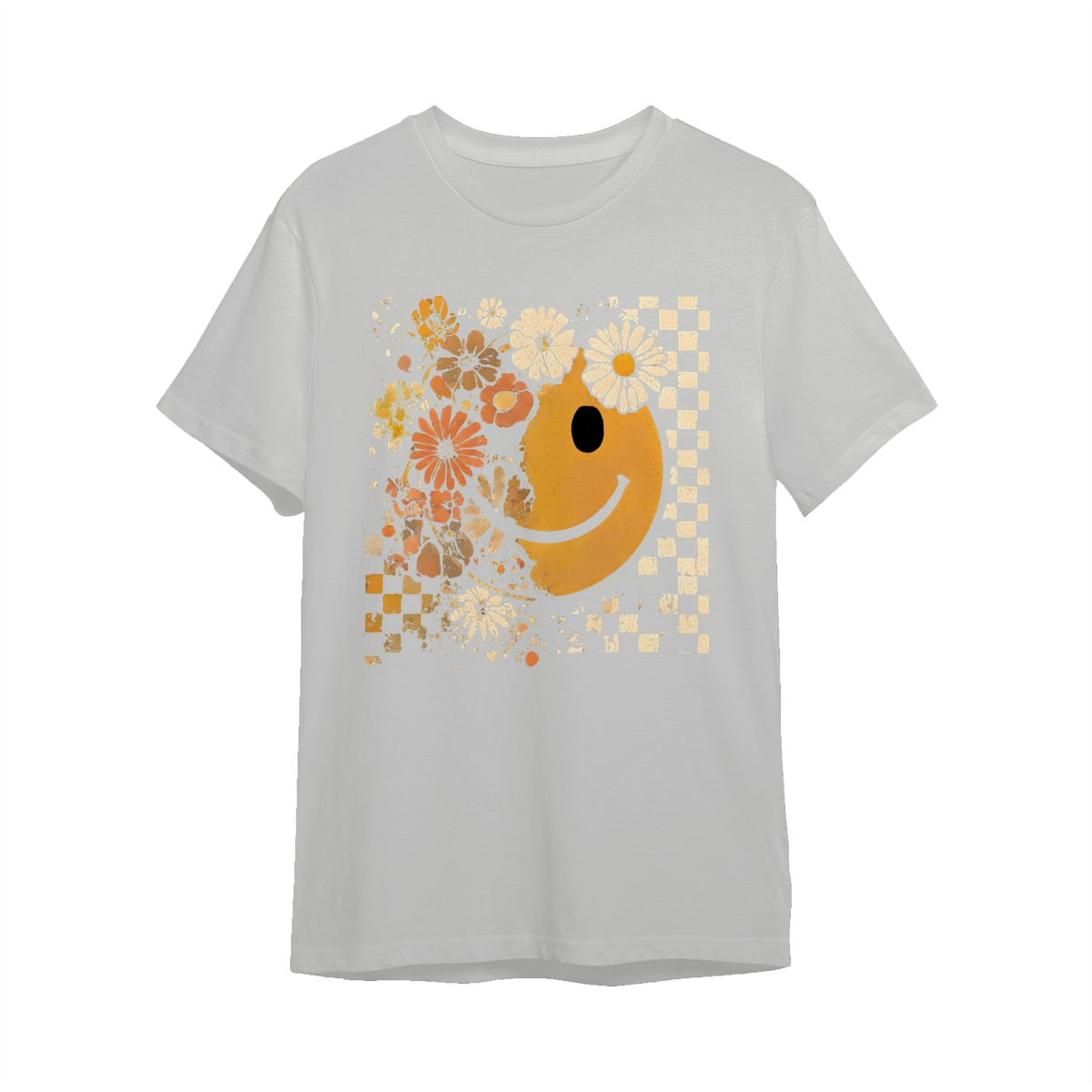 Floral Fall Smile Face Autumn Pumpkin Boho Floral T-Shirt, Fall Pumpkin Thanksgiving Shirt, Autumn Shirt, Fall Shirt, Women Fall Graphic Tee, Halloween Girly Halloween, Halloween Gift, Gift For Her, Gift For Him