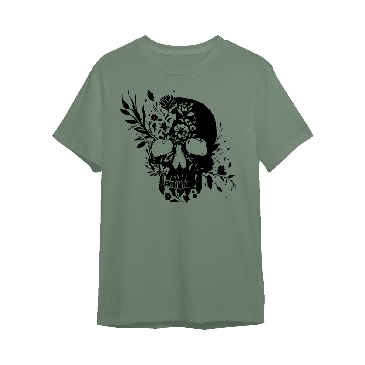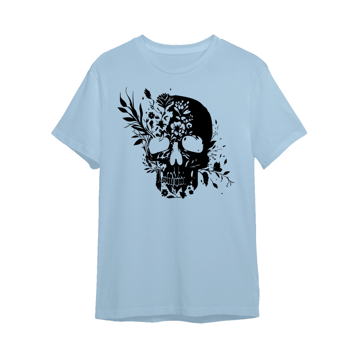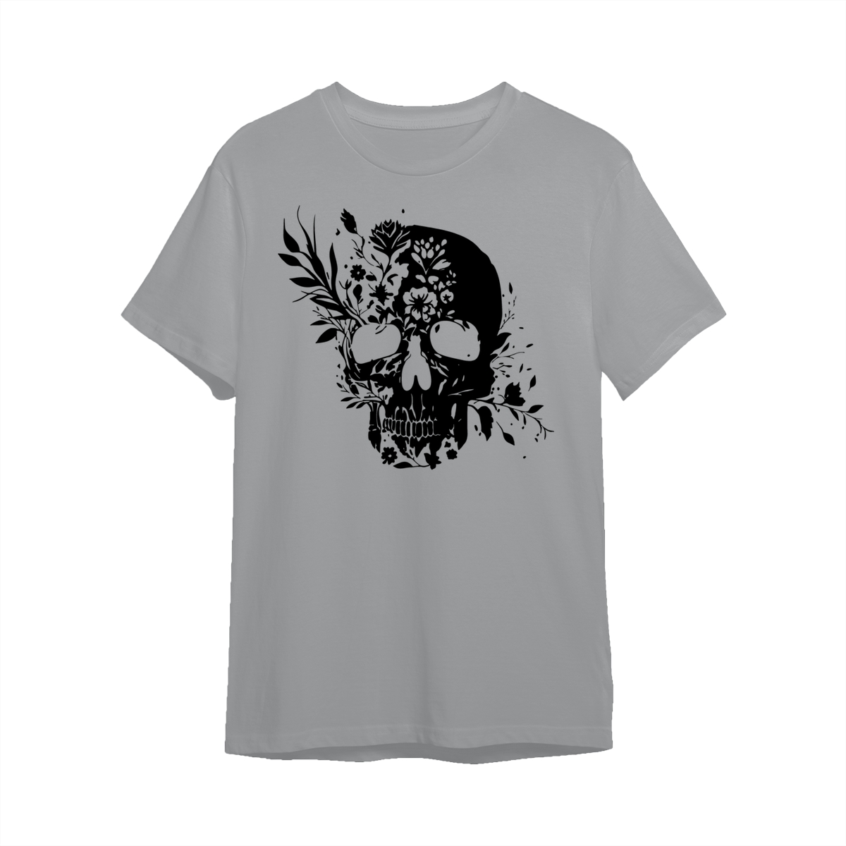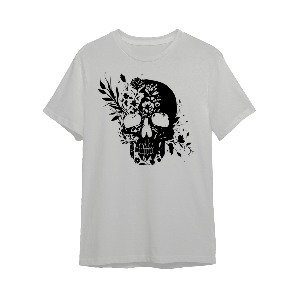 Floral Skeleton Shirt, Halloween Skull T-Shirt, Boho Spooky Tee, Large Skull with Flowers Graphic Image Vintage Fall TShirt