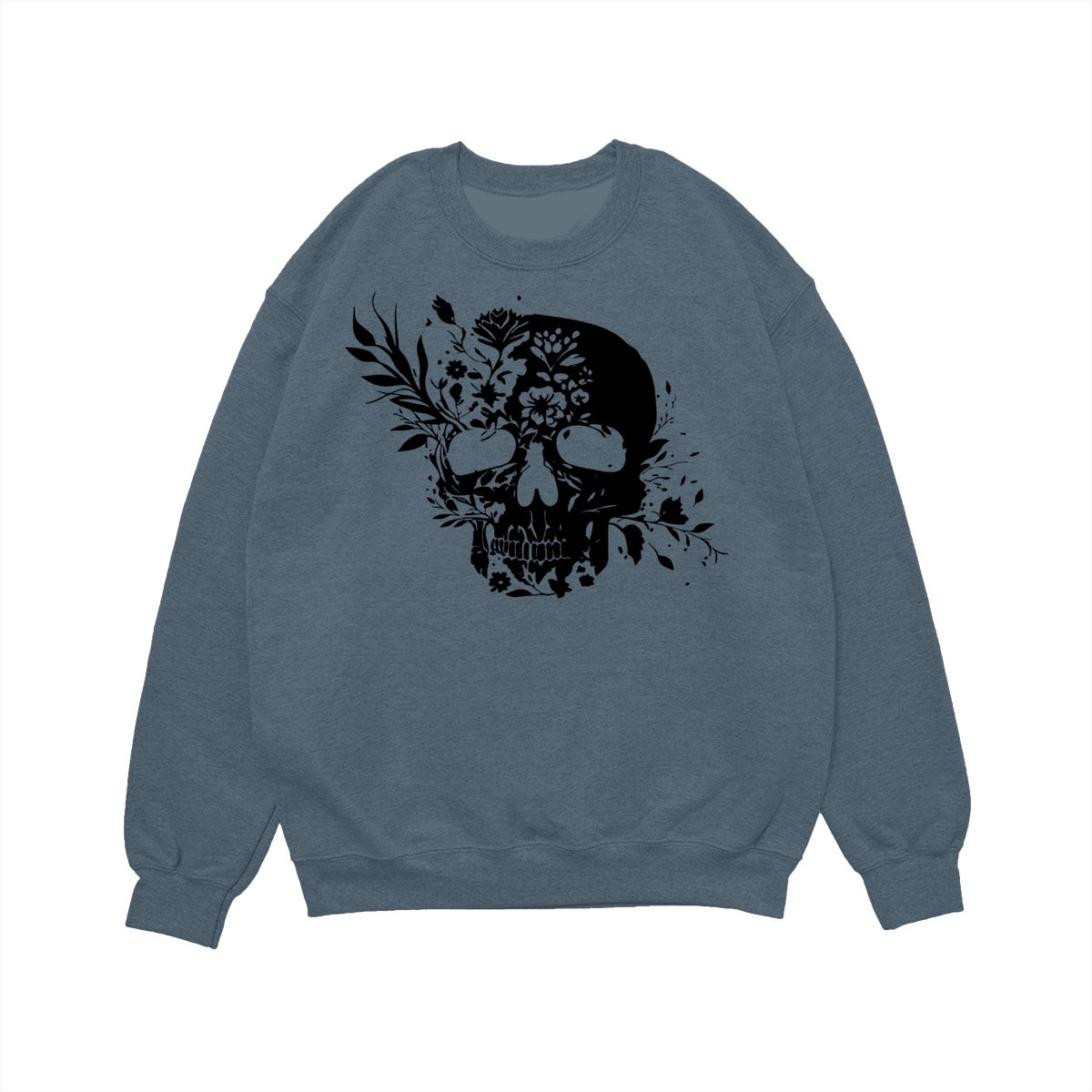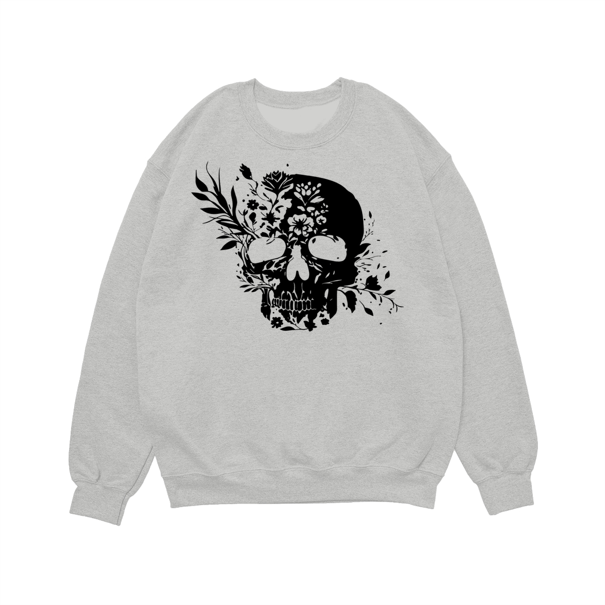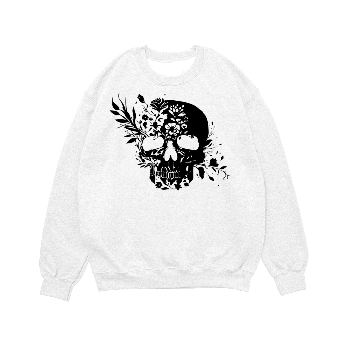 Floral Skeleton Shirt, Halloween Skull T-Shirt, Boho Spooky Tee, Large Skull with Flowers Graphic Image Vintage Fall TShirt