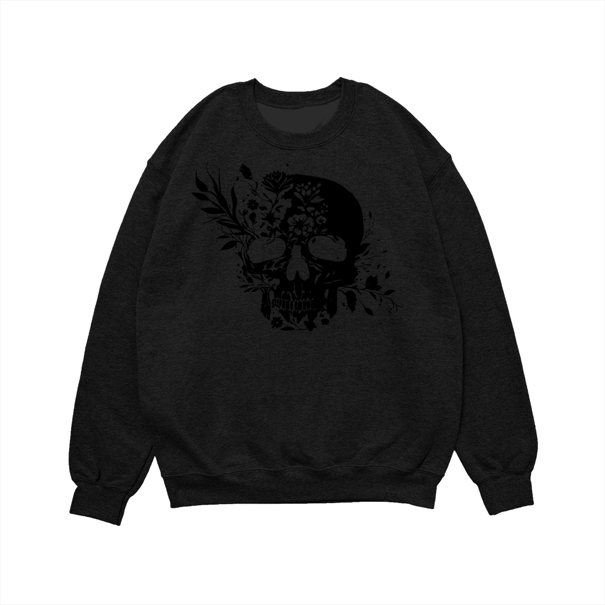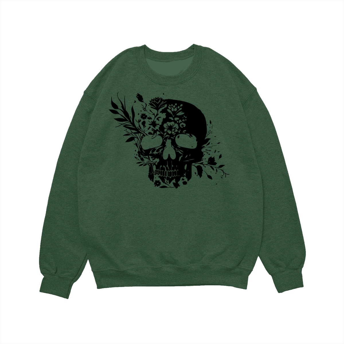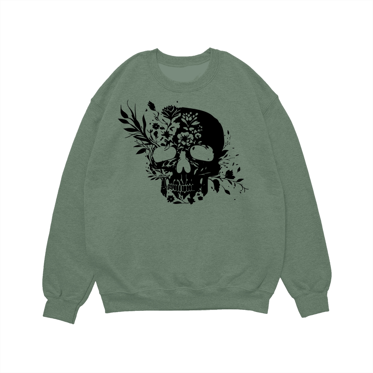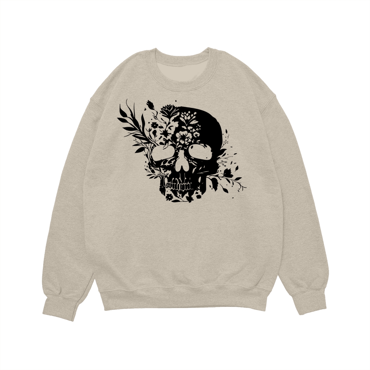 Floral Skeleton Shirt, Halloween Skull T-Shirt, Boho Spooky Tee, Large Skull with Flowers Graphic Image Vintage Fall TShirt