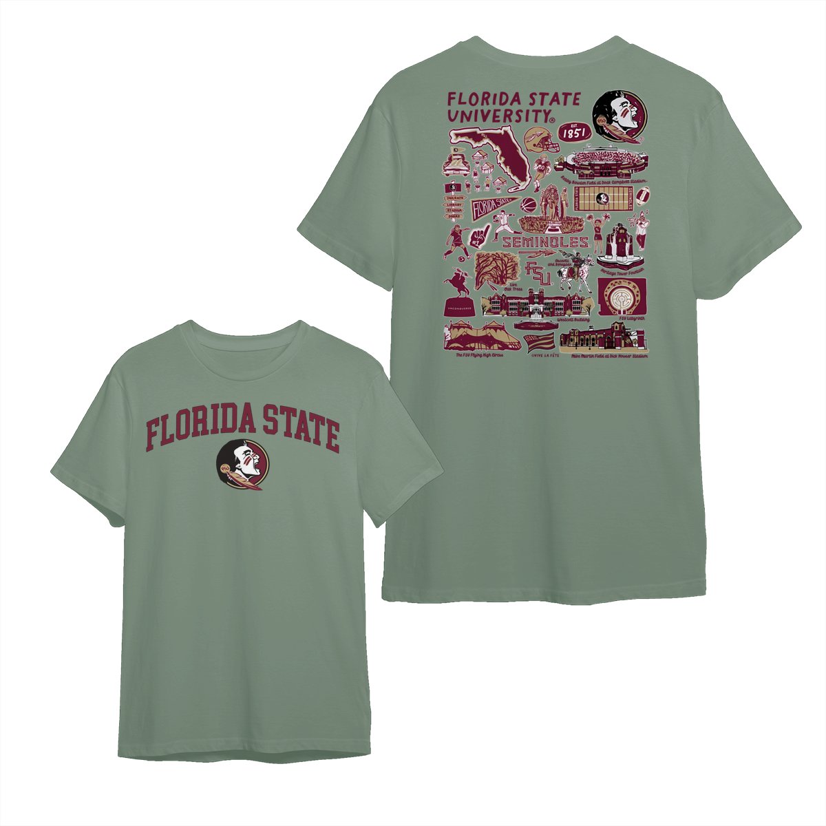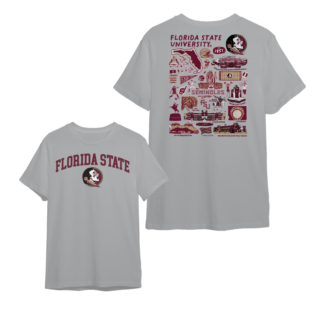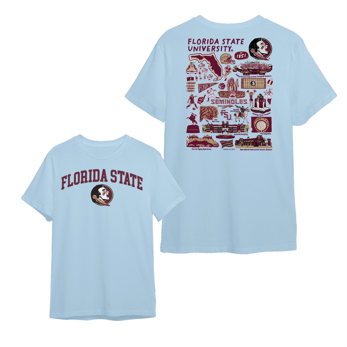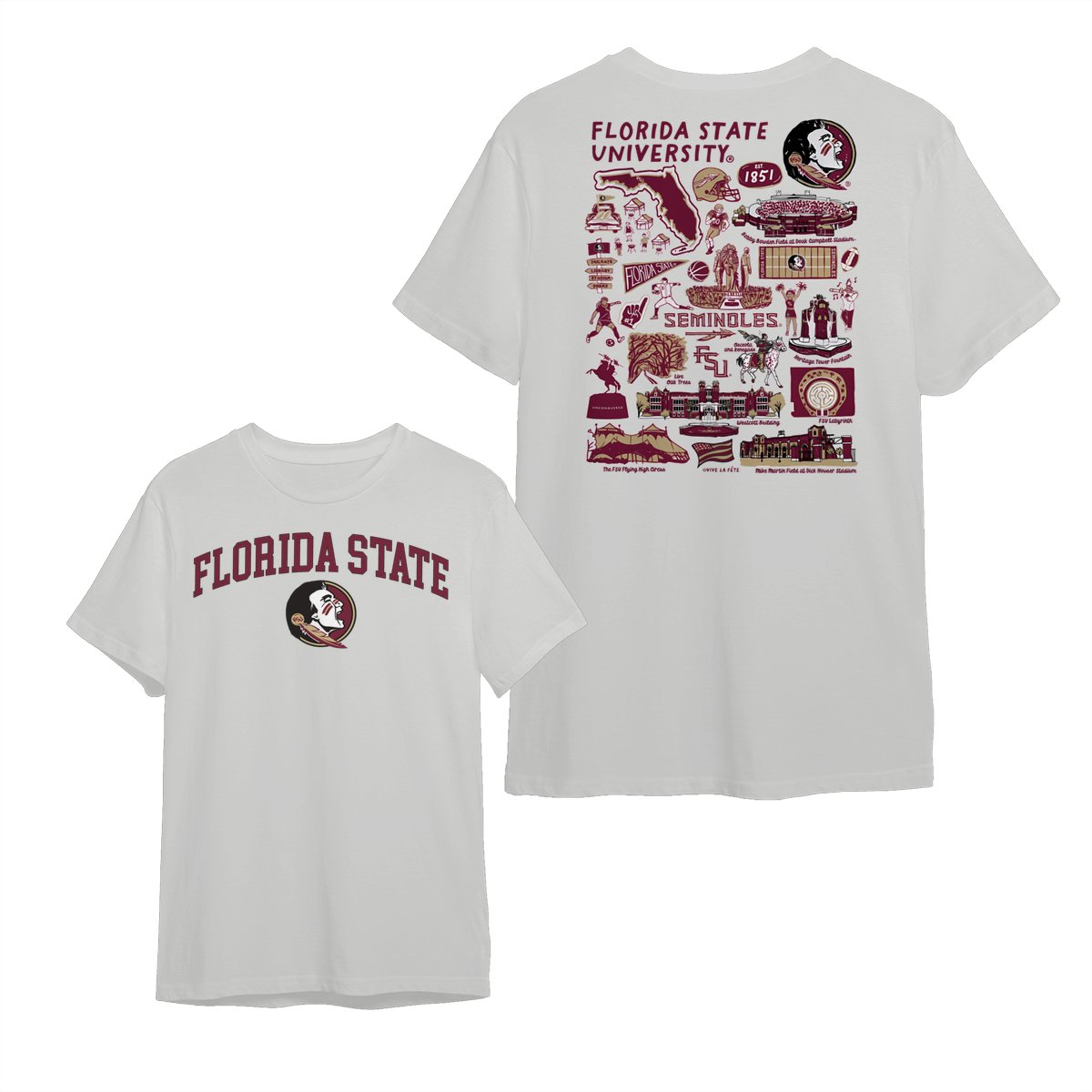 Florida State Team College NCAA Graphic T-Shirts – Hand-Drawn Logo & Campus Designs, Unisex Style, Perfect for Fans, Mens and Womens Gift, Comfortable Casual Wear for Sports Lovers