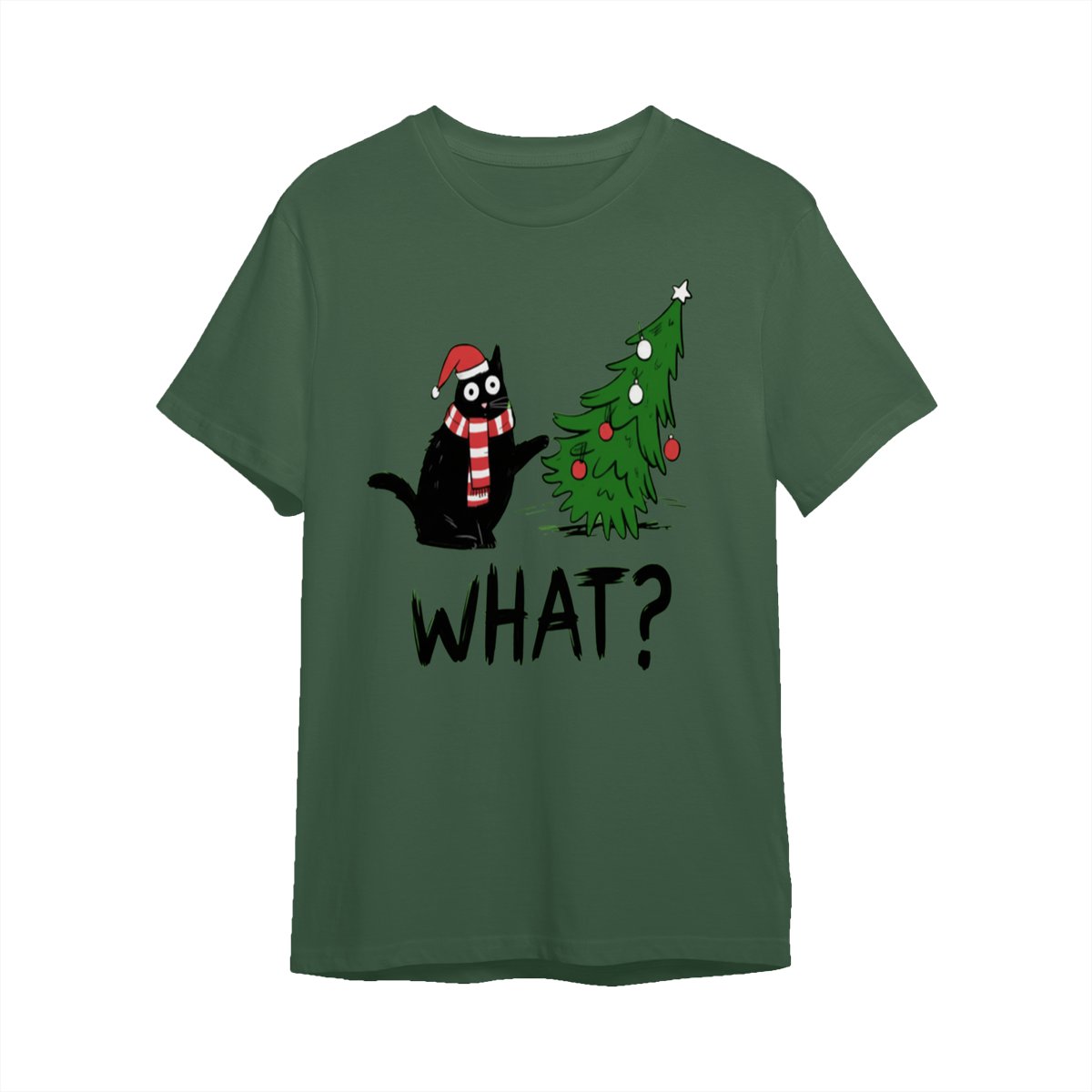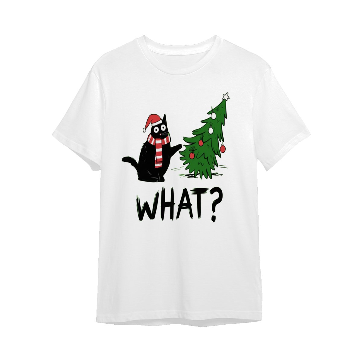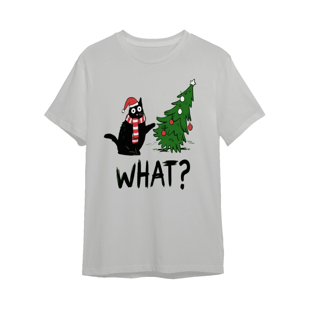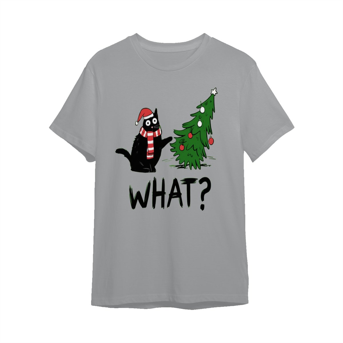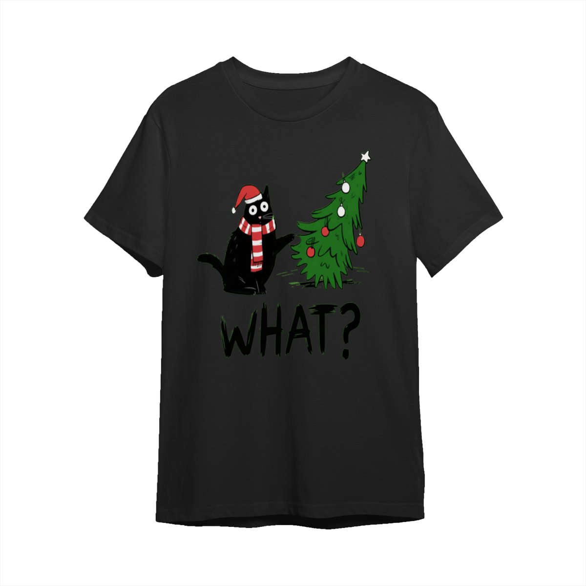 Funny Cat Christmas Shirt What? Christmas Tree Knocked Over Tee Cute Holiday Cat Lover T-Shirt Humorous Xmas Gift for Pet Owners