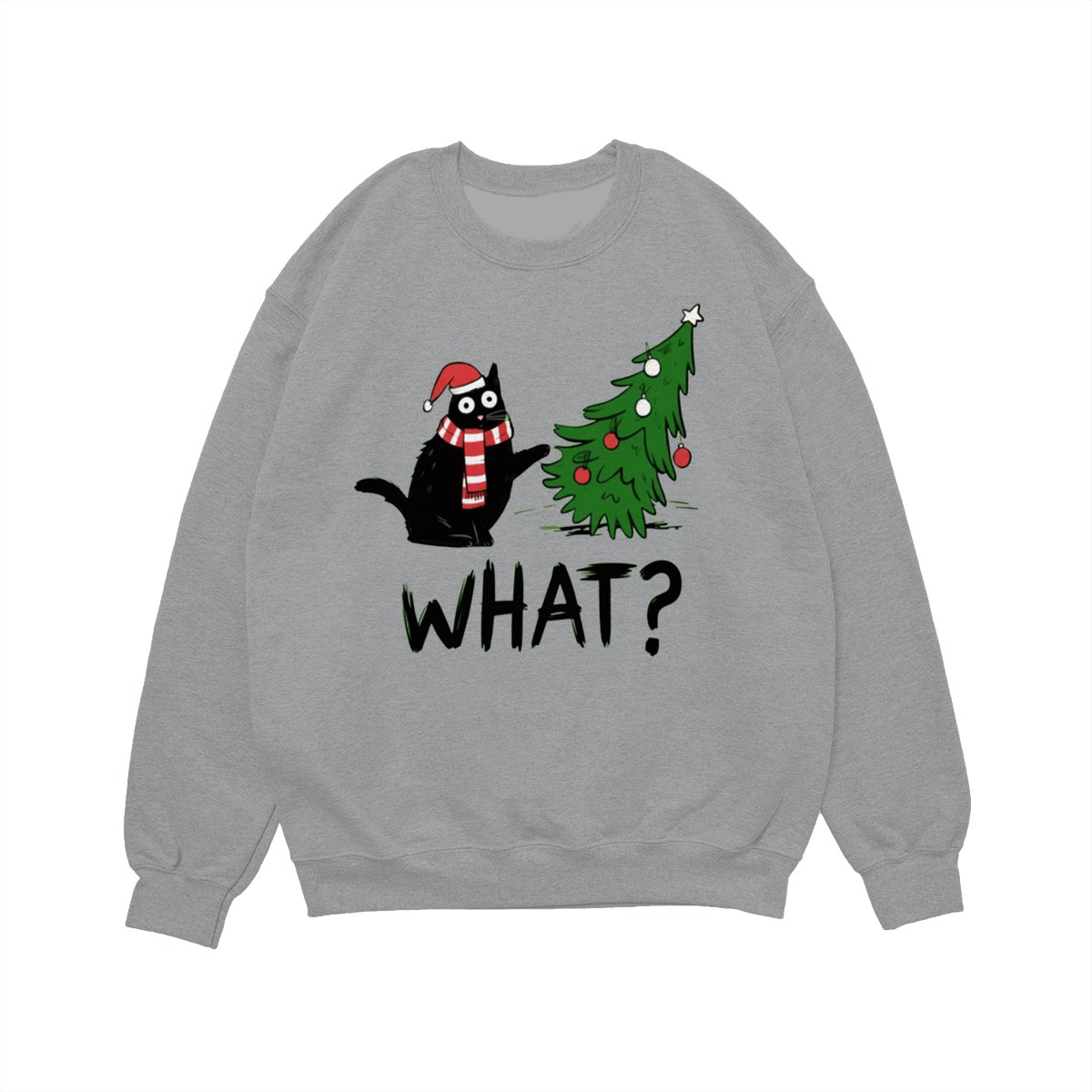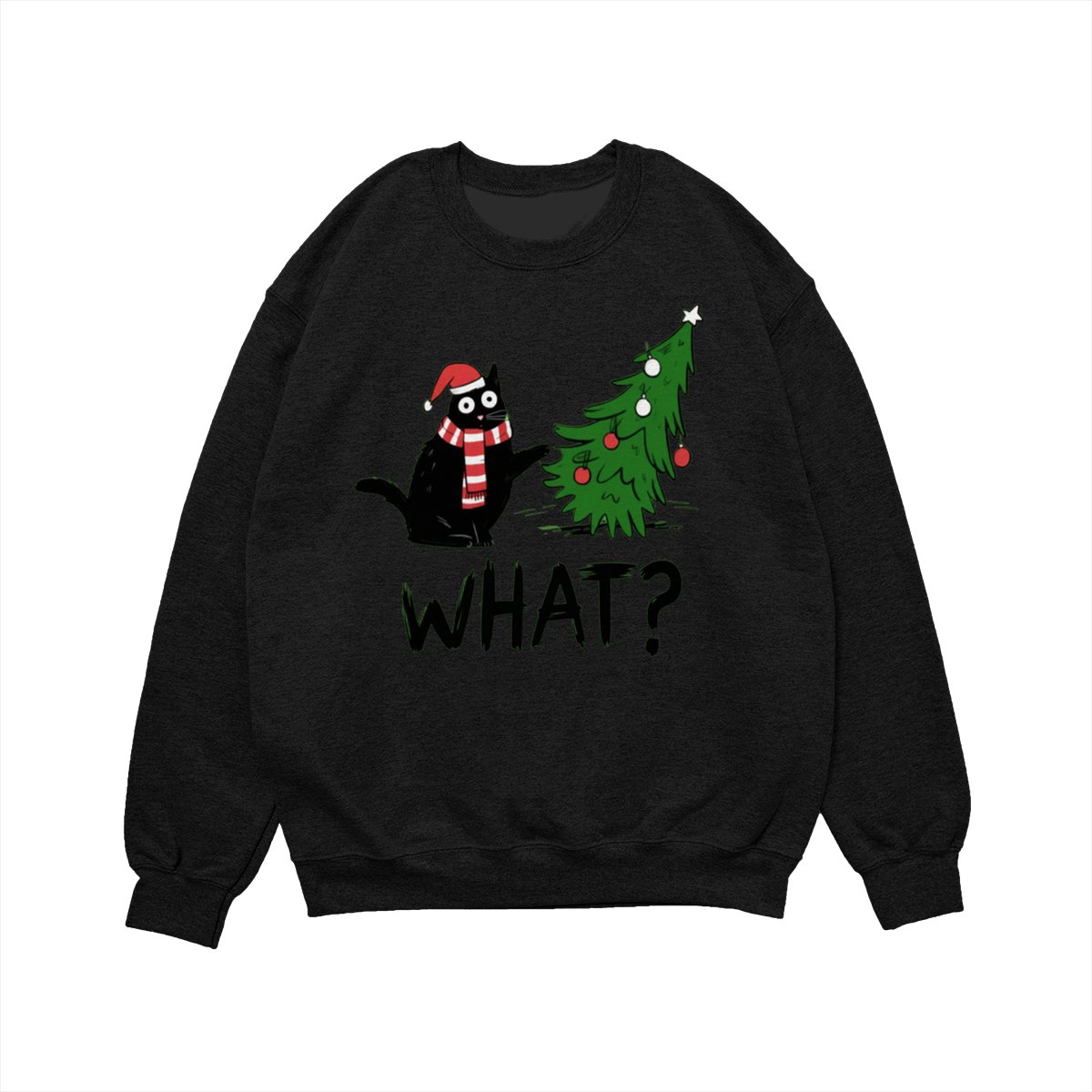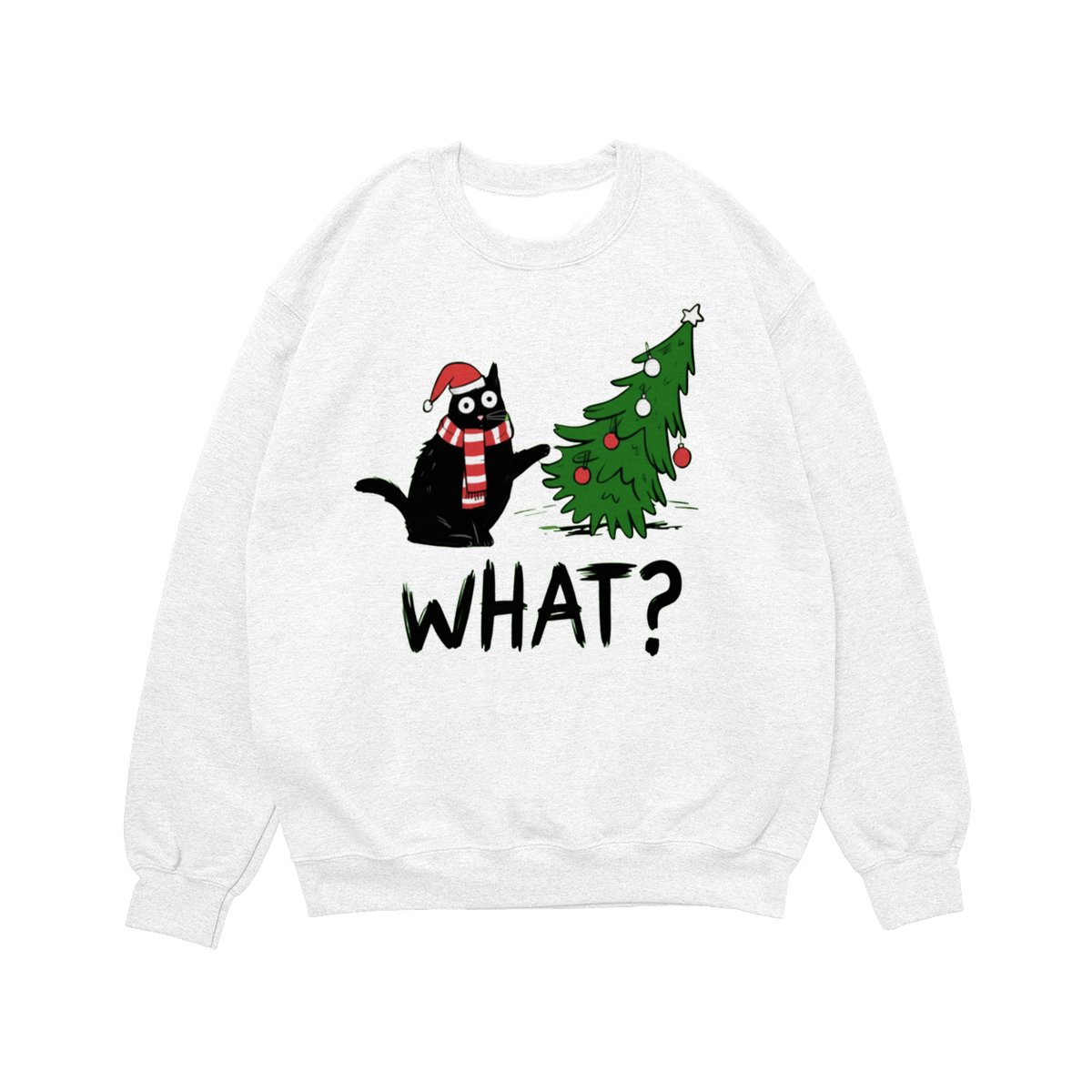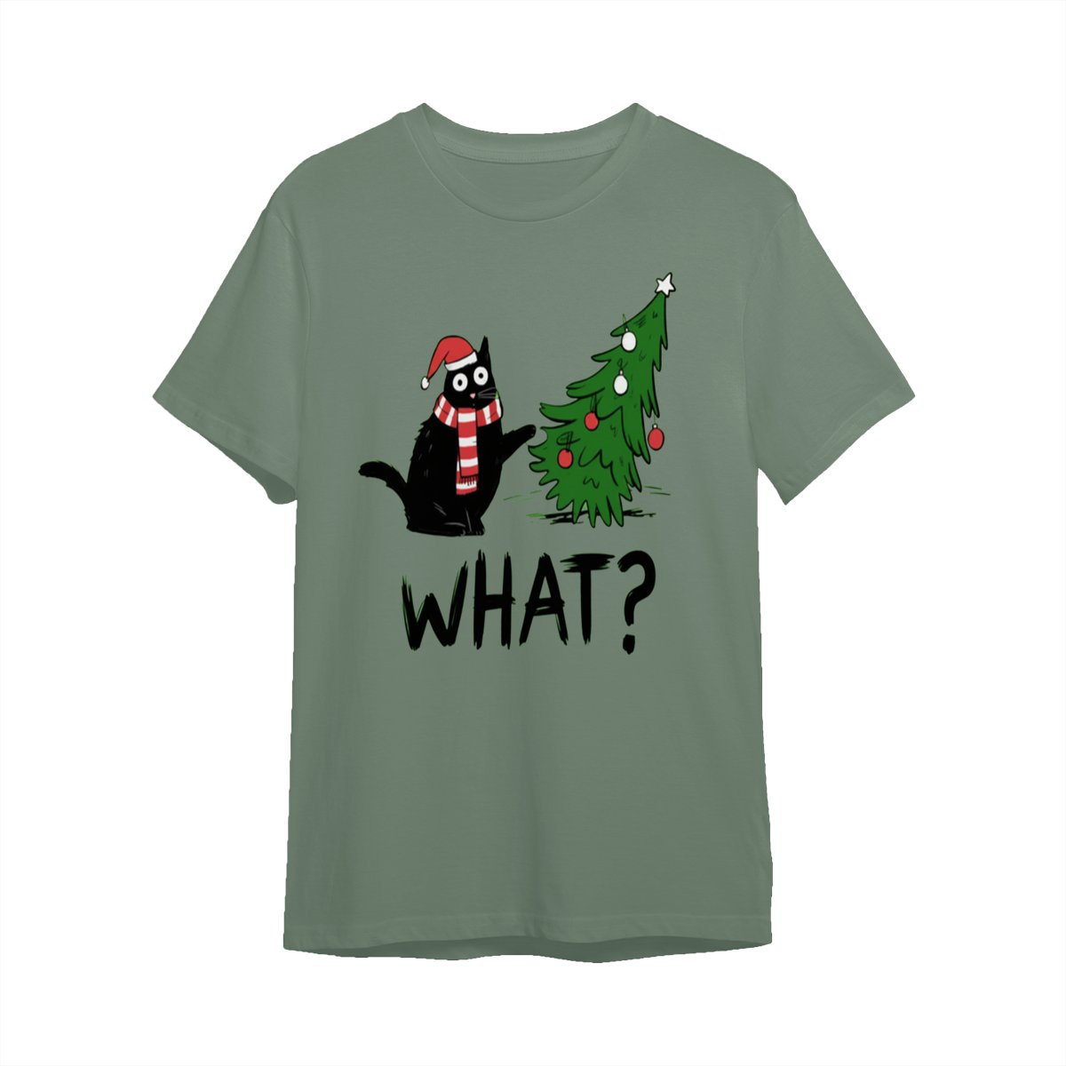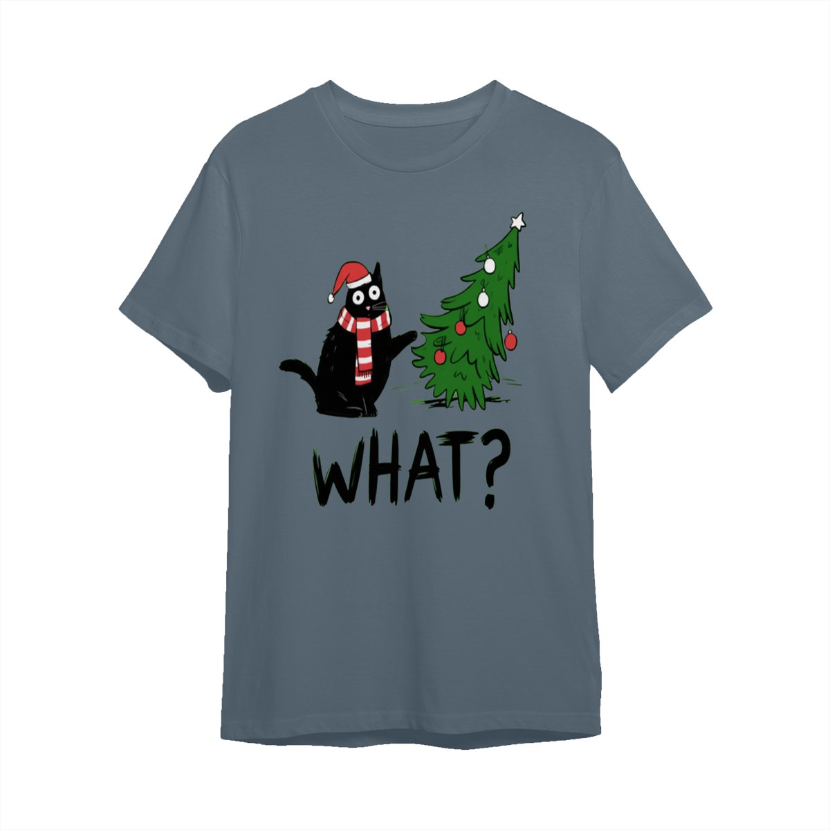 Funny Cat Christmas Shirt What? Christmas Tree Knocked Over Tee Cute Holiday Cat Lover T-Shirt Humorous Xmas Gift for Pet Owners