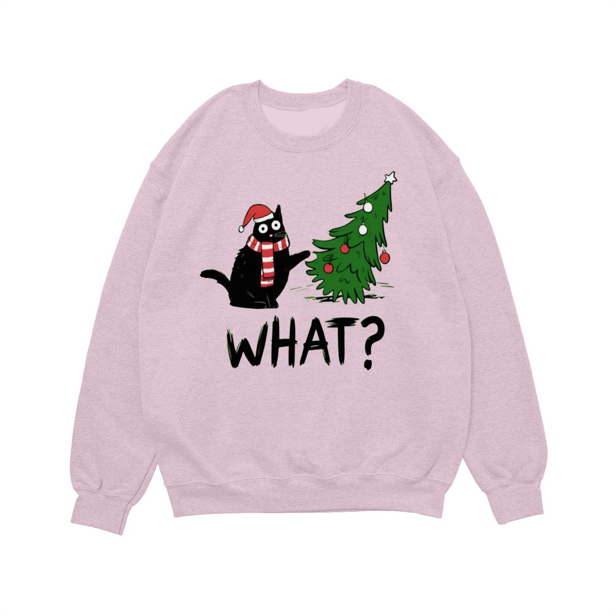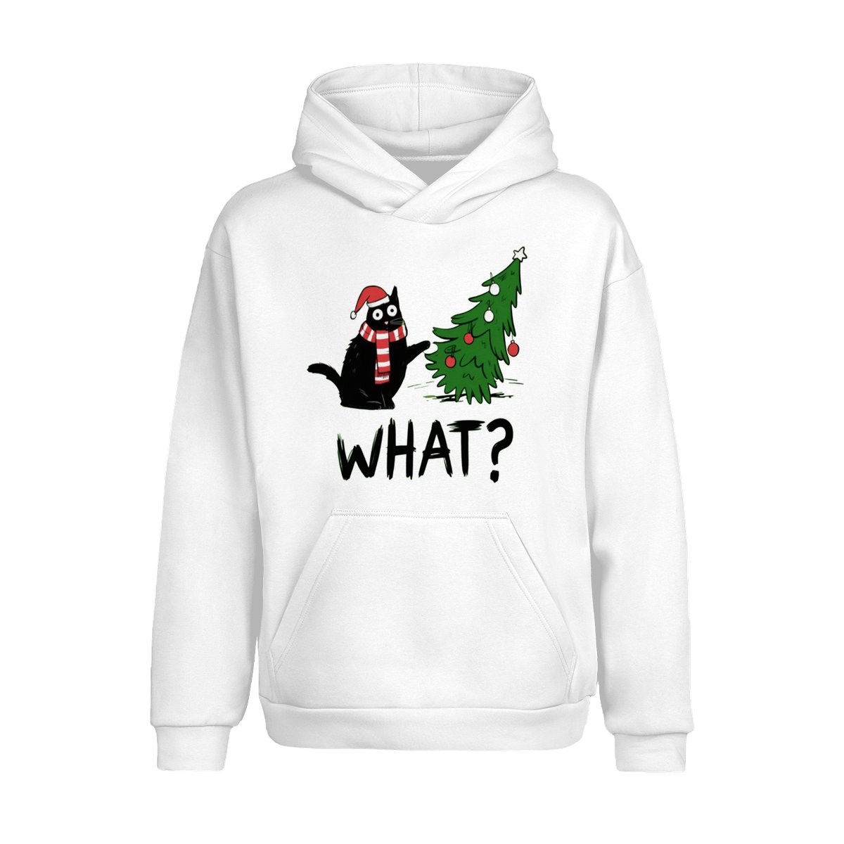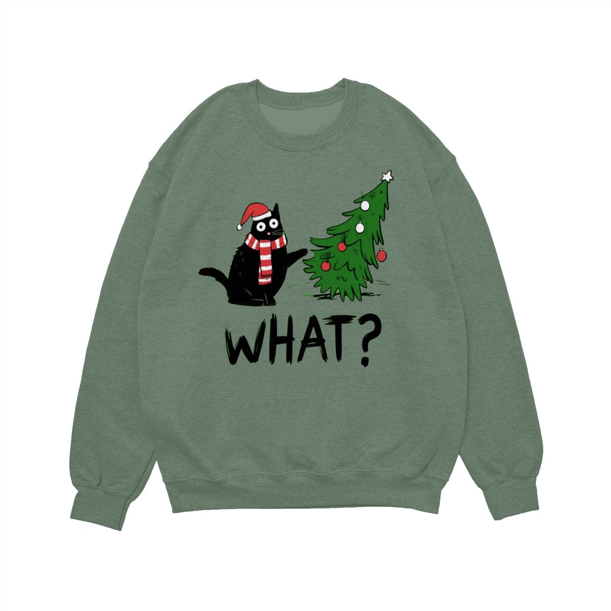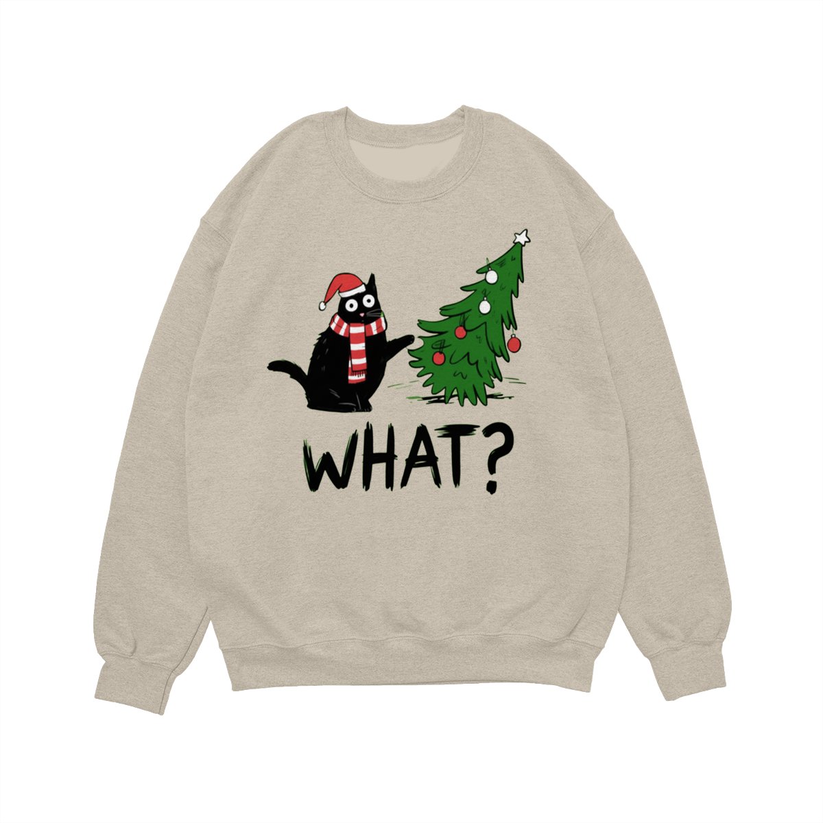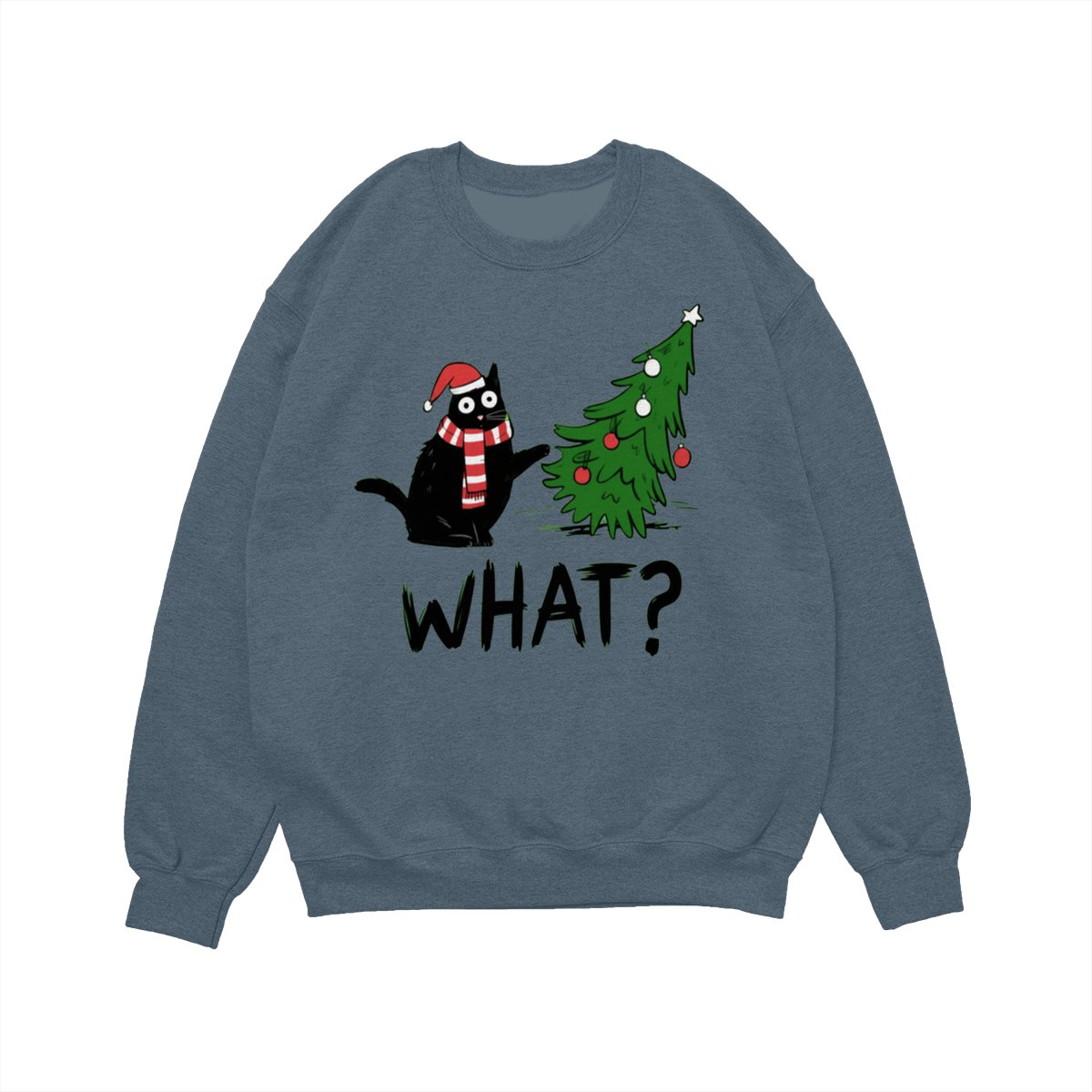 Funny Cat Christmas Shirt What? Christmas Tree Knocked Over Tee Cute Holiday Cat Lover T-Shirt Humorous Xmas Gift for Pet Owners