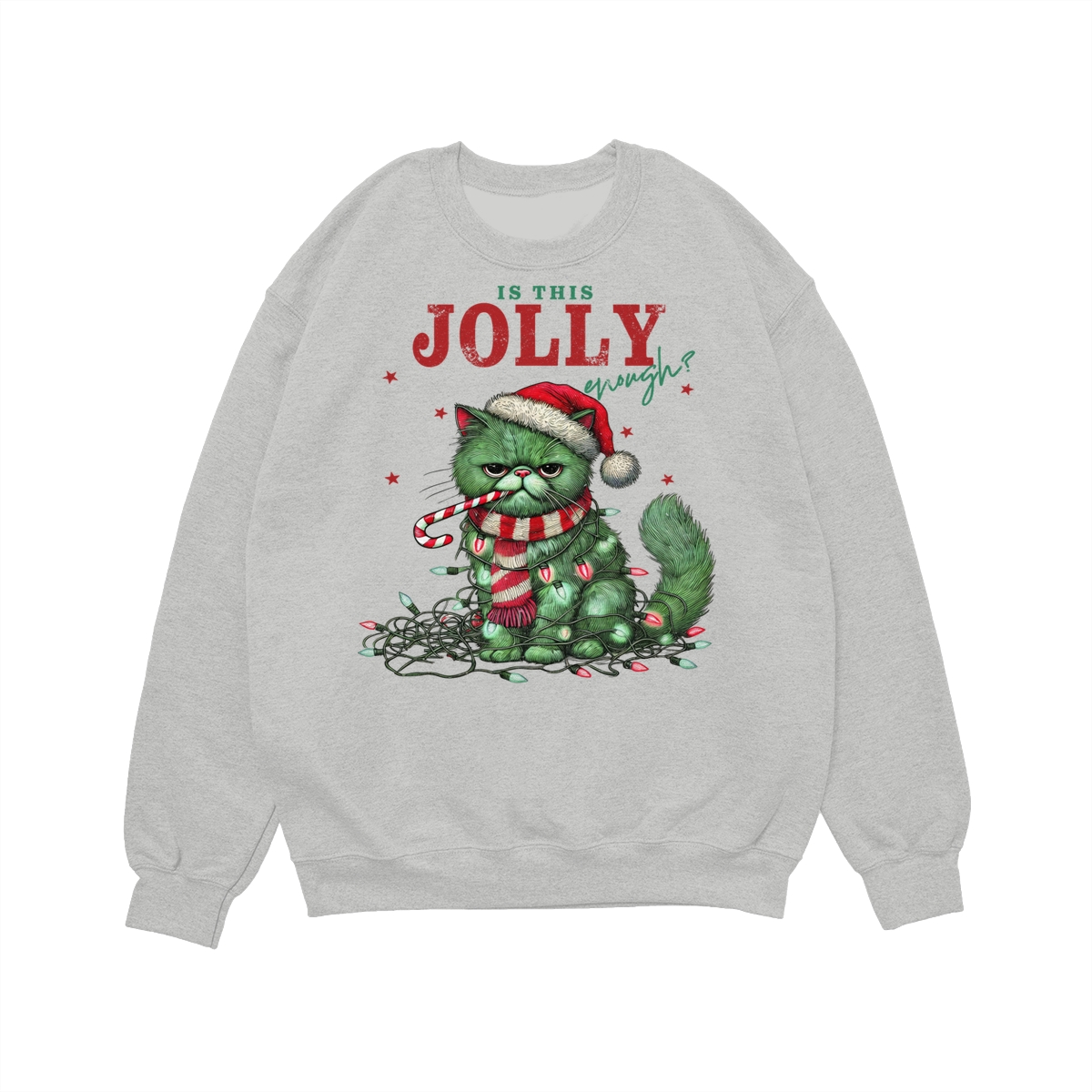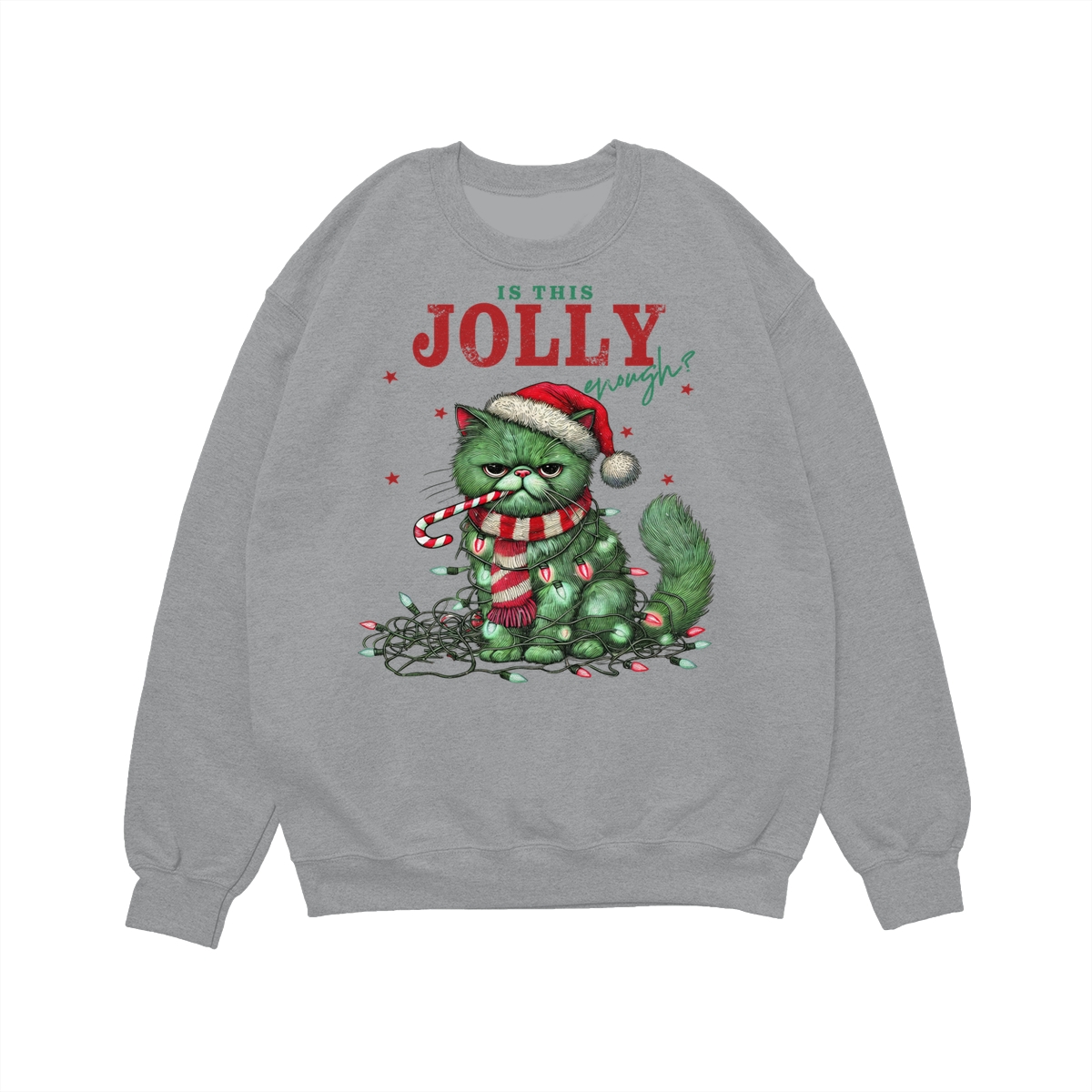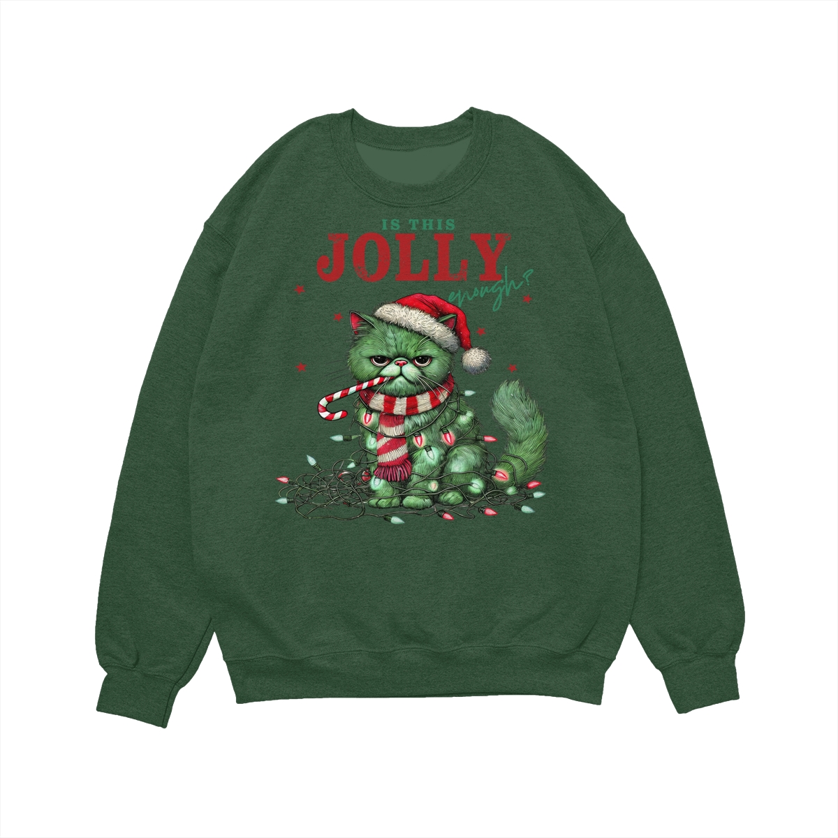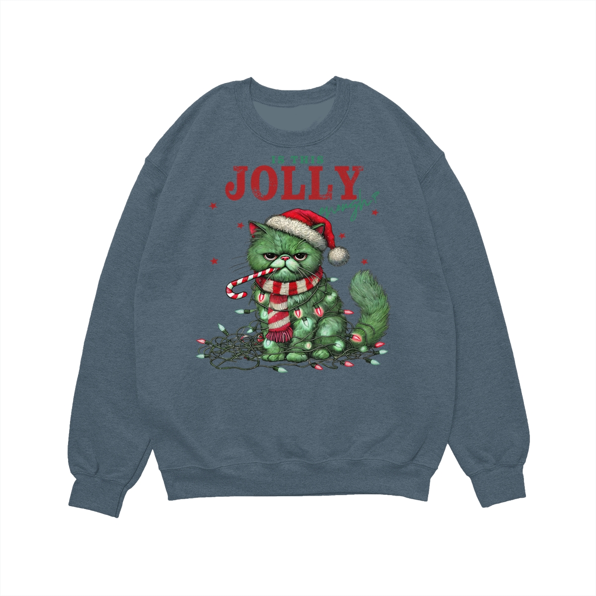 Funny Christmas Cat Sweatshirt – Grumpy Green Kitty with Candy Cane & Lights, Perfect for Holiday Parties, Unisex Casual Top, Trending Gag Gift