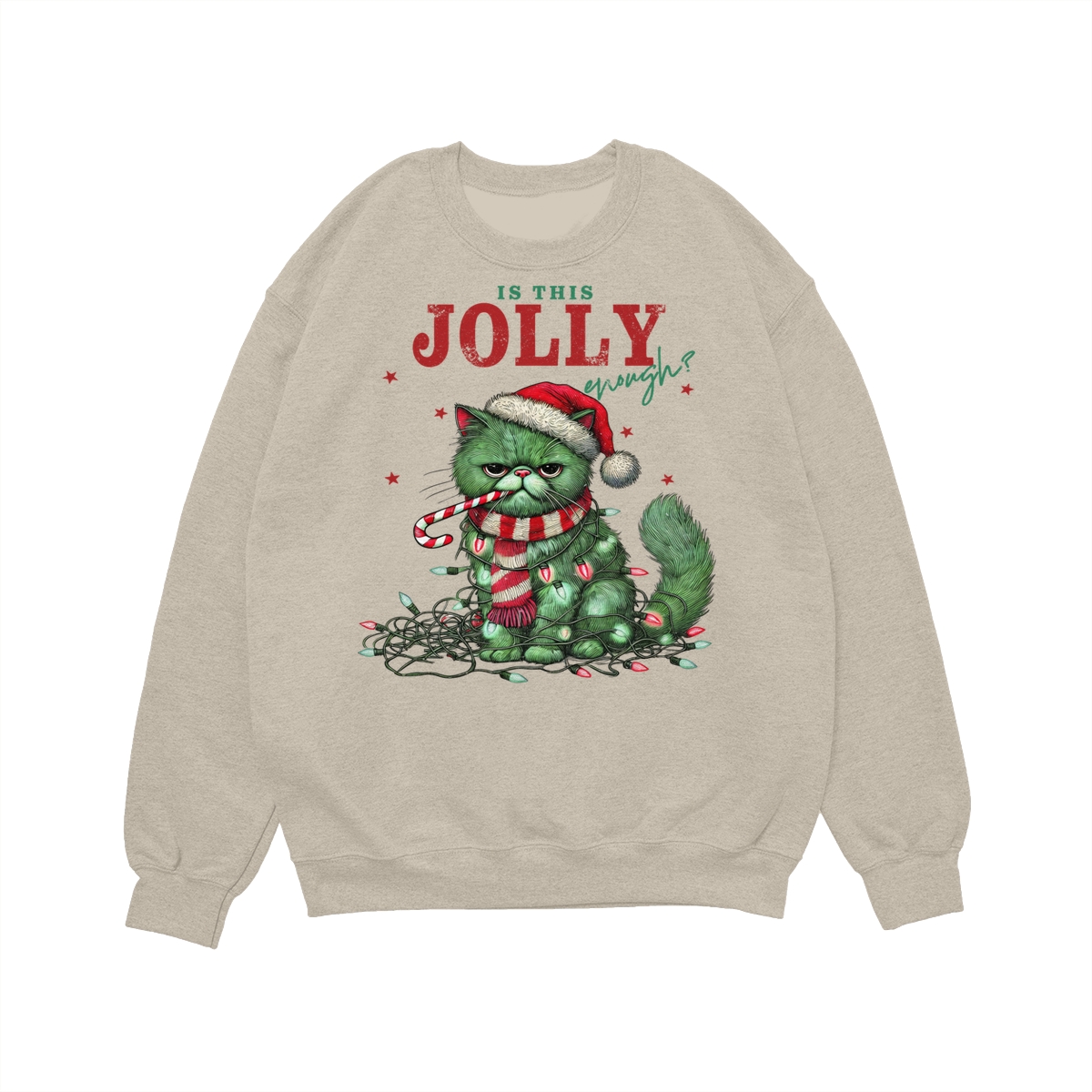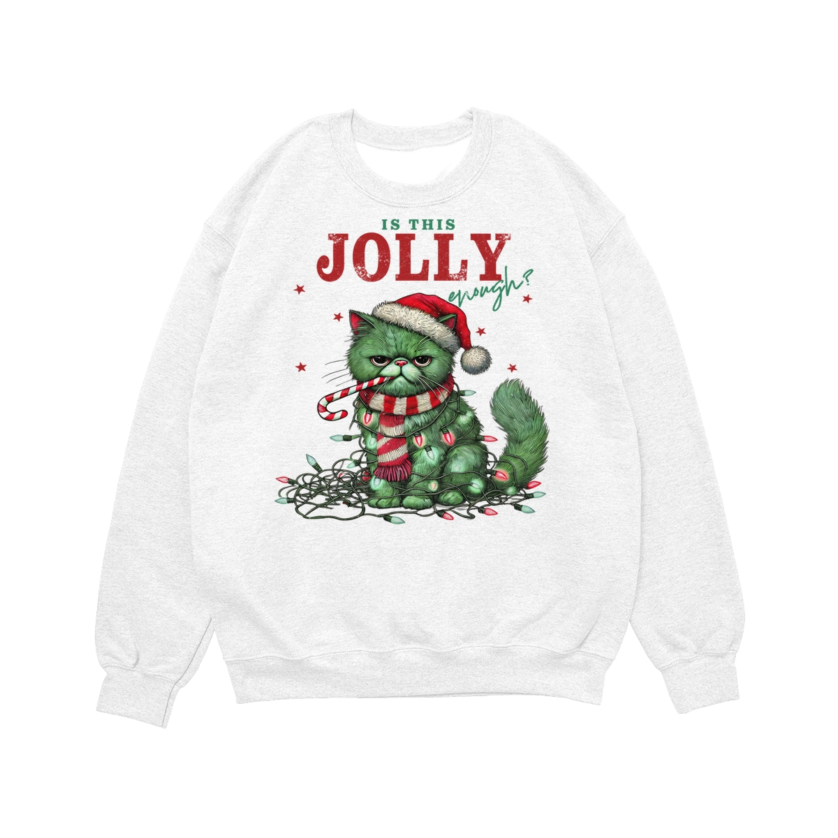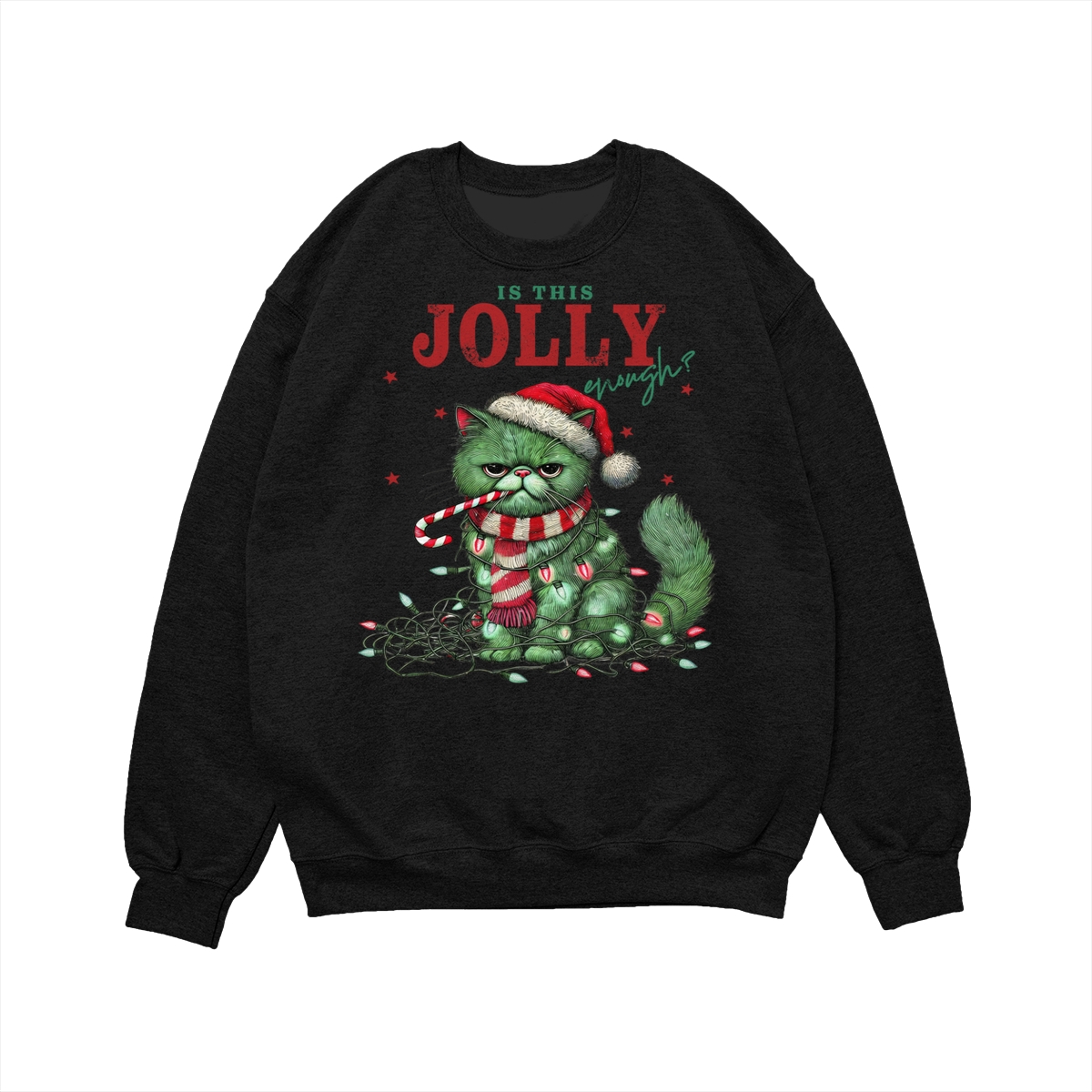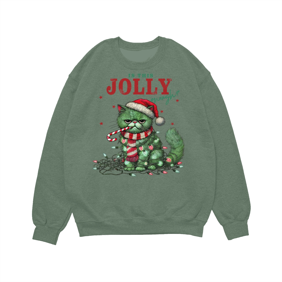 Funny Christmas Cat Sweatshirt – Grumpy Green Kitty with Candy Cane & Lights, Perfect for Holiday Parties, Unisex Casual Top, Trending Gag Gift