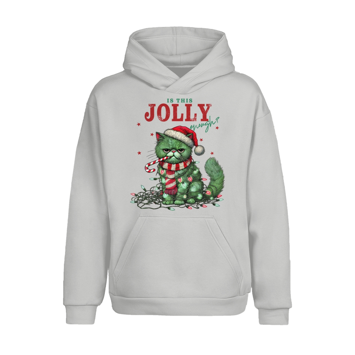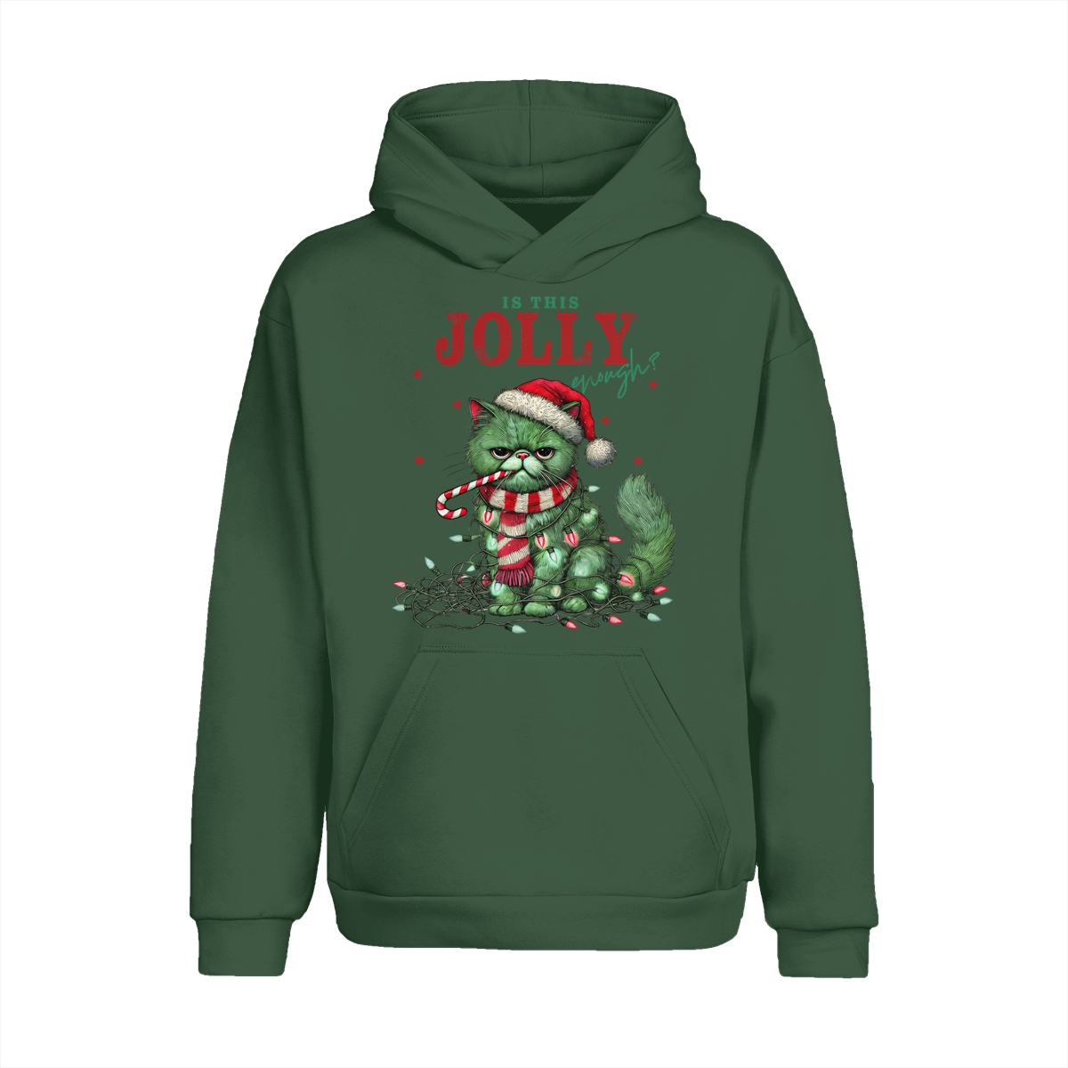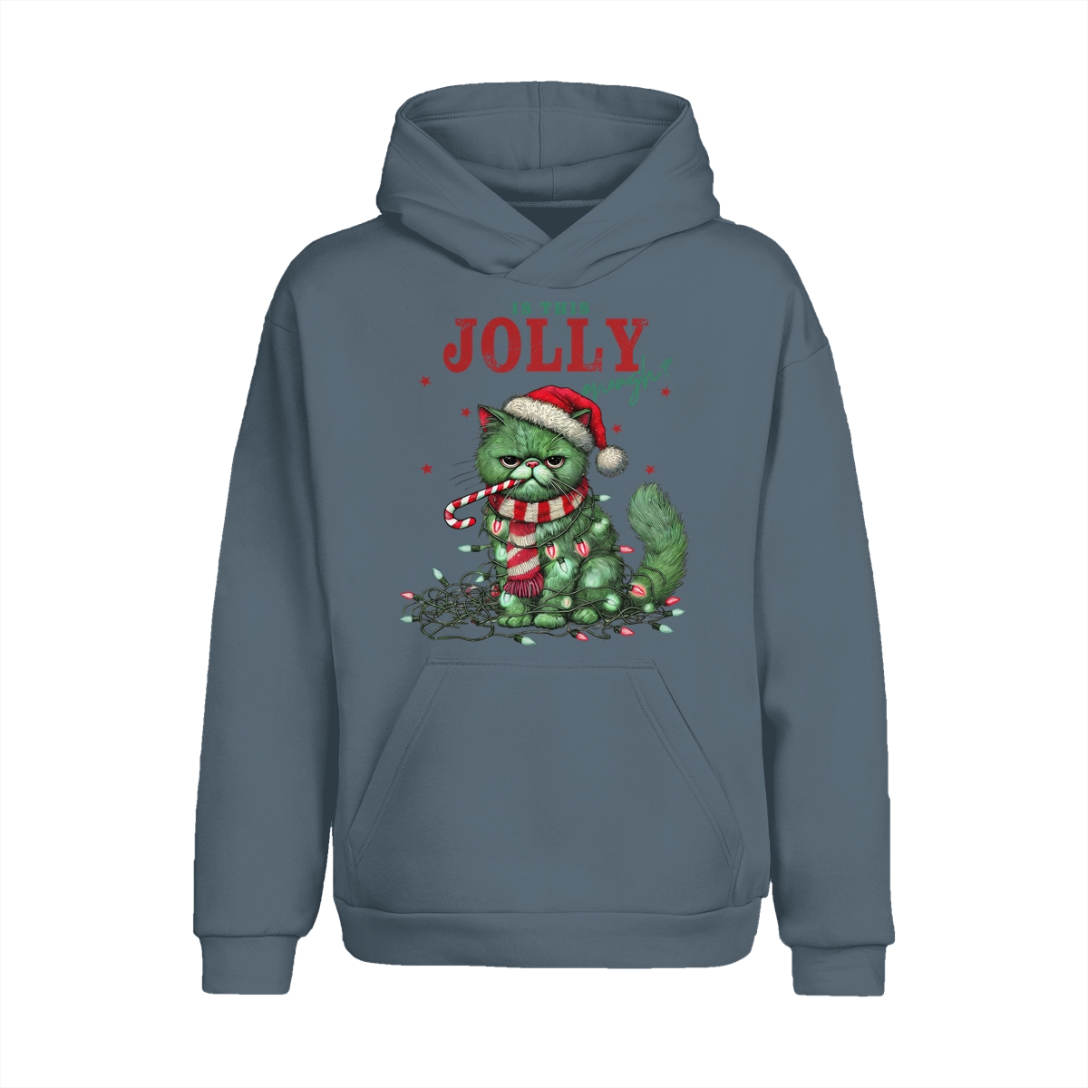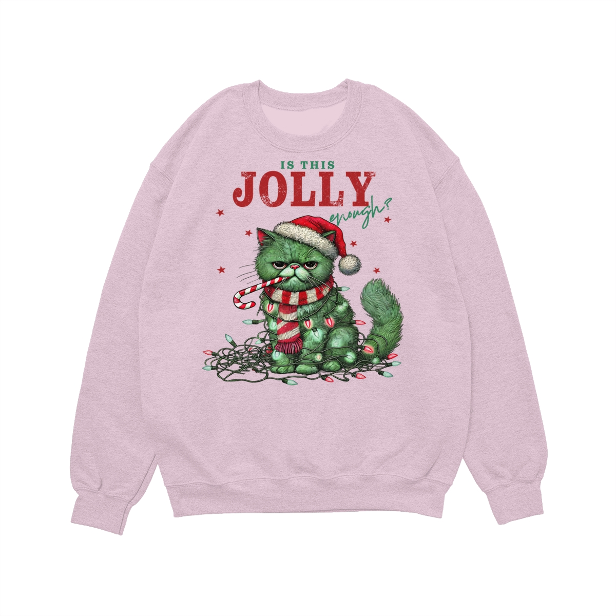 Funny Christmas Cat Sweatshirt – Grumpy Green Kitty with Candy Cane & Lights, Perfect for Holiday Parties, Unisex Casual Top, Trending Gag Gift