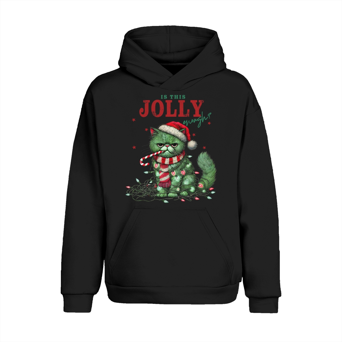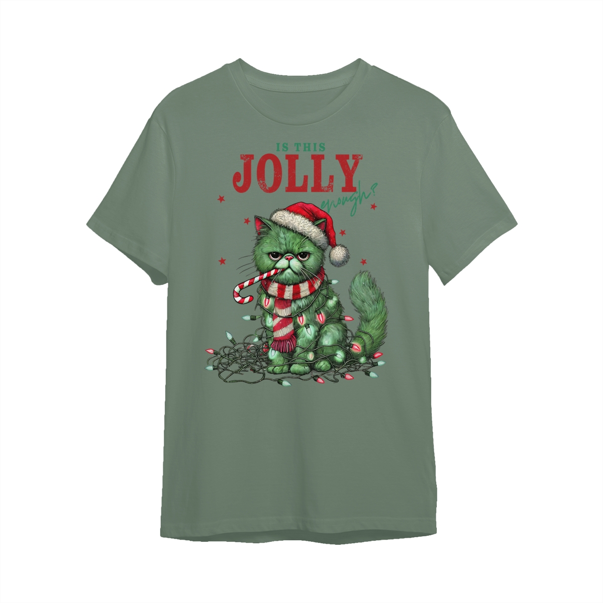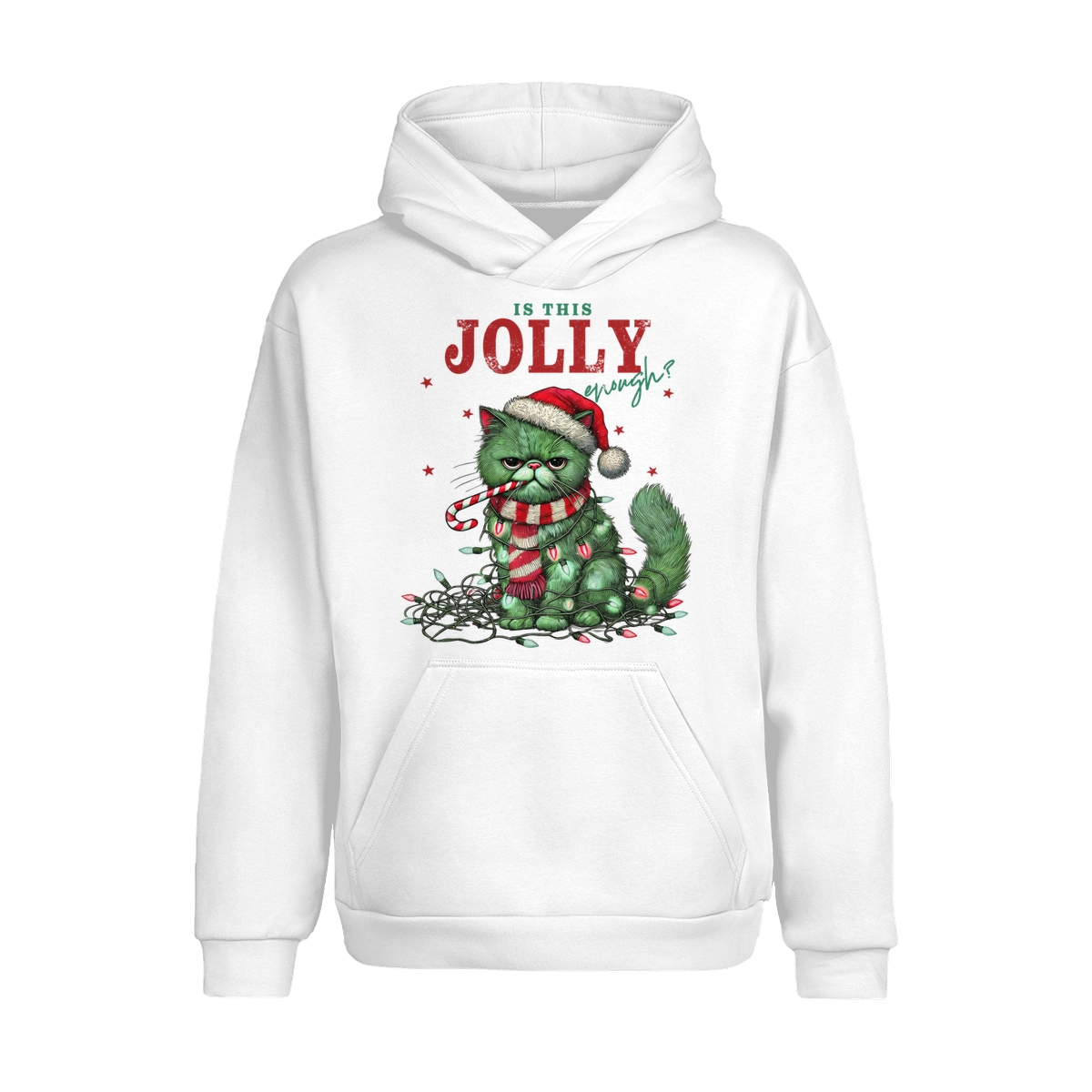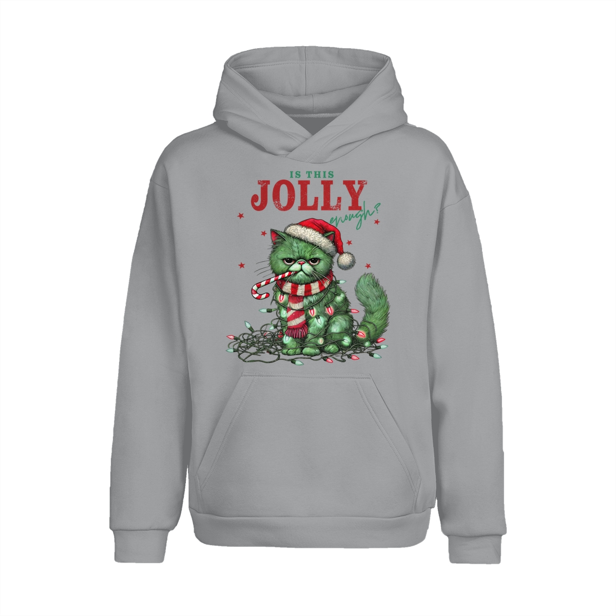 Funny Christmas Cat Sweatshirt – Grumpy Green Kitty with Candy Cane & Lights, Perfect for Holiday Parties, Unisex Casual Top, Trending Gag Gift