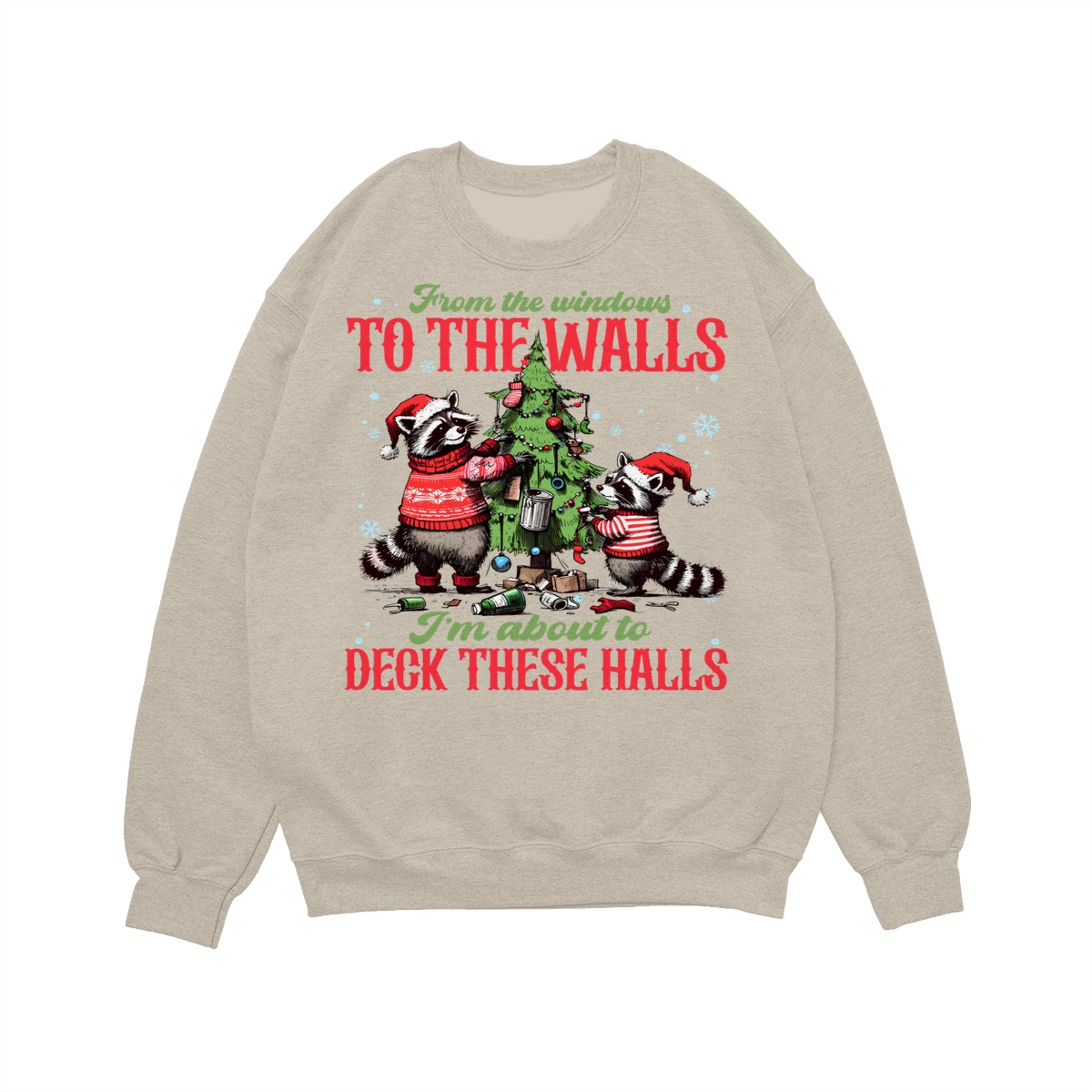 Funny Christmas Raccoon Im About To Deck These Halls Sweatshirt – Hoodie, From the Windows To the Walls Christmas Sweater, Cute Holiday Shirt Gift
