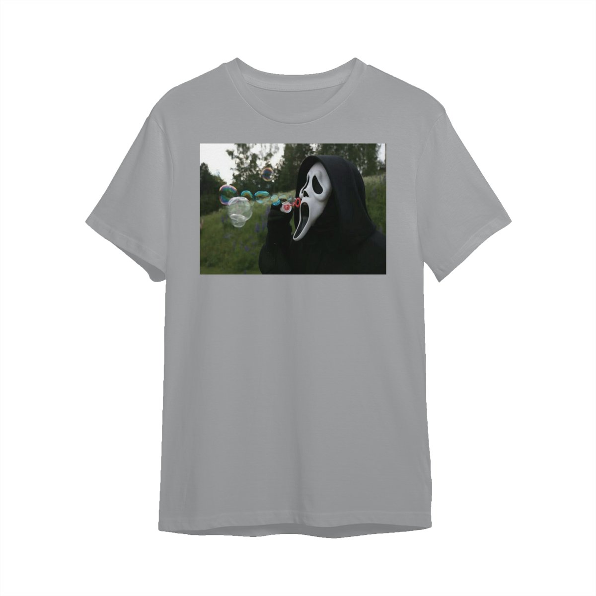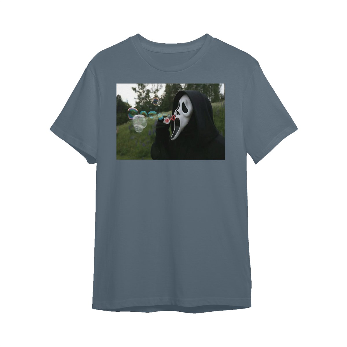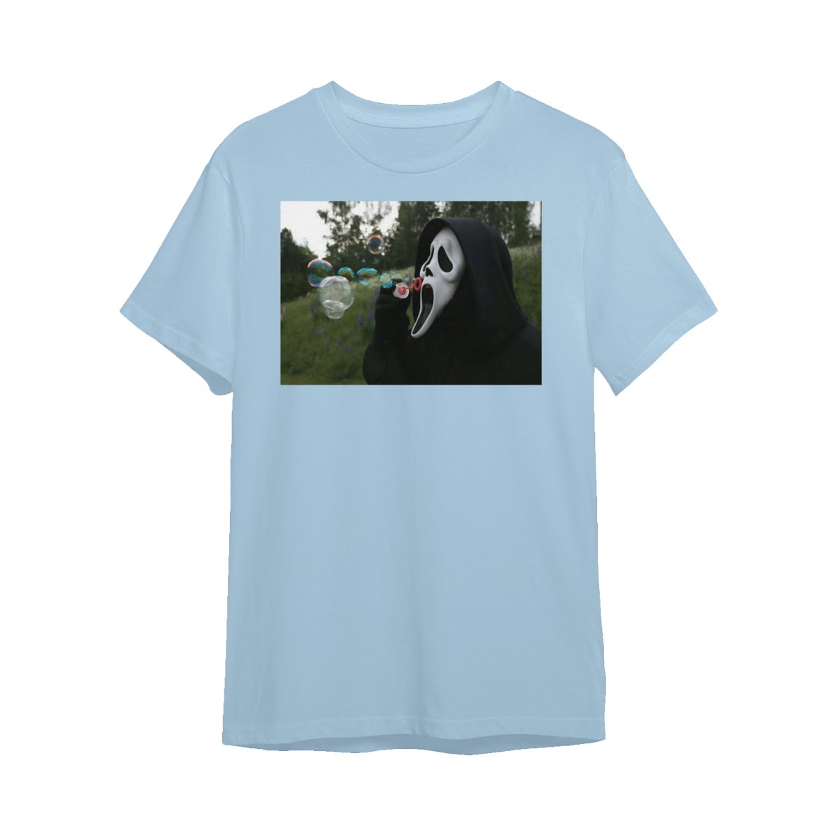 Funny Ghost Face Bubble T-Shirt – Cute & Spooky Scream Mask Blowing Bubbles Graphic Tee, Gift For Women, For Mom, Womenswears