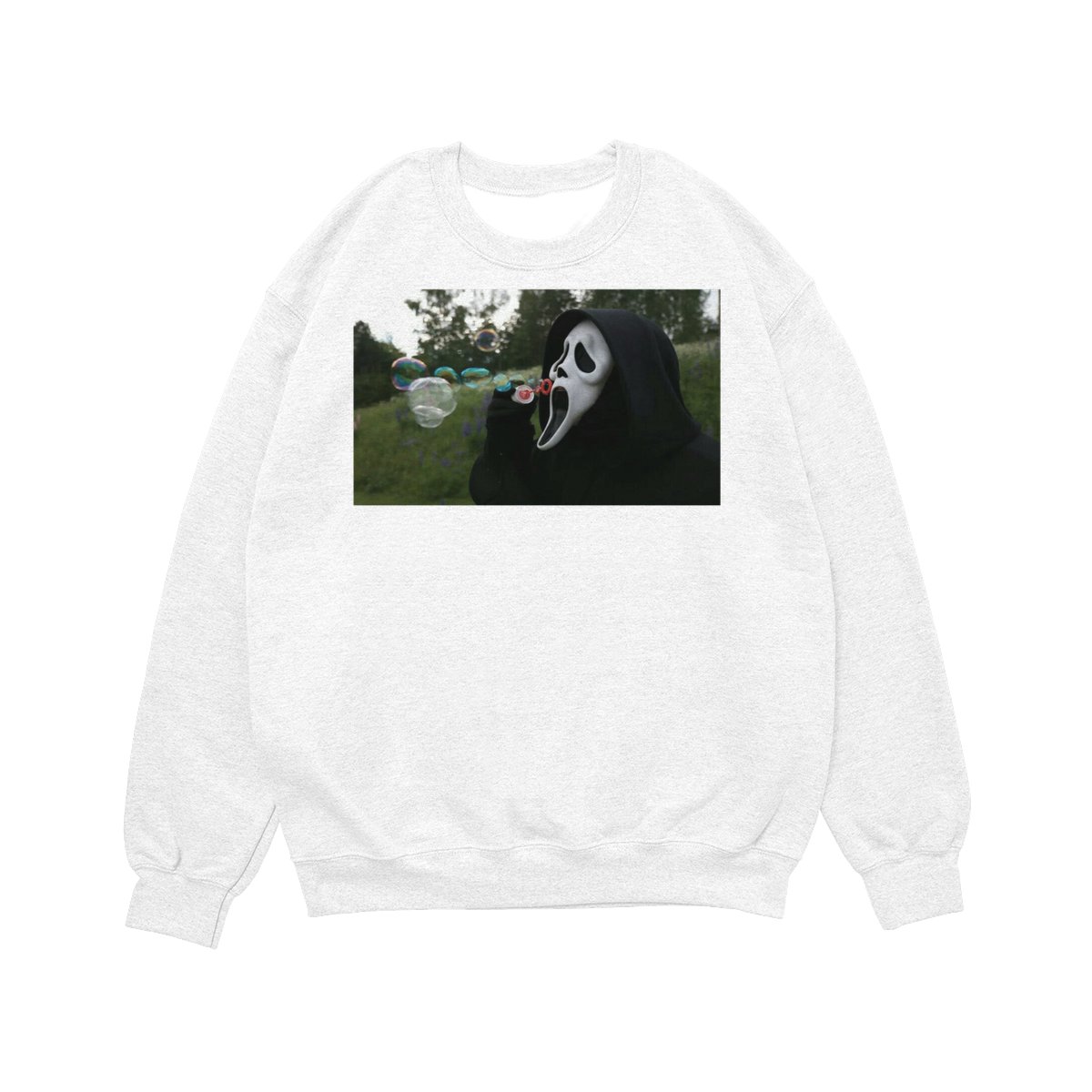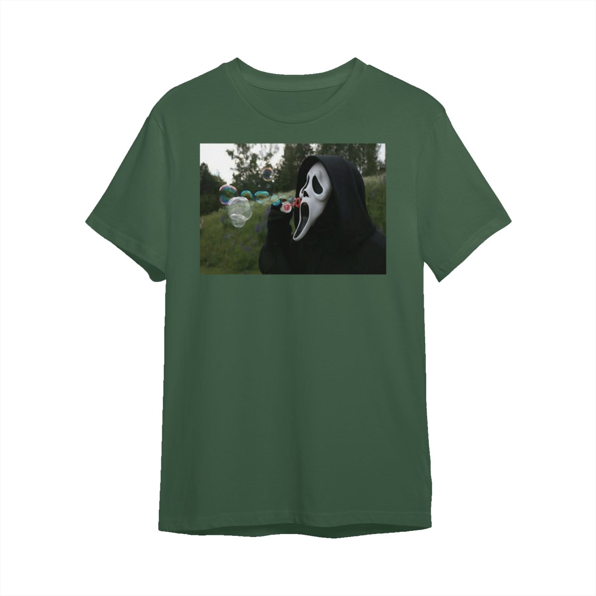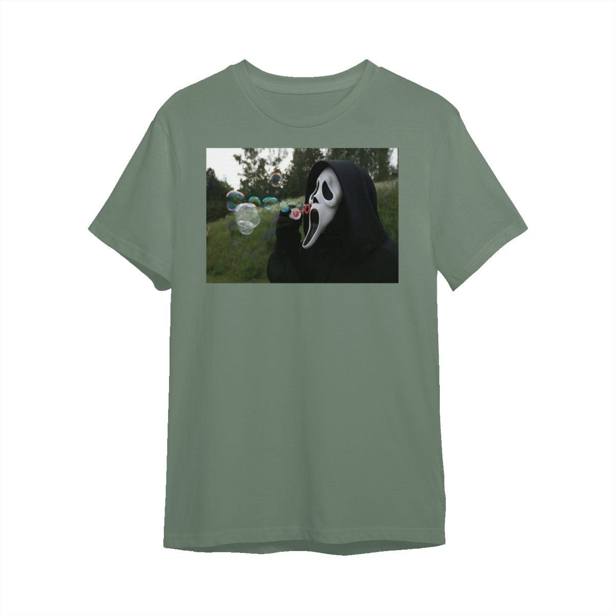Funny Ghost Face Bubble T-Shirt – Cute & Spooky Scream Mask Blowing Bubbles Graphic Tee, Gift For Women, For Mom, Womenswears