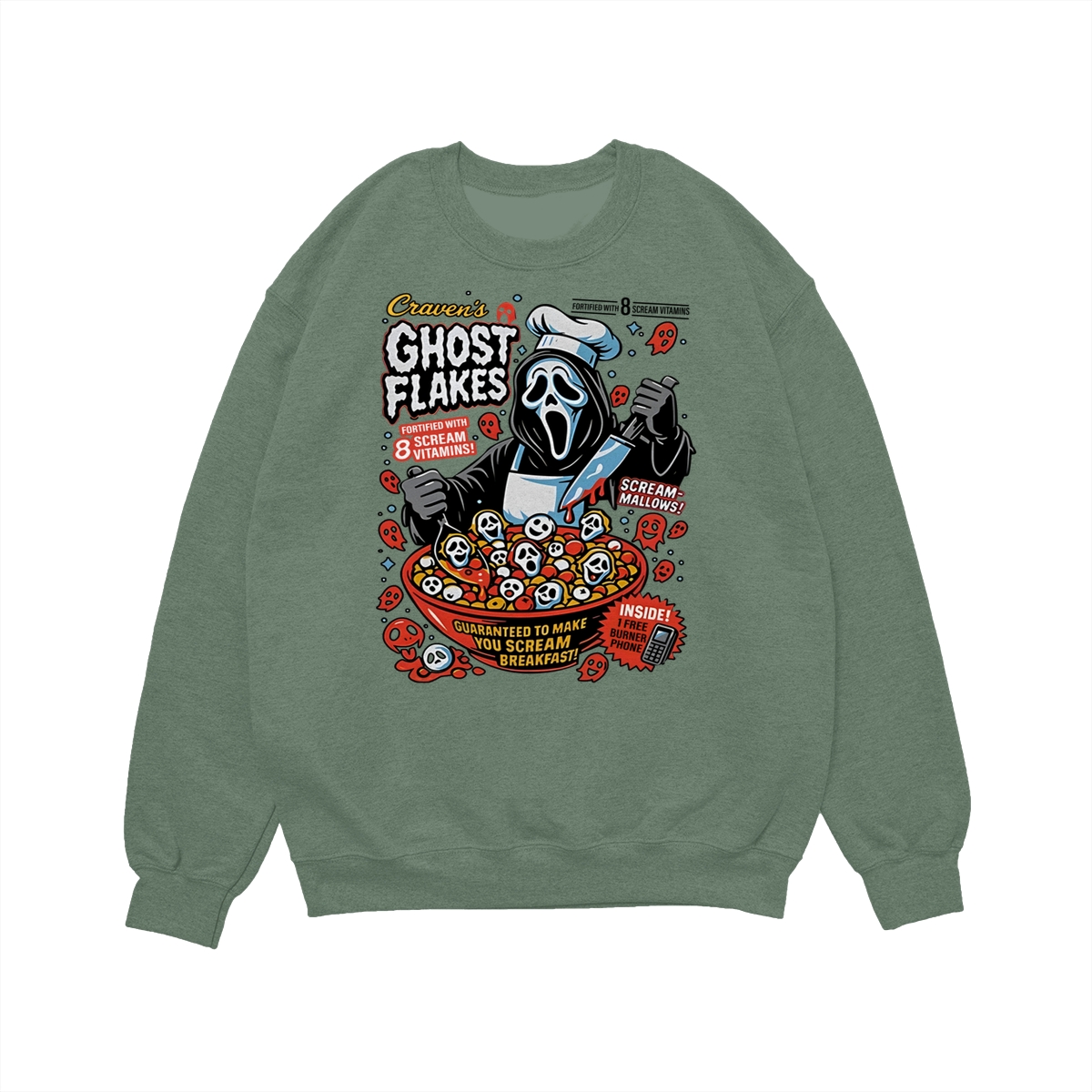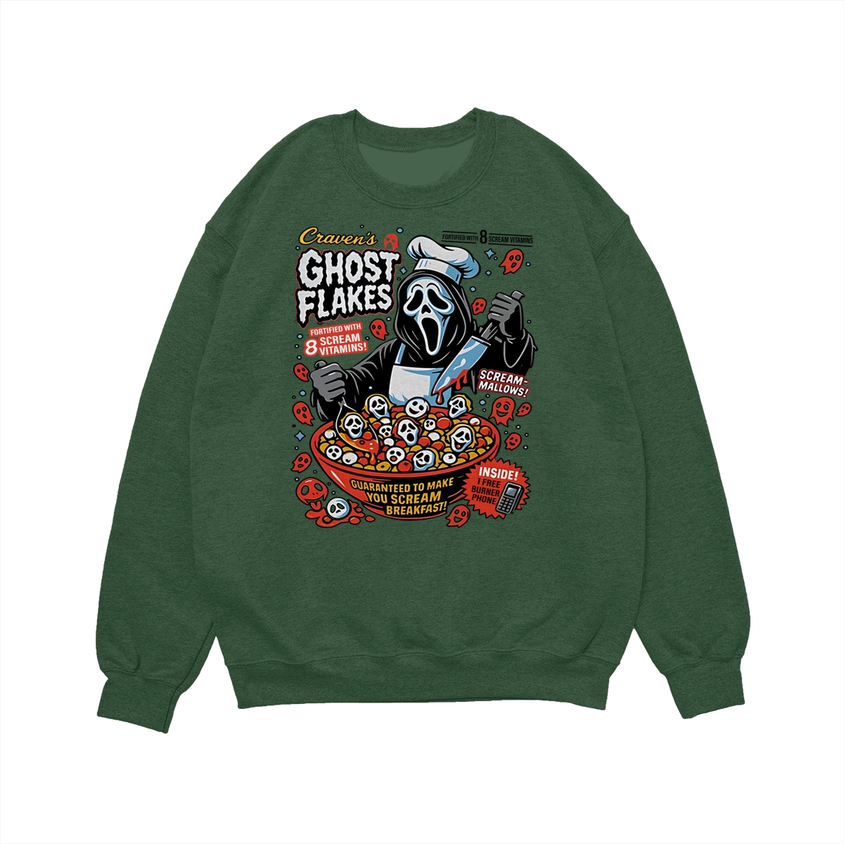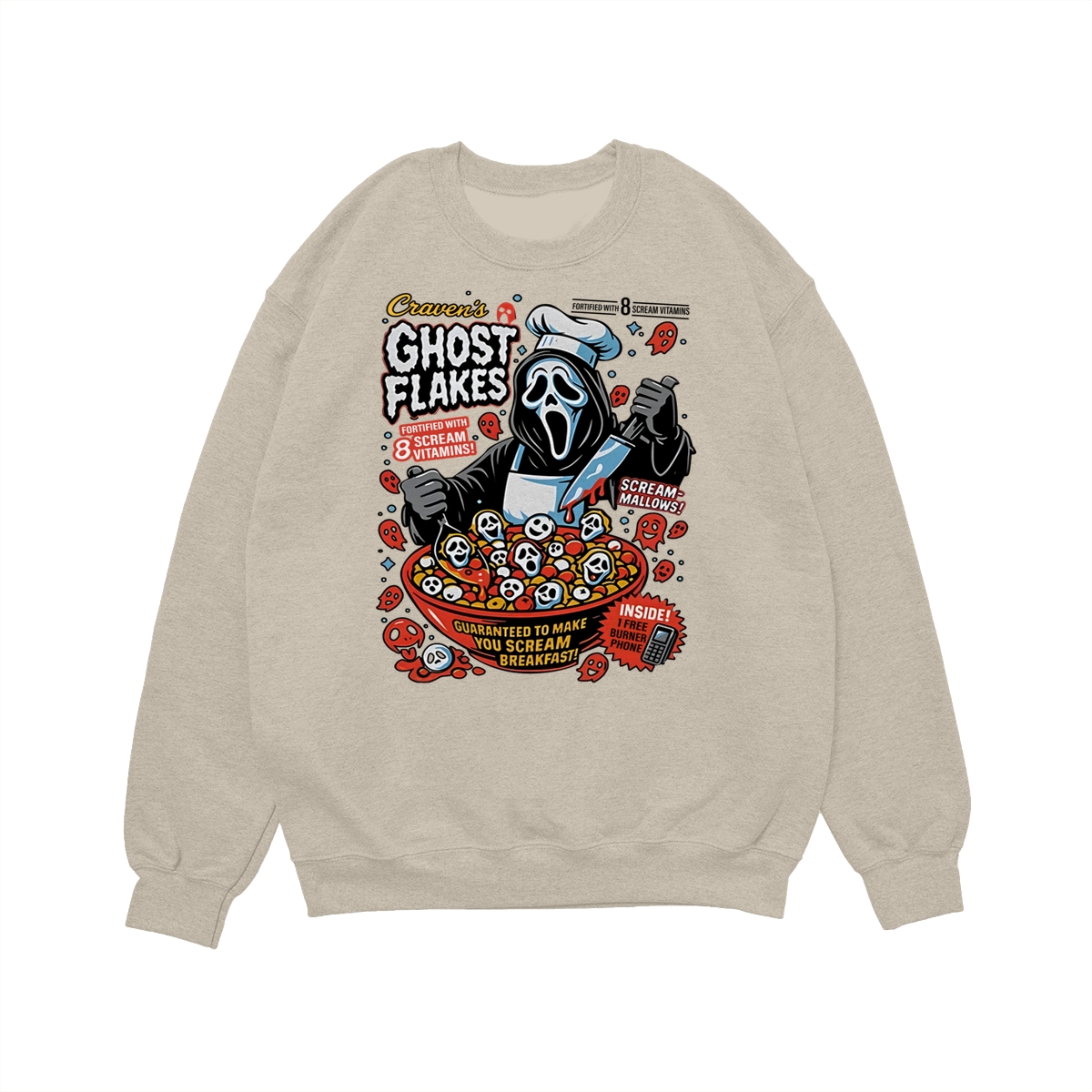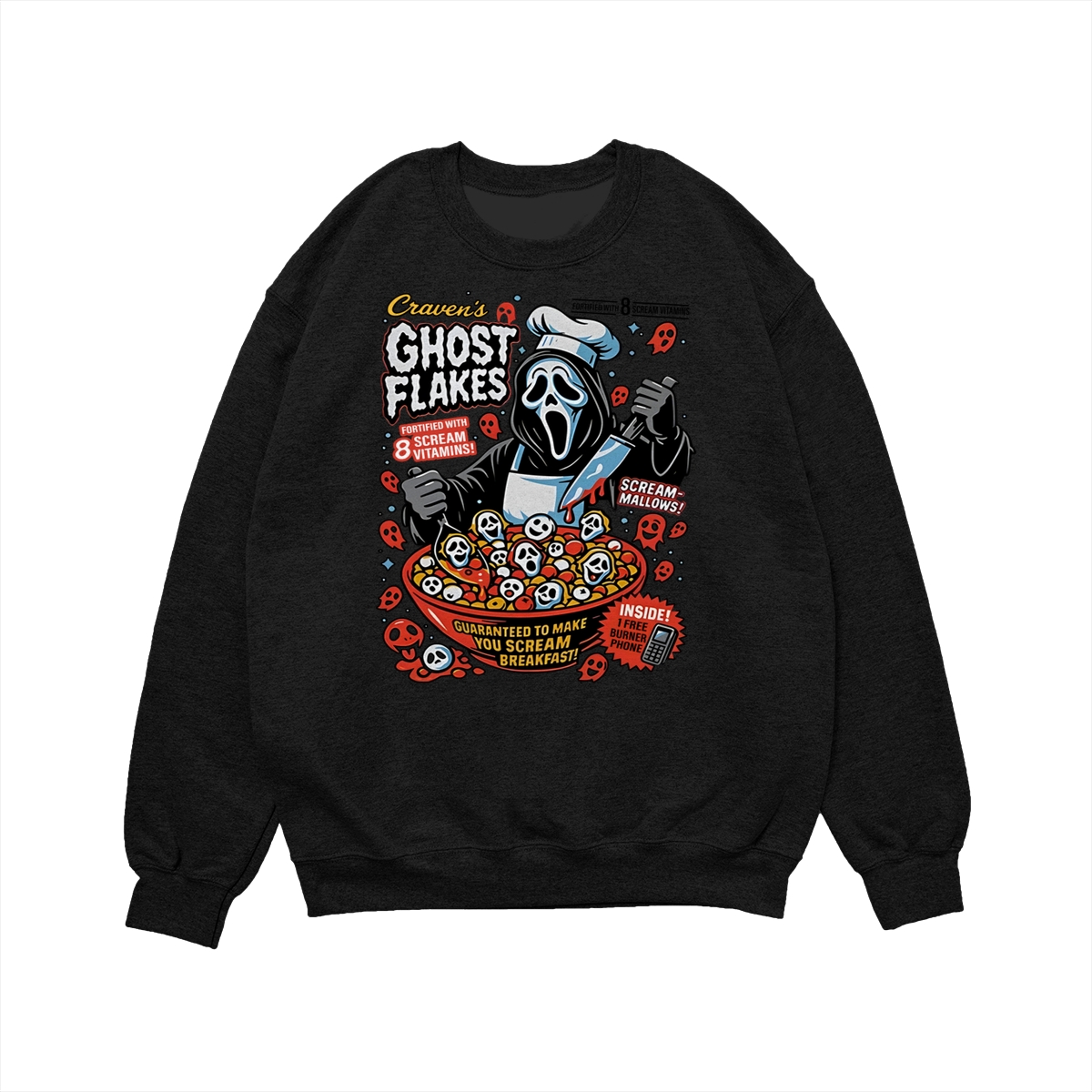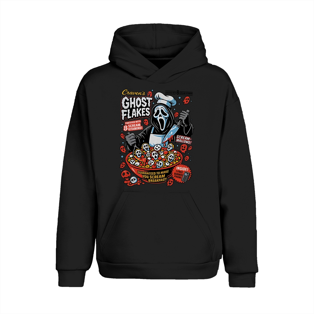 Funny Ghost Flakes TShirt – Sweatshirt – Hoodie, Horror Ghost Face Cereal Box Tee, Funny Scream Movie Shirt, Ghost Flakes Breakfast Shirt, Retro Halloween Season Tee