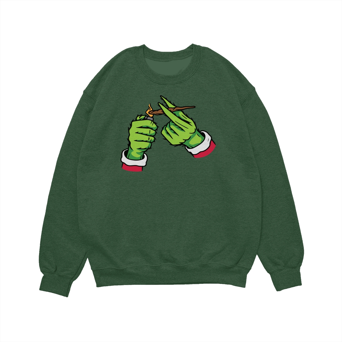 Funny Grinch Smoking Christmas Sweatshirt – Naughty Holiday Vibes, Holiday Sweatshirt Design, Christmas Shirt, Funny Merry Xmas Holiday Shirt, Casual Cotton Shirt for Men and Women, Classic Fashion Comfort