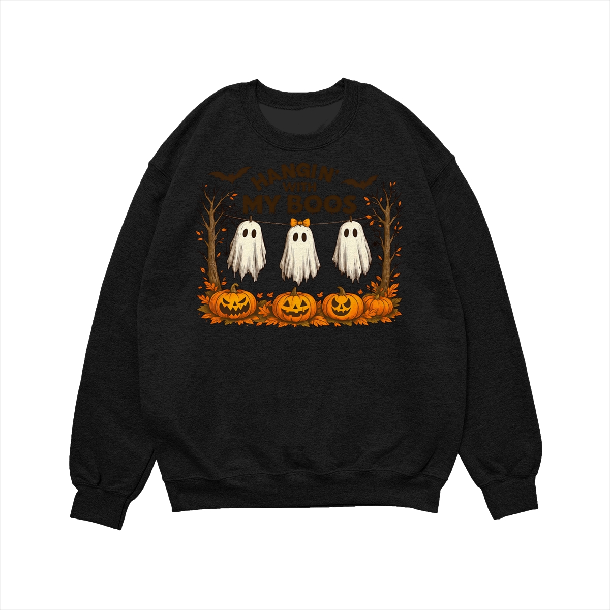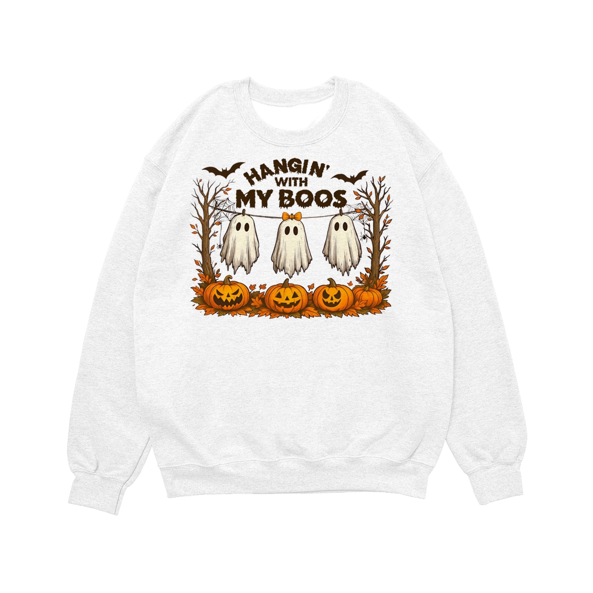 Funny Hanging Ghosts Halloween T-Shirt – Sweatshirt – Hoodie, Hangin With My Boos Shirt Design, Halloween Ghost Shirt, Cute Pumpkin Bat Halloween Shirt, Halloween Sublimation, Spooky Season Graphic Tee, Fall Halloween Shirt Womenswear Apparel
