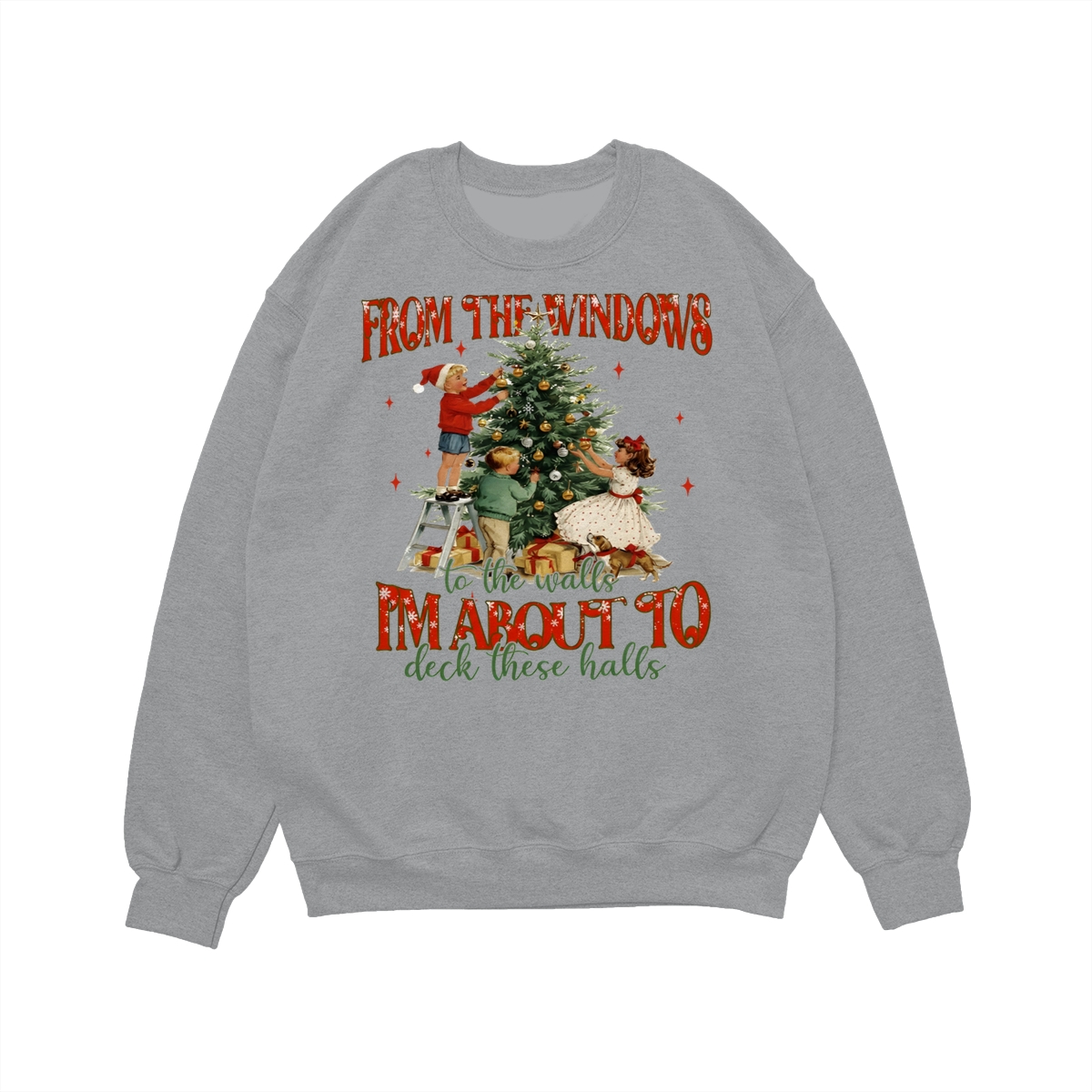Funny I’m About To Deck These Halls Sweatshirt, Vintage Retro Christmas Shirt, Holiday Humor Shirt, Womens Christmas Gift, Xmas Sweater