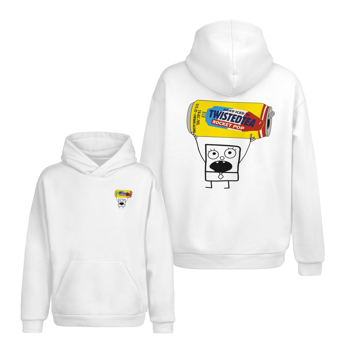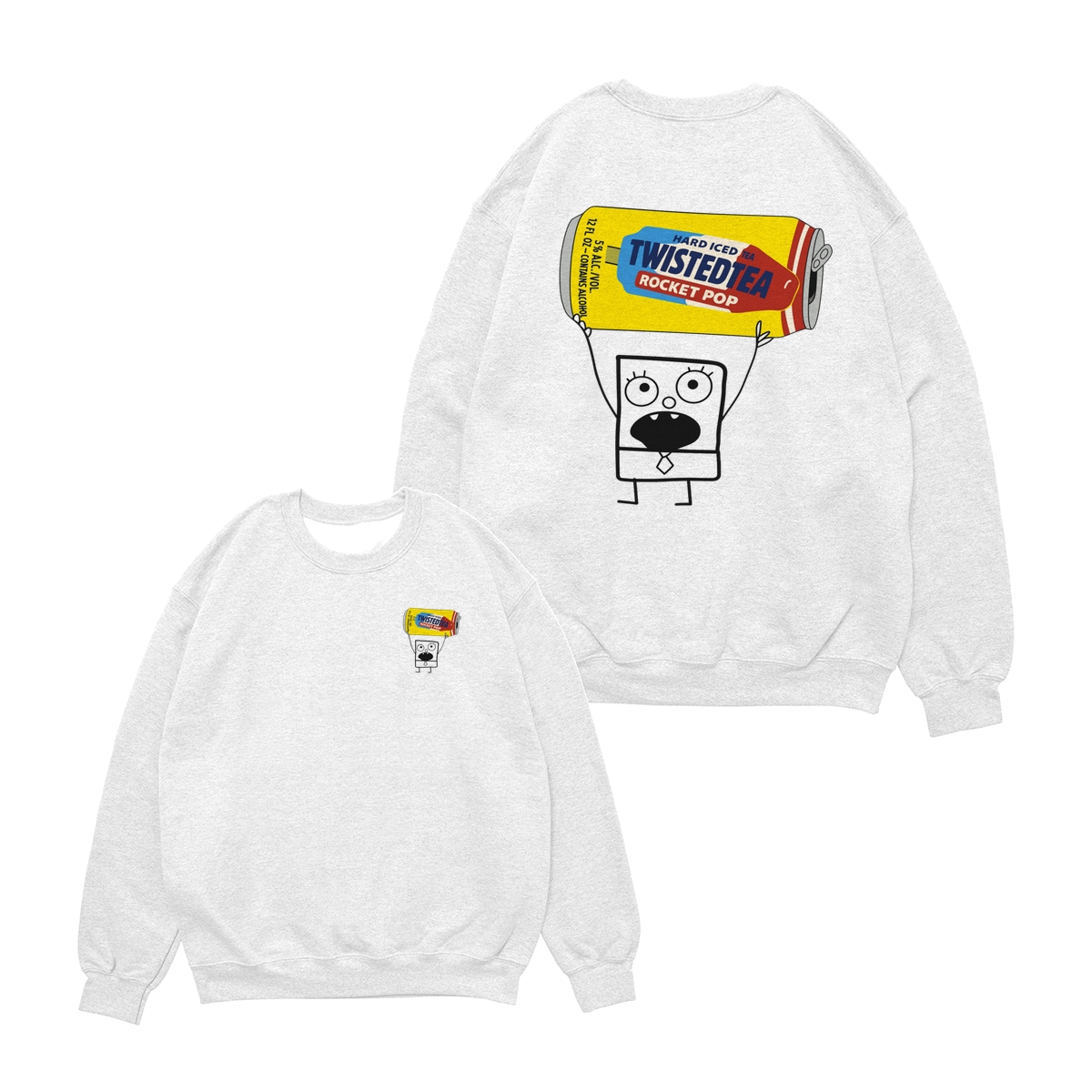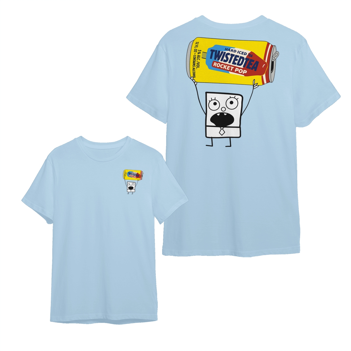 Funny Twisted Tea T-Shirt, Cartoon Character Lifting Rocket Pop Can Graphic, White Cotton Tee for Men and Women, Unisex Summer Party Humor Shirt