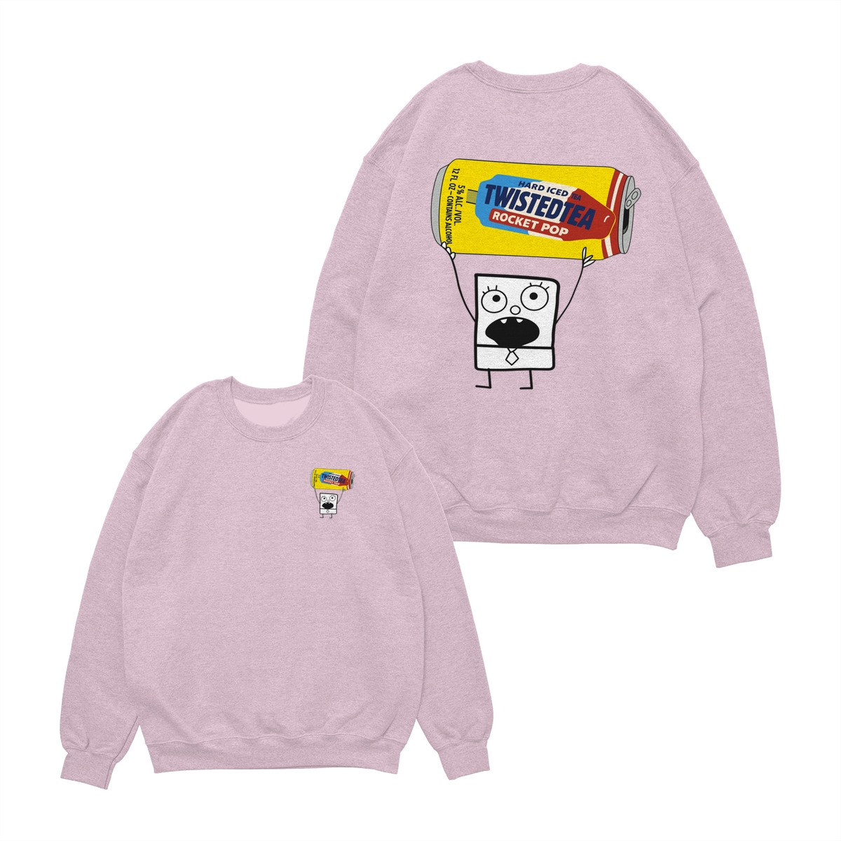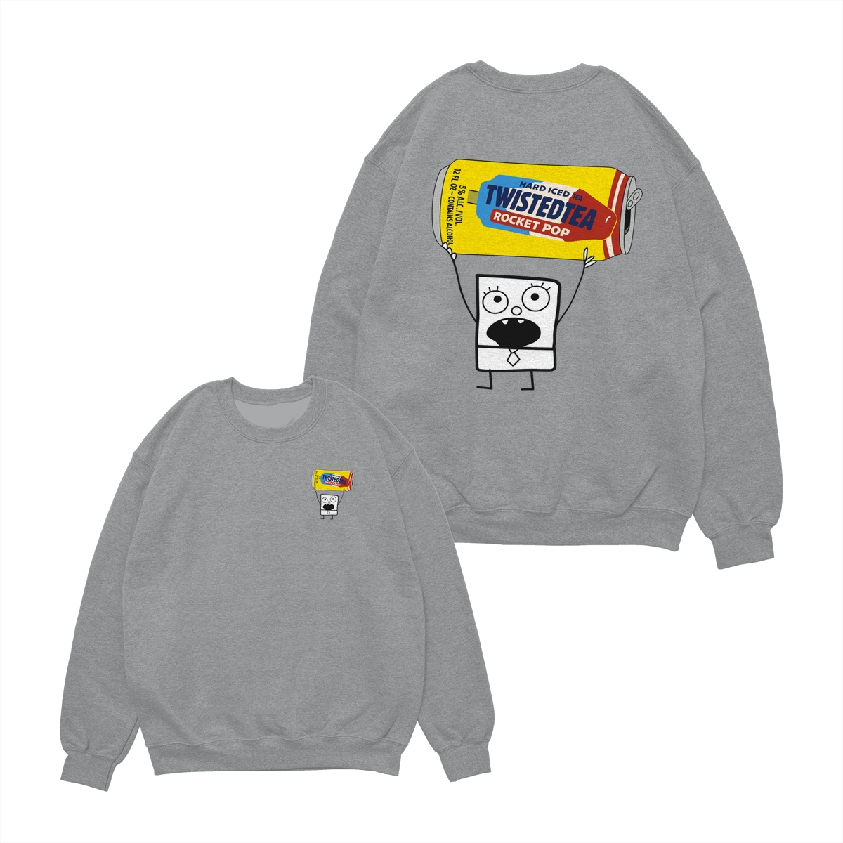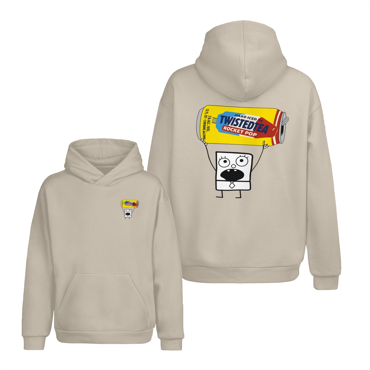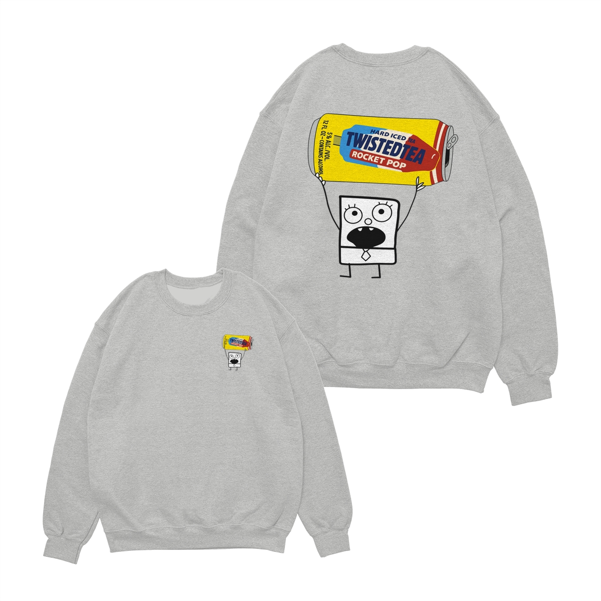 Funny Twisted Tea T-Shirt, Cartoon Character Lifting Rocket Pop Can Graphic, White Cotton Tee for Men and Women, Unisex Summer Party Humor Shirt