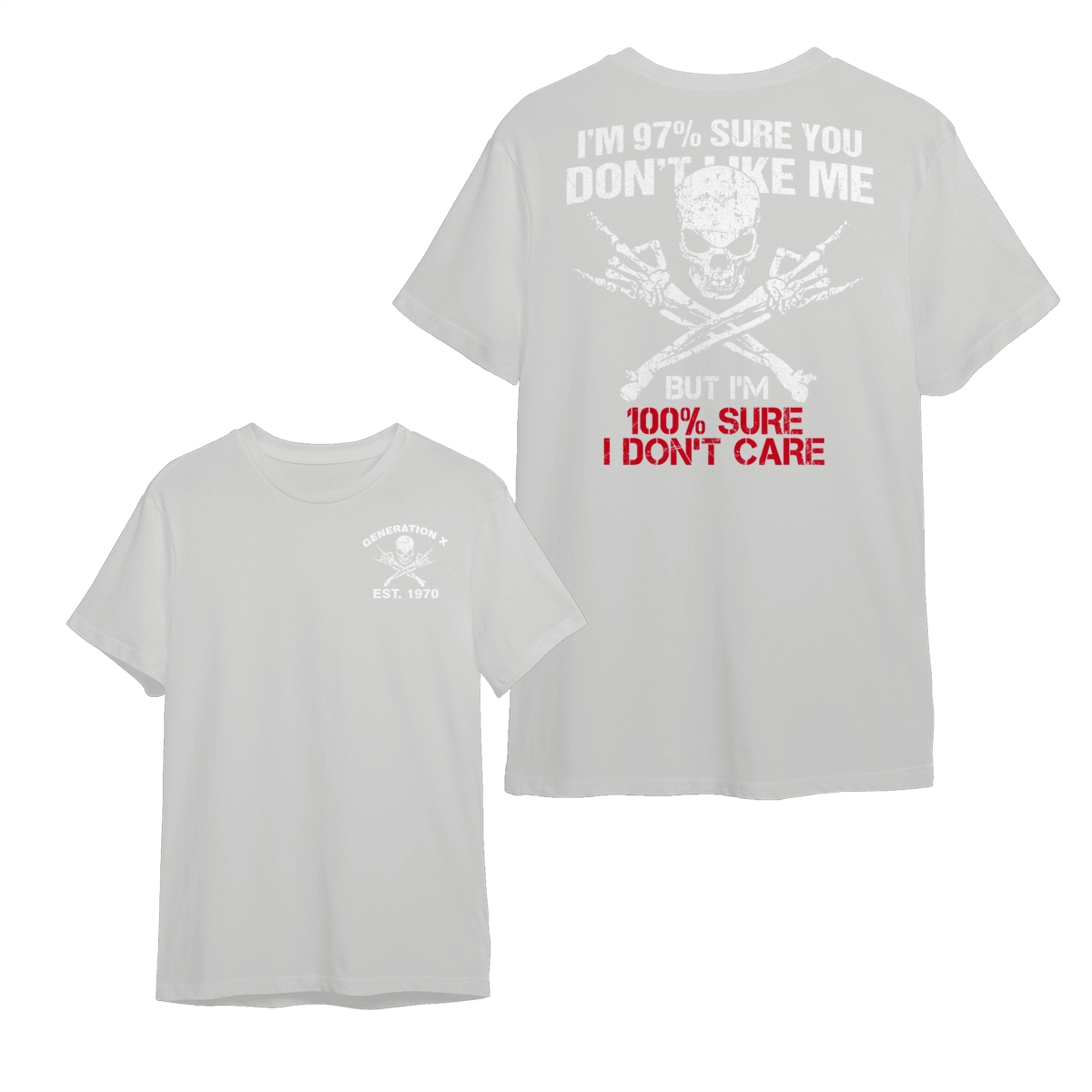 Gen X Skull 2 Sided T-Shirt, Boomer Gen X Customize Year Badass Generation T-Shirt, I’m 97% Sure You Don’t Like Me But I’m 100% Sure I Don’t Care T-Shirt, Gift for Funny Men and Women