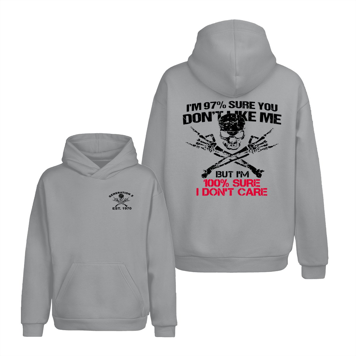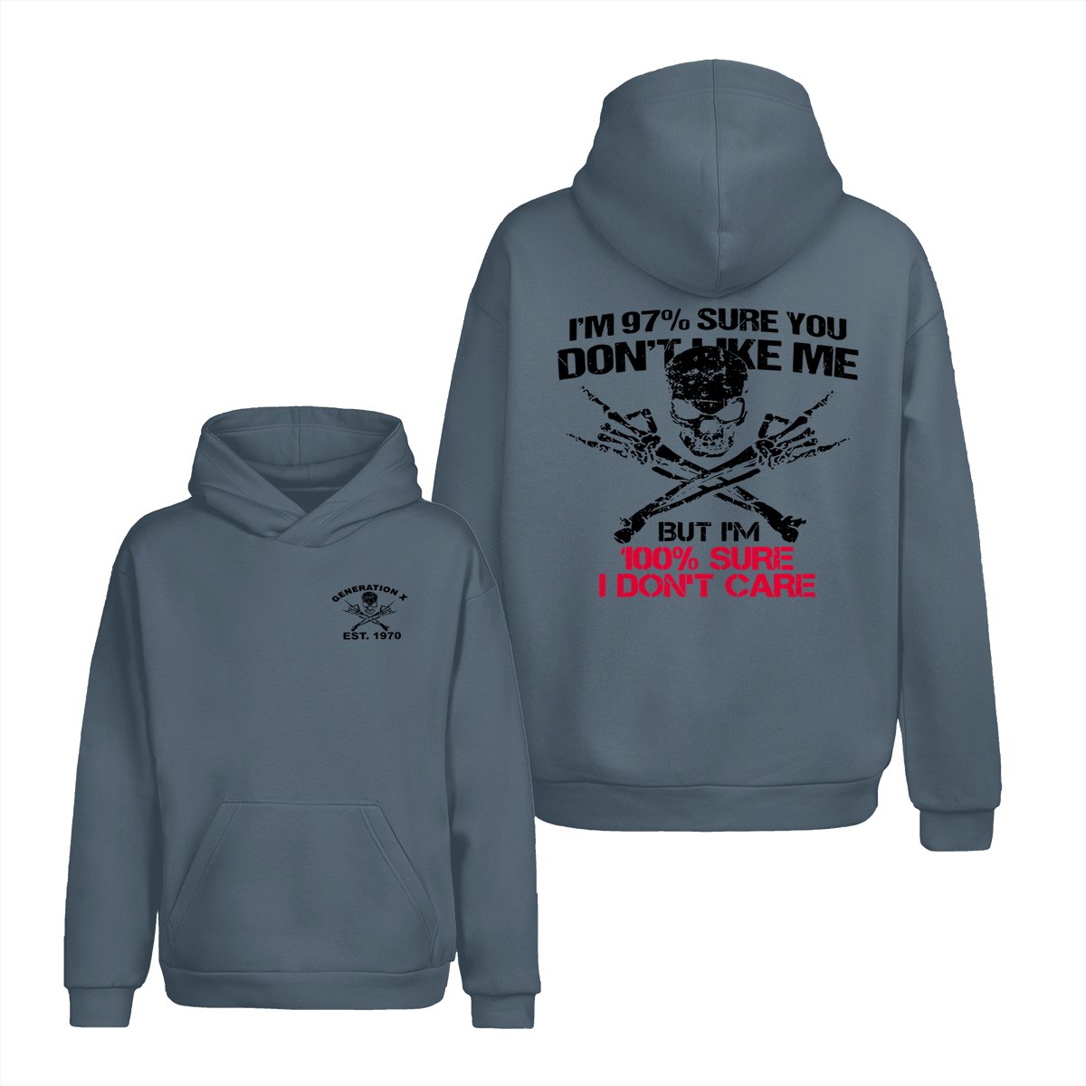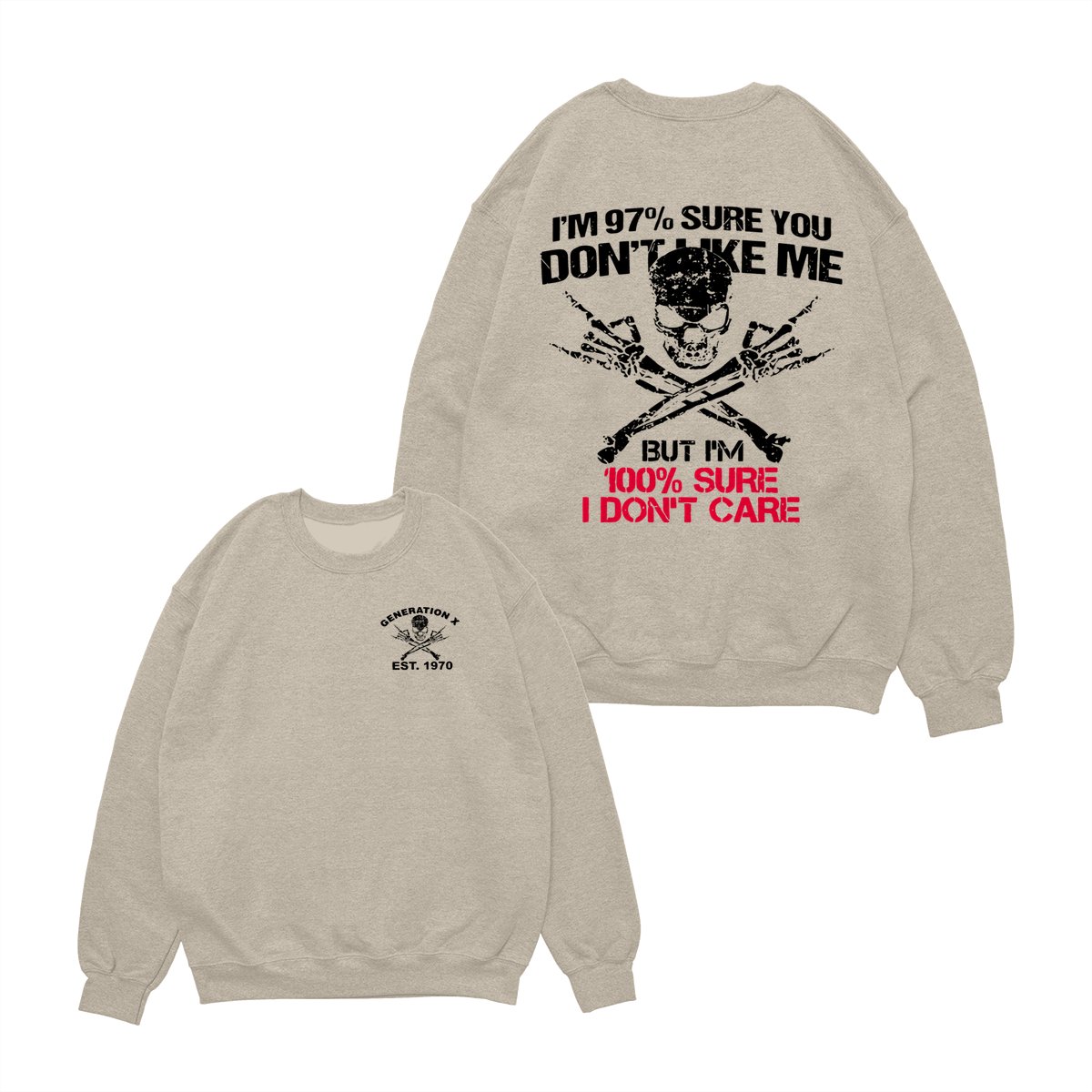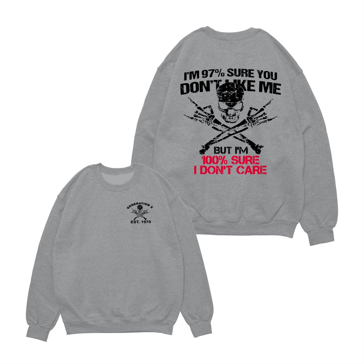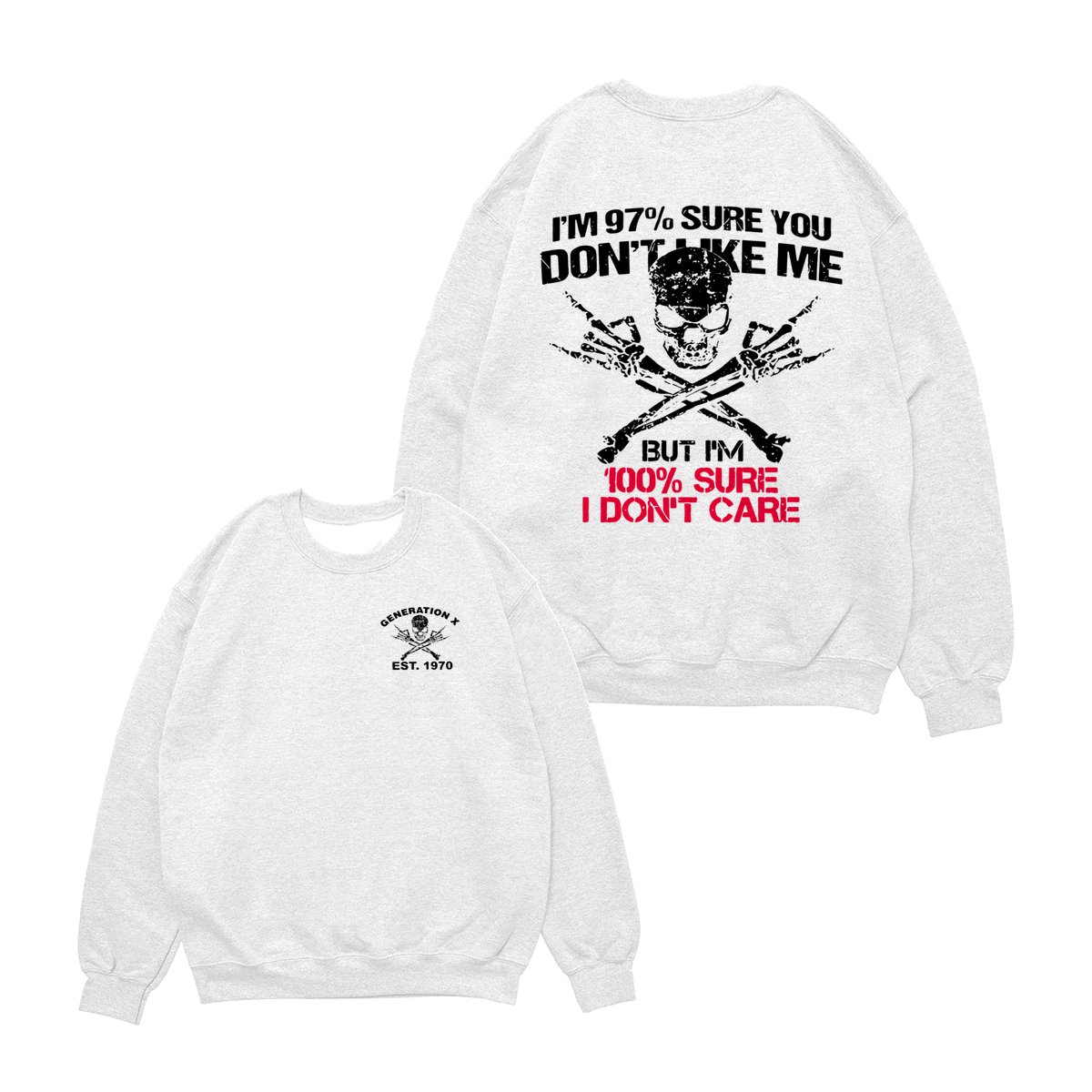 Generation X Skull T-Shirt, 97% Sure You Don’t Like Me Graphic Tee, 100% I Don’t Care Slogan Shirt, Funny Skull & Bones Design for Gen X, Rebel Attitude Apparel
