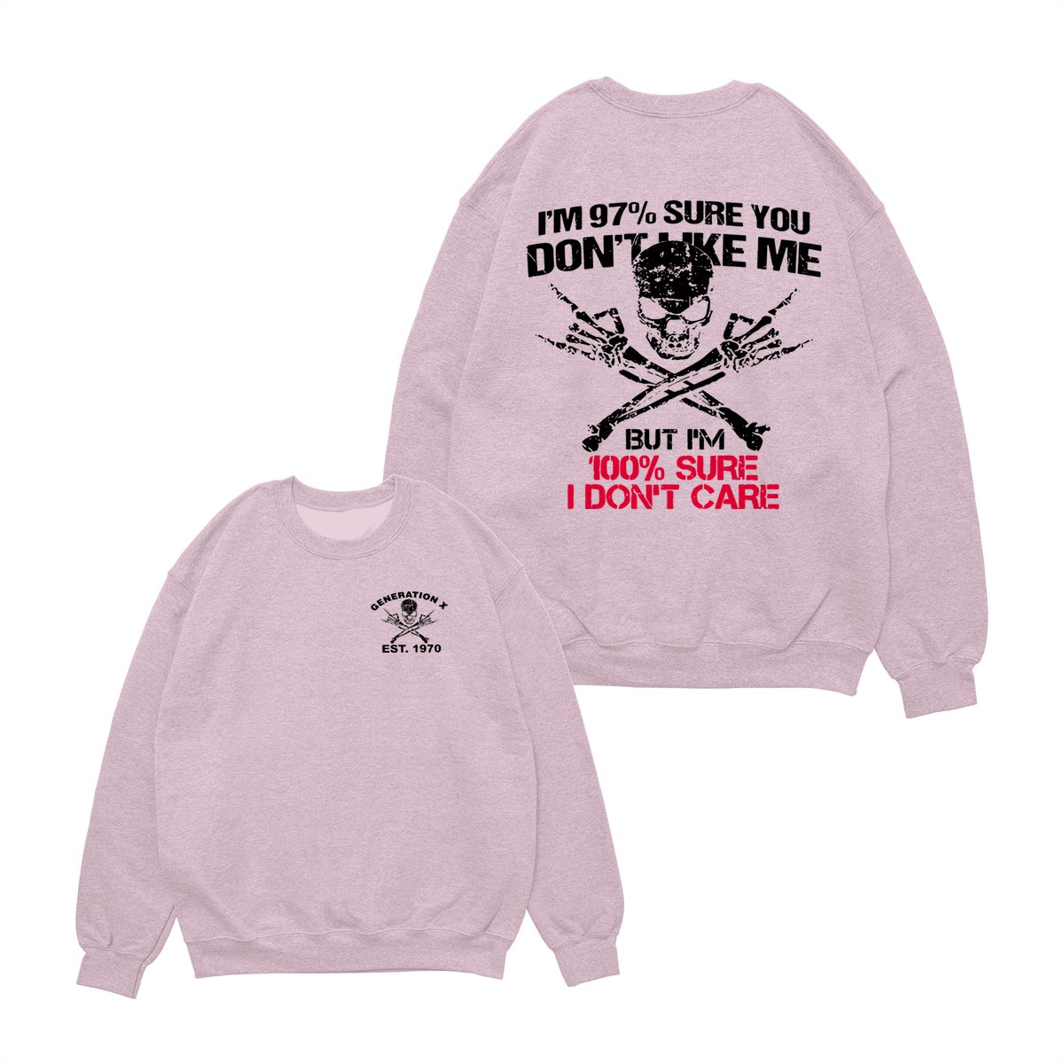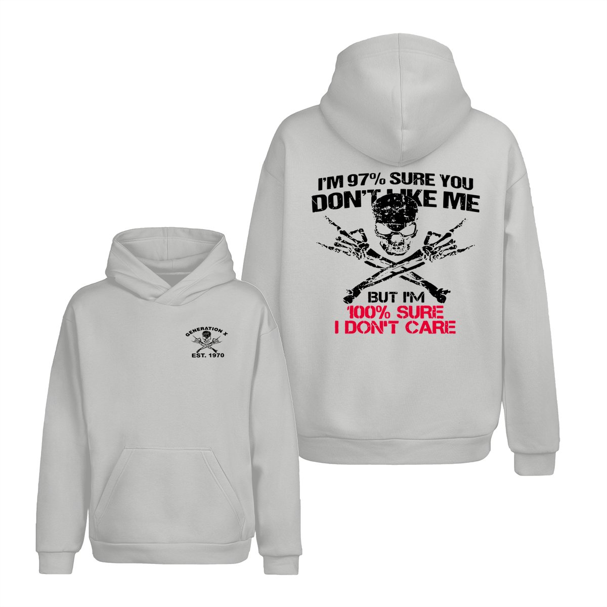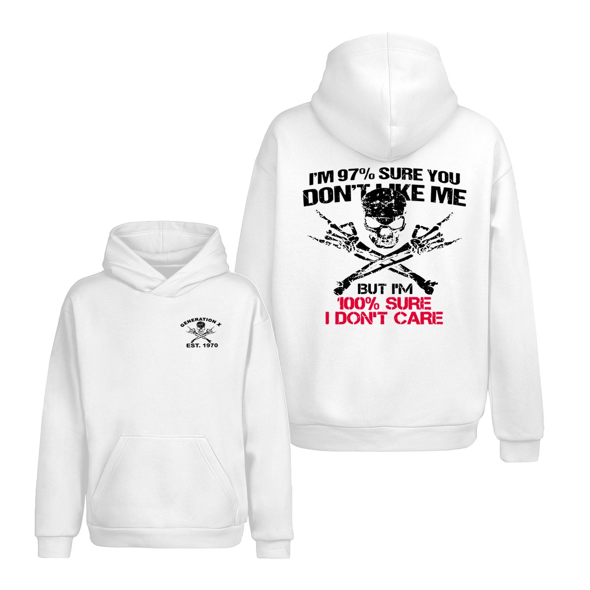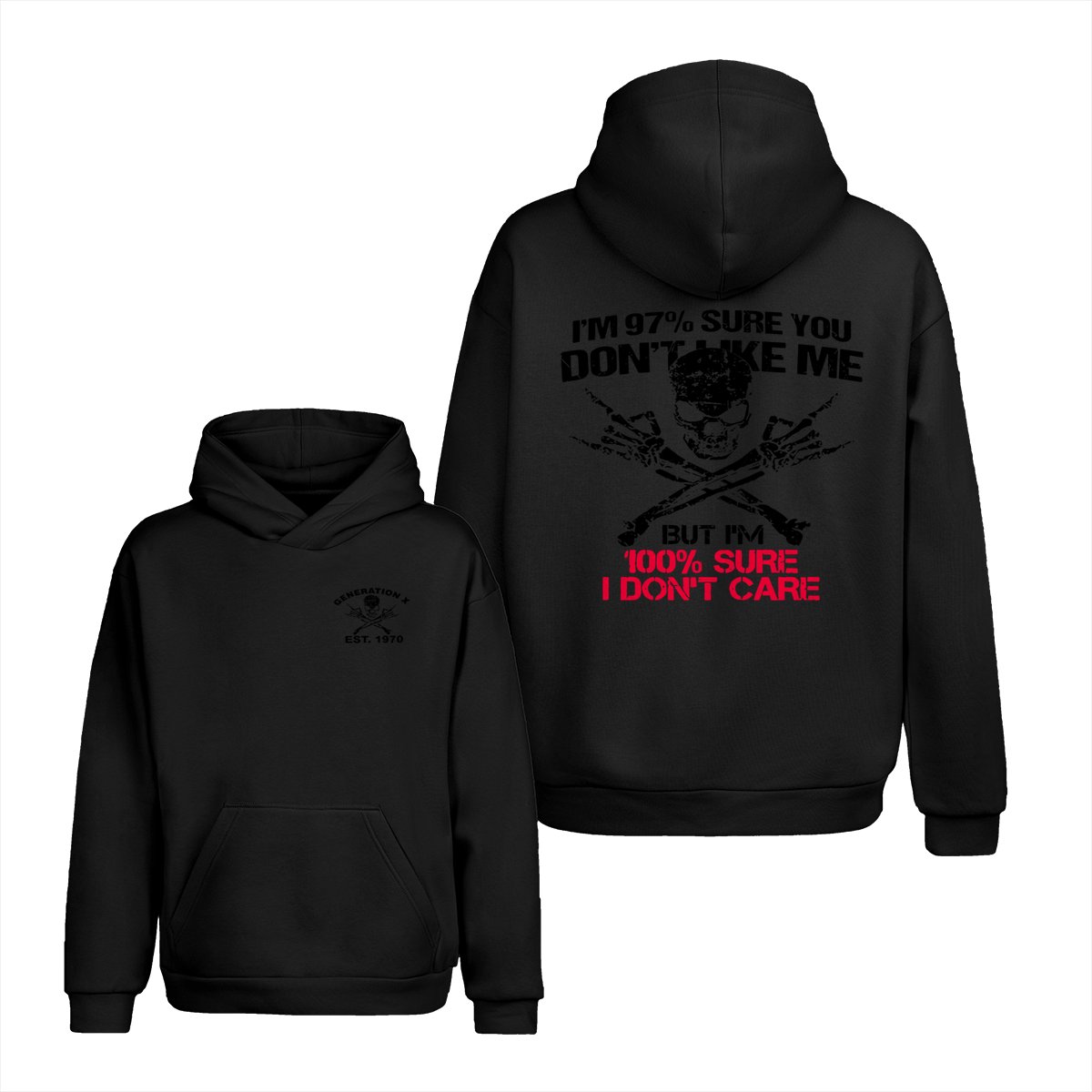 Generation X Skull T-Shirt, 97% Sure You Don’t Like Me Graphic Tee, 100% I Don’t Care Slogan Shirt, Funny Skull & Bones Design for Gen X, Rebel Attitude Apparel