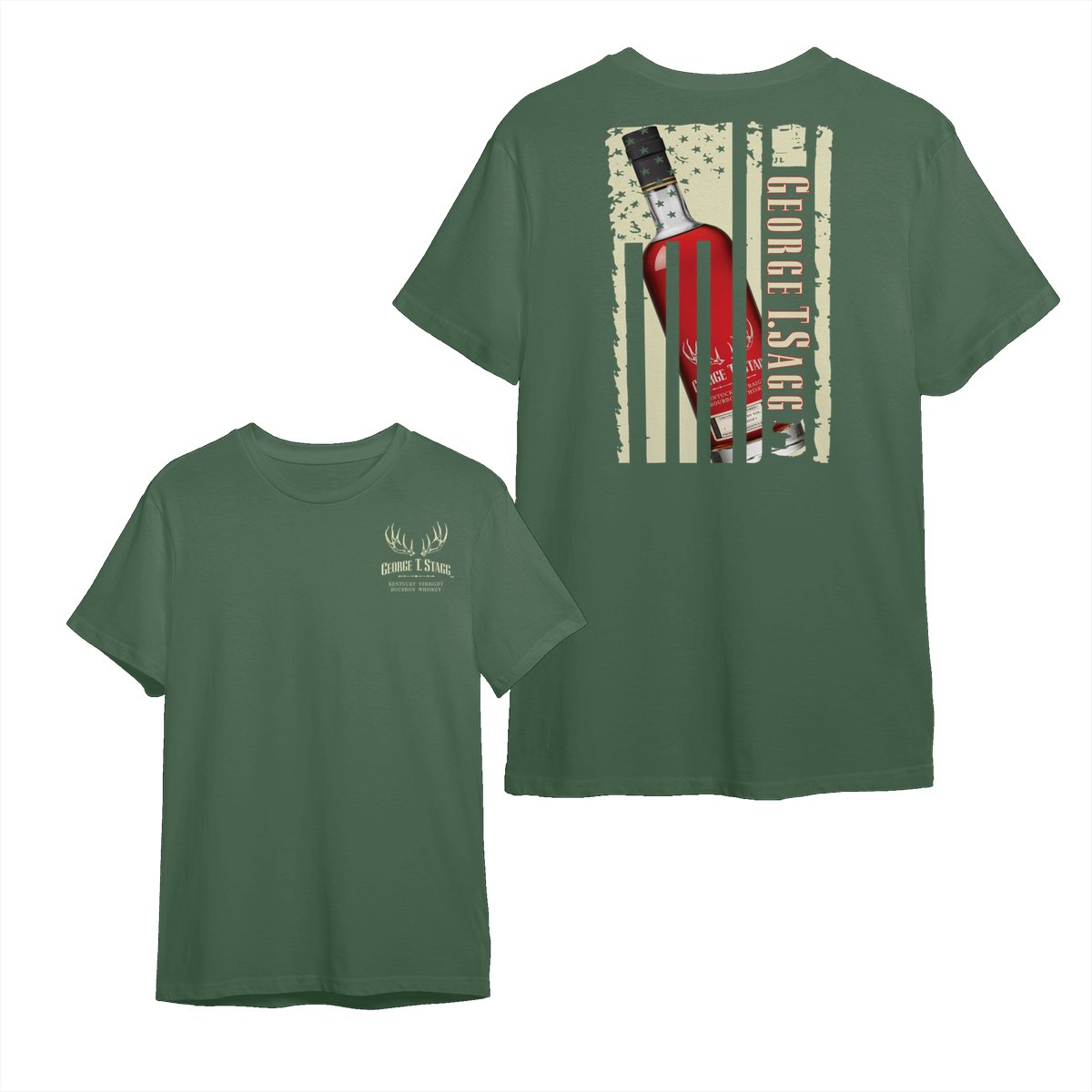 George T. Stagg US Flag T-Shirt Kentucky Straight Bourbon Whiskey – Cotton Graphic Tees T-Shirt Streetwear Crewneck Menswear Tops Casual