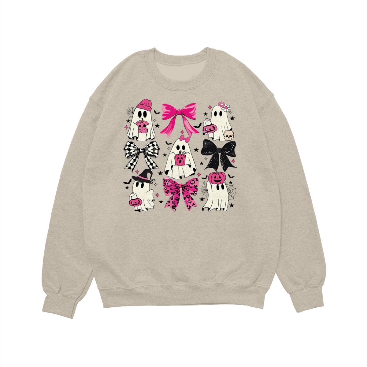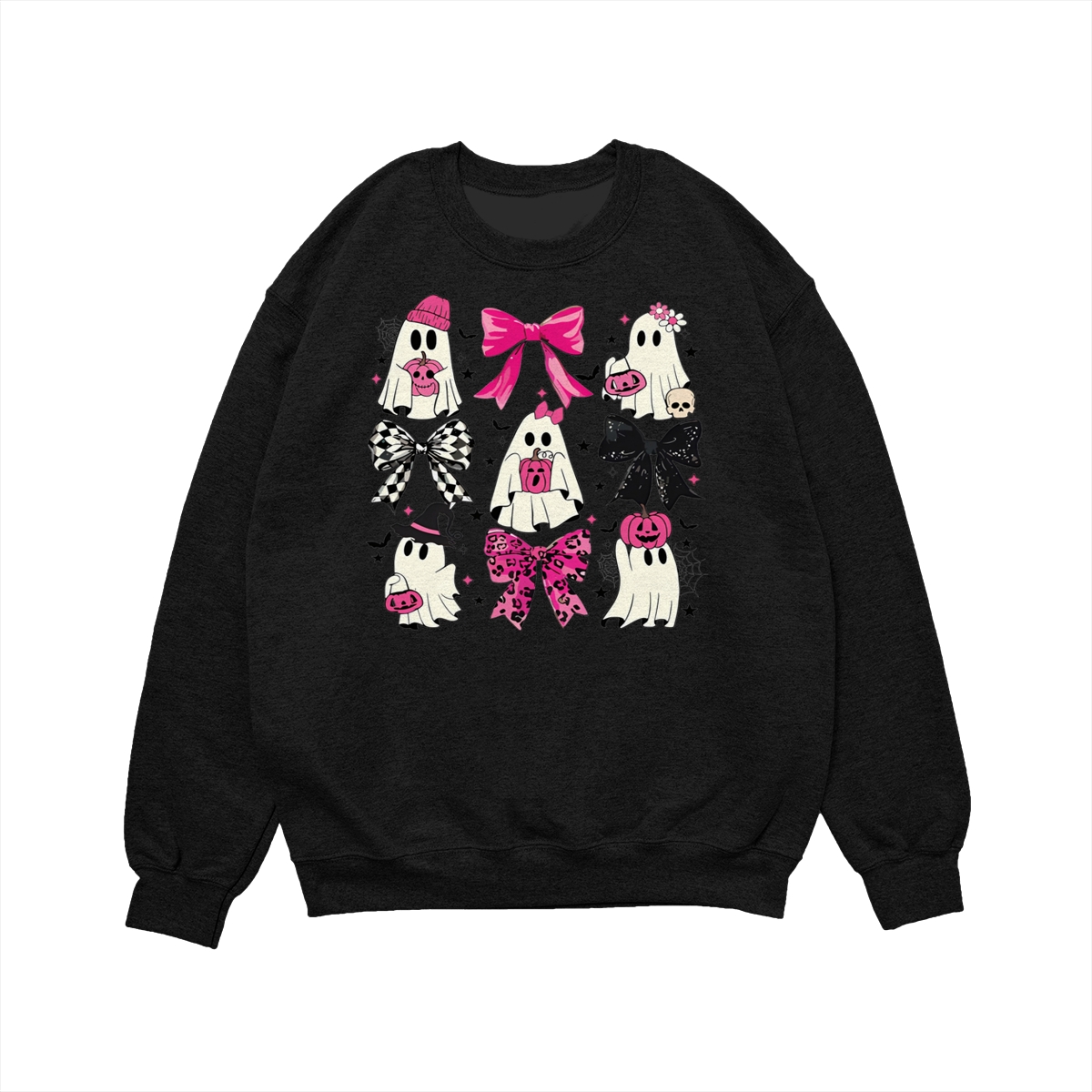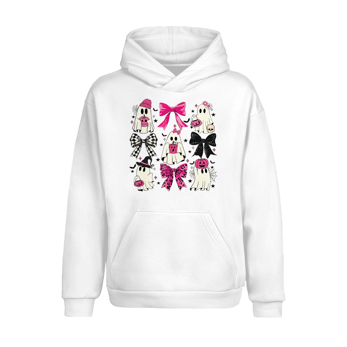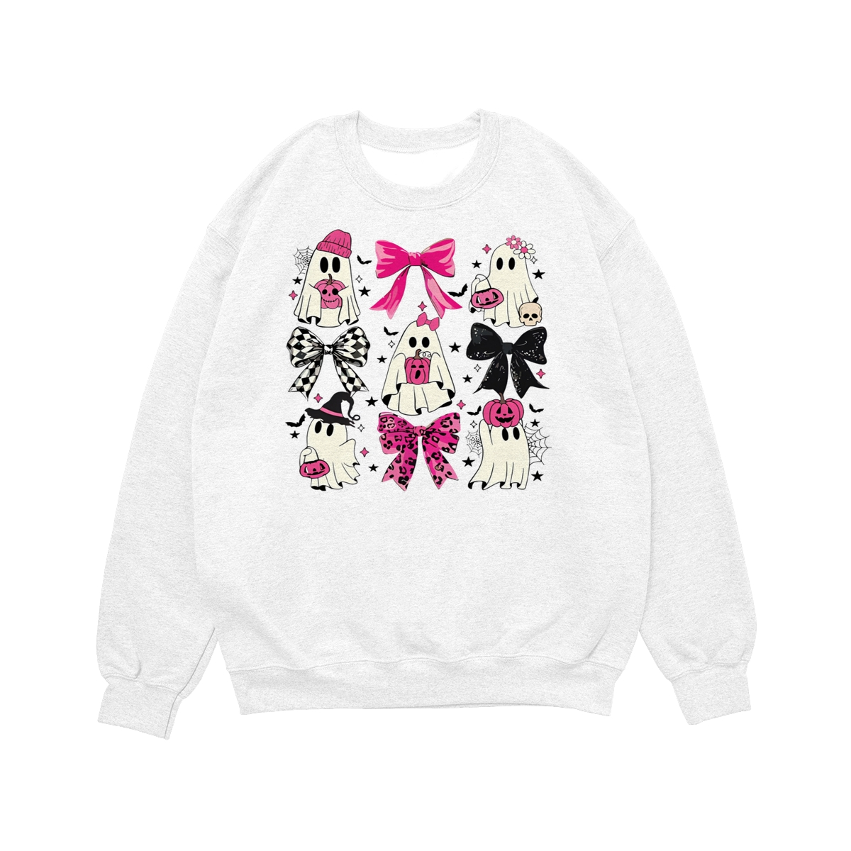 Ghost Coquette Bow Sweatshirt – T-Shirt – Hoodie, Cute Pink Spooky Crewneck, Retro Halloween Ghost Hoodie, Fall Pumpkin Bow Pullover, Kawaii Halloween Sweatshirt, Pastel Goth Fall Sweater, Cute Ghost Costume Top, Gift for Her