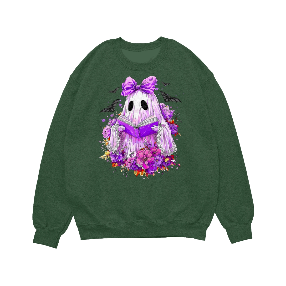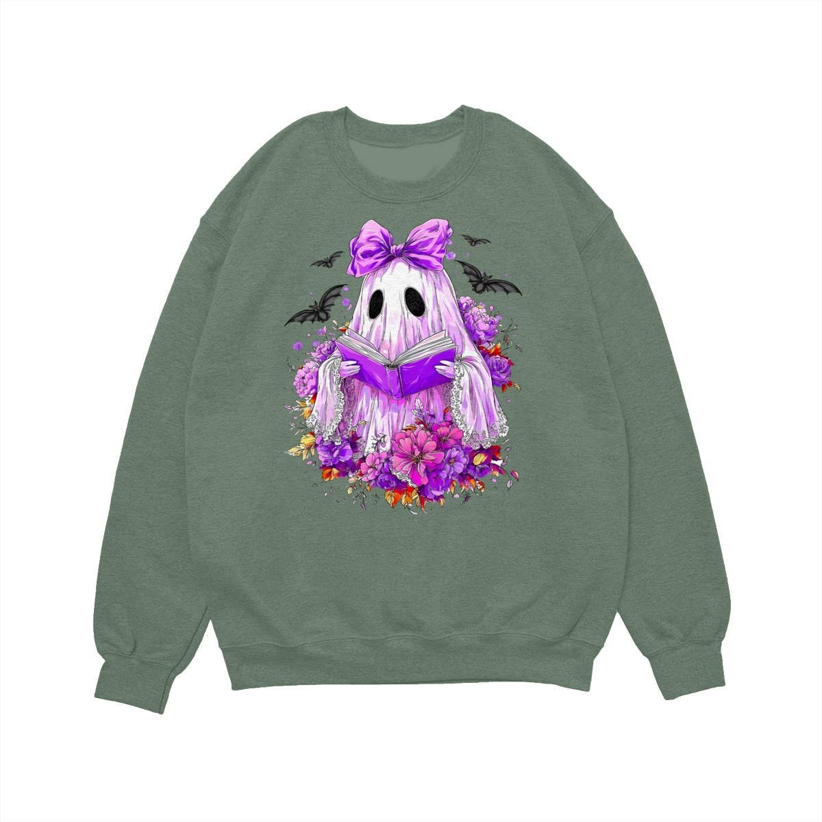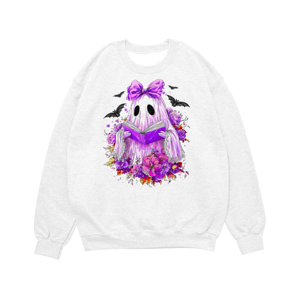 Ghost Reading Books Shirt, Bookish Ghost Shirt, Preppy Floral Spooky Sweatshirt, Coquette Halloween Hoodie, Preppy Halloween Gifts, Bookish Halloween