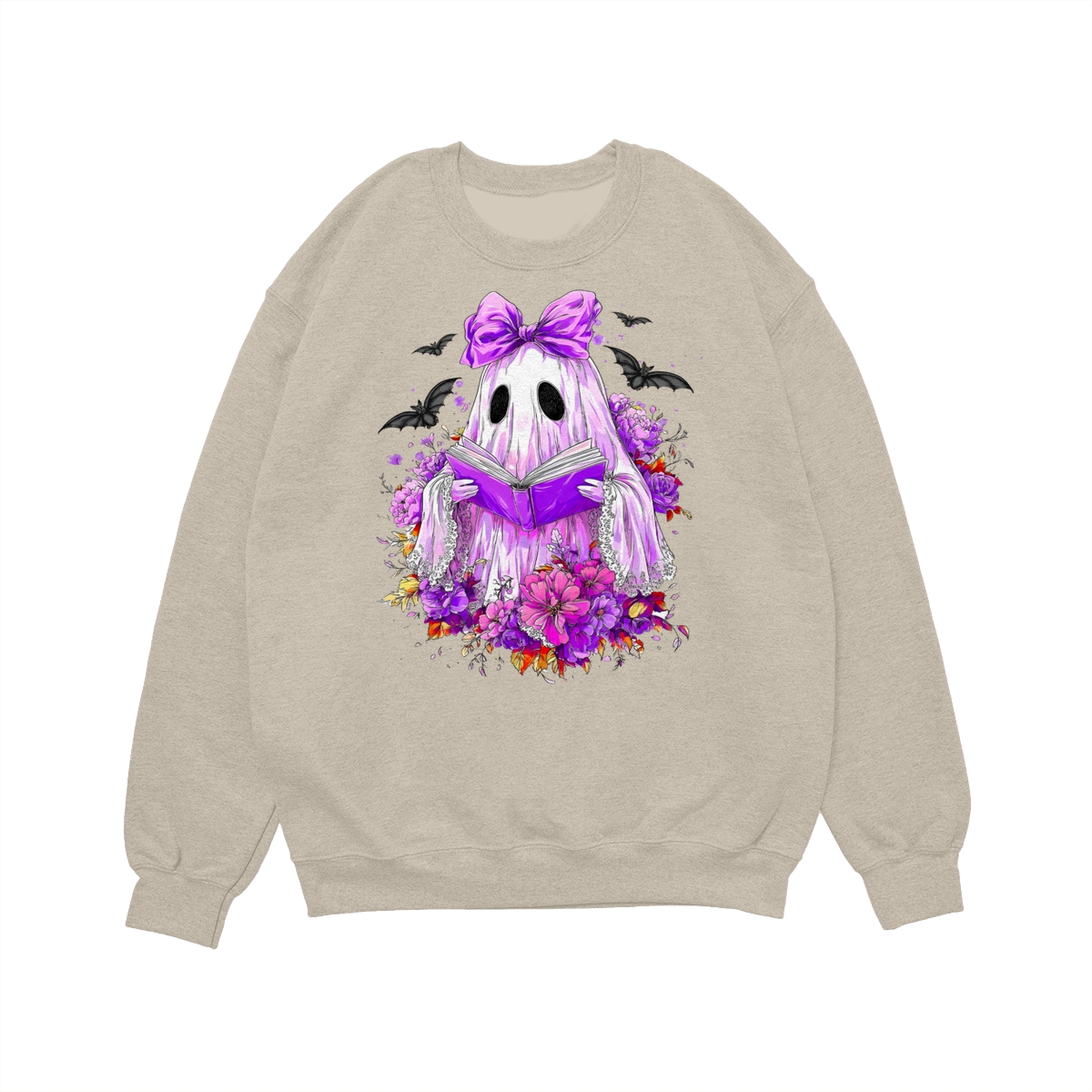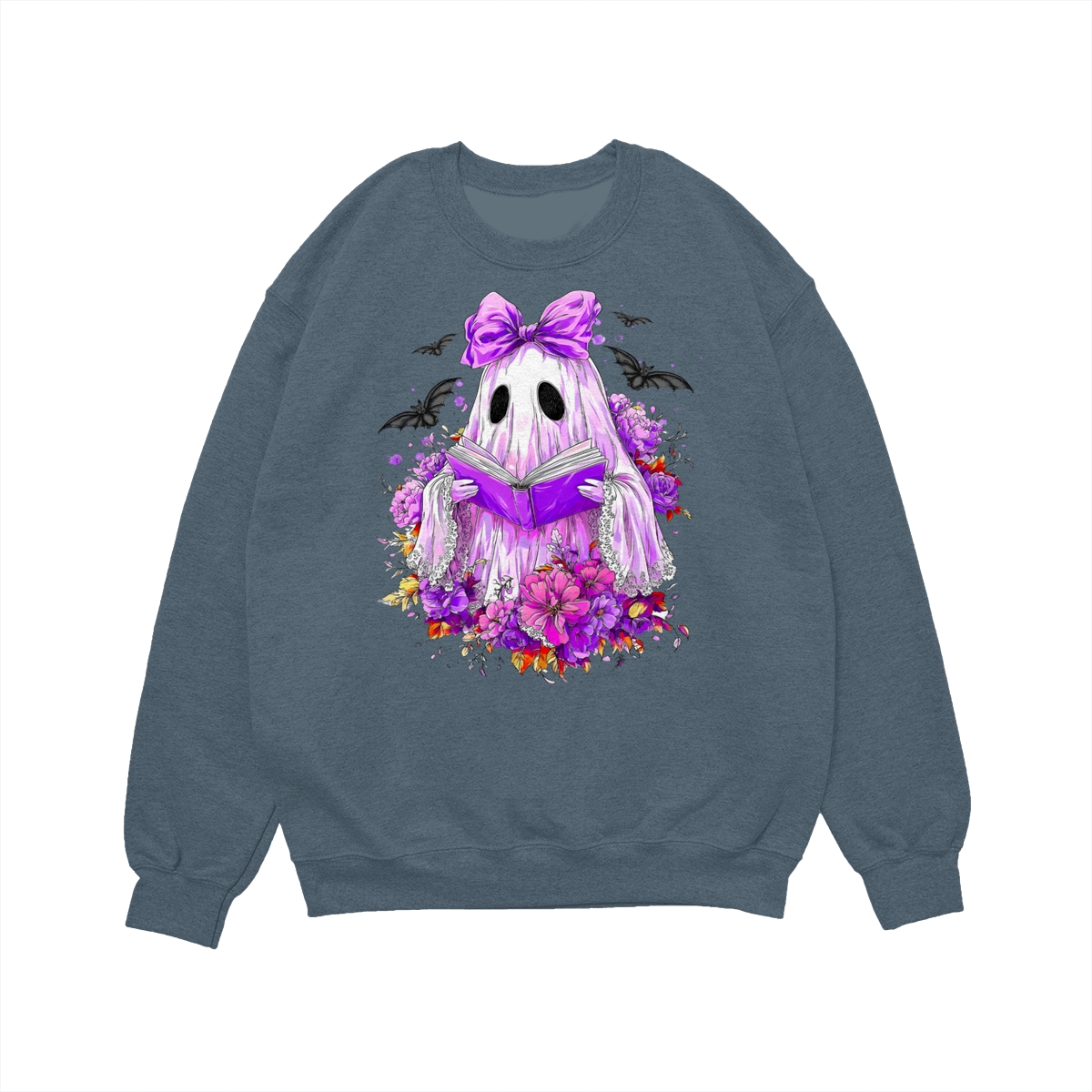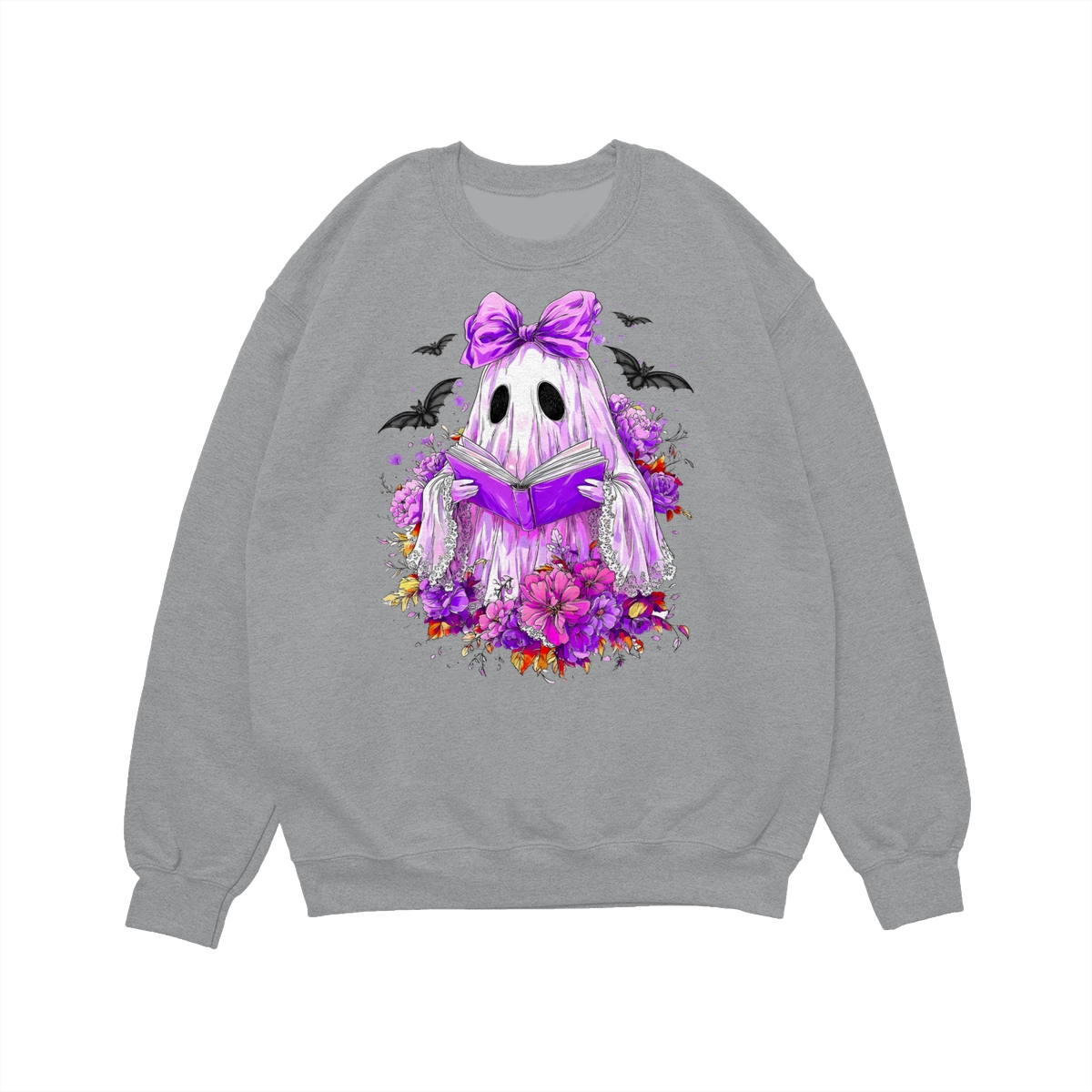 Ghost Reading Books Shirt, Bookish Ghost Shirt, Preppy Floral Spooky Sweatshirt, Coquette Halloween Hoodie, Preppy Halloween Gifts, Bookish Halloween