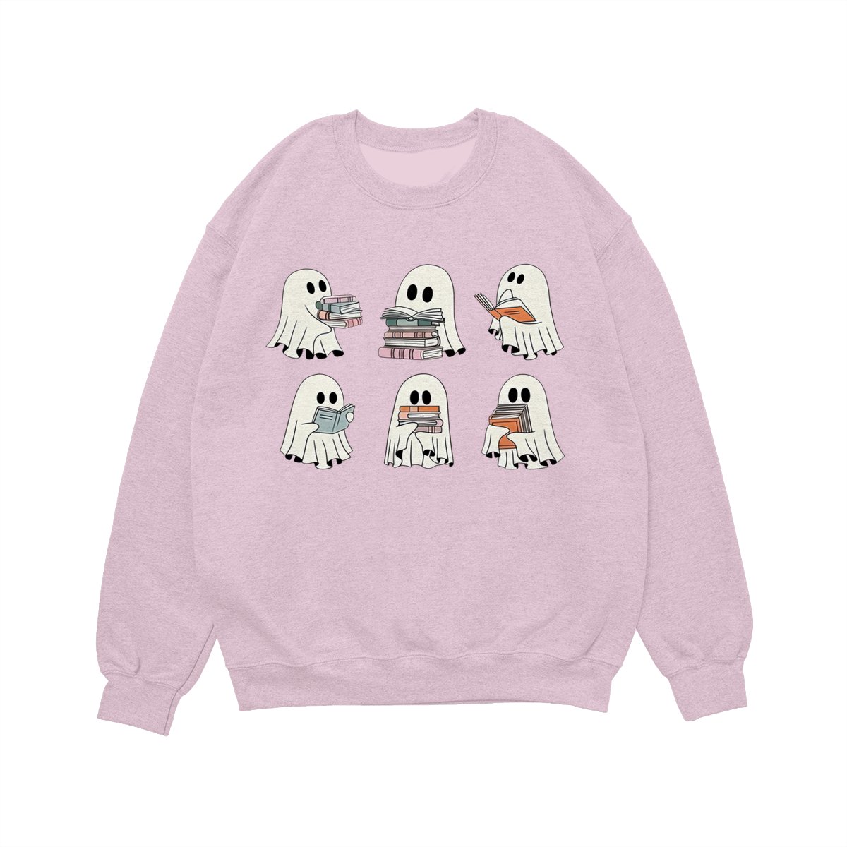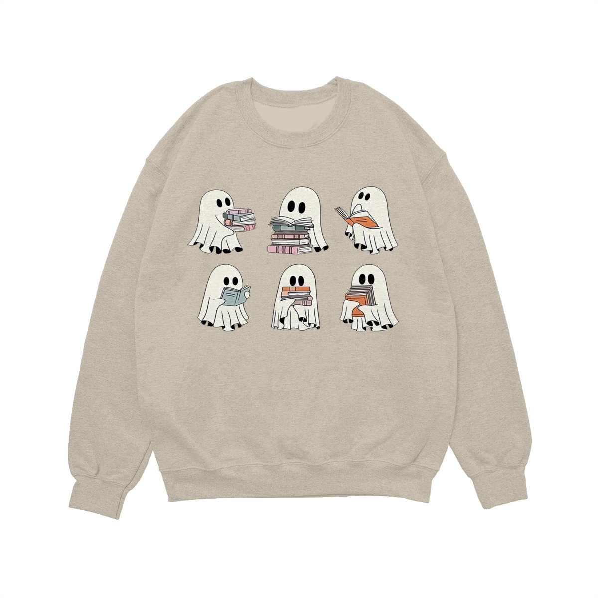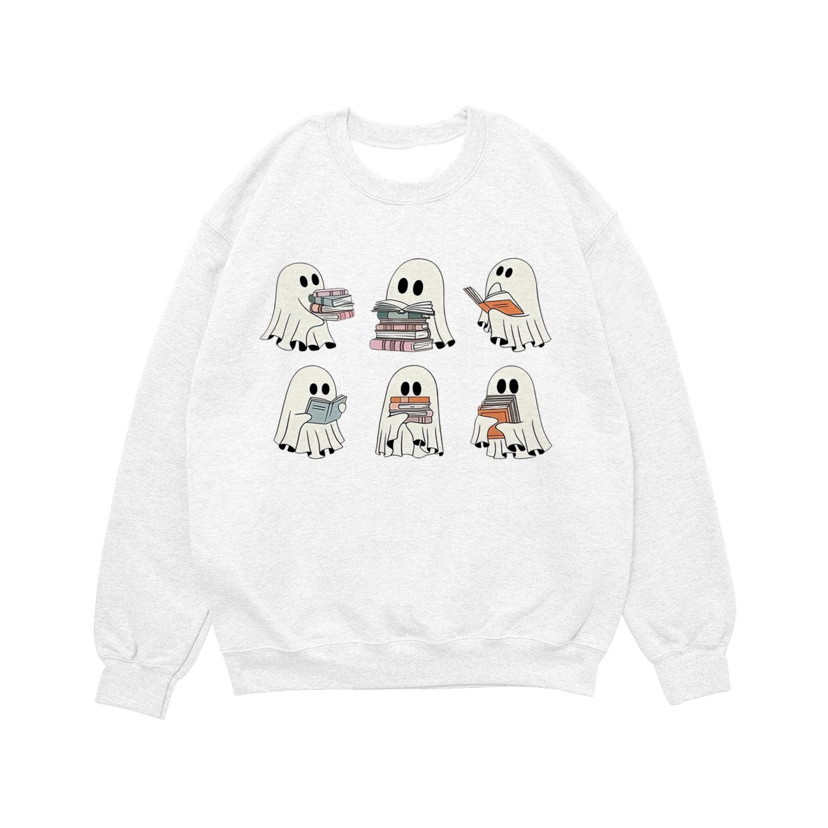 Ghost Reading Books Shirt, Bookish Halloween Crewneck Librarian Sweater, Funny Ghost Reading Shirt, Ghost Book Shirt, Book Ghosts Sweatshirt, Full Color, For Men, For Women, Classic Fashion, Halloween Sweatshirt, Gifts for Halloween
