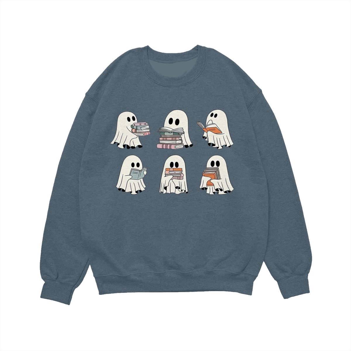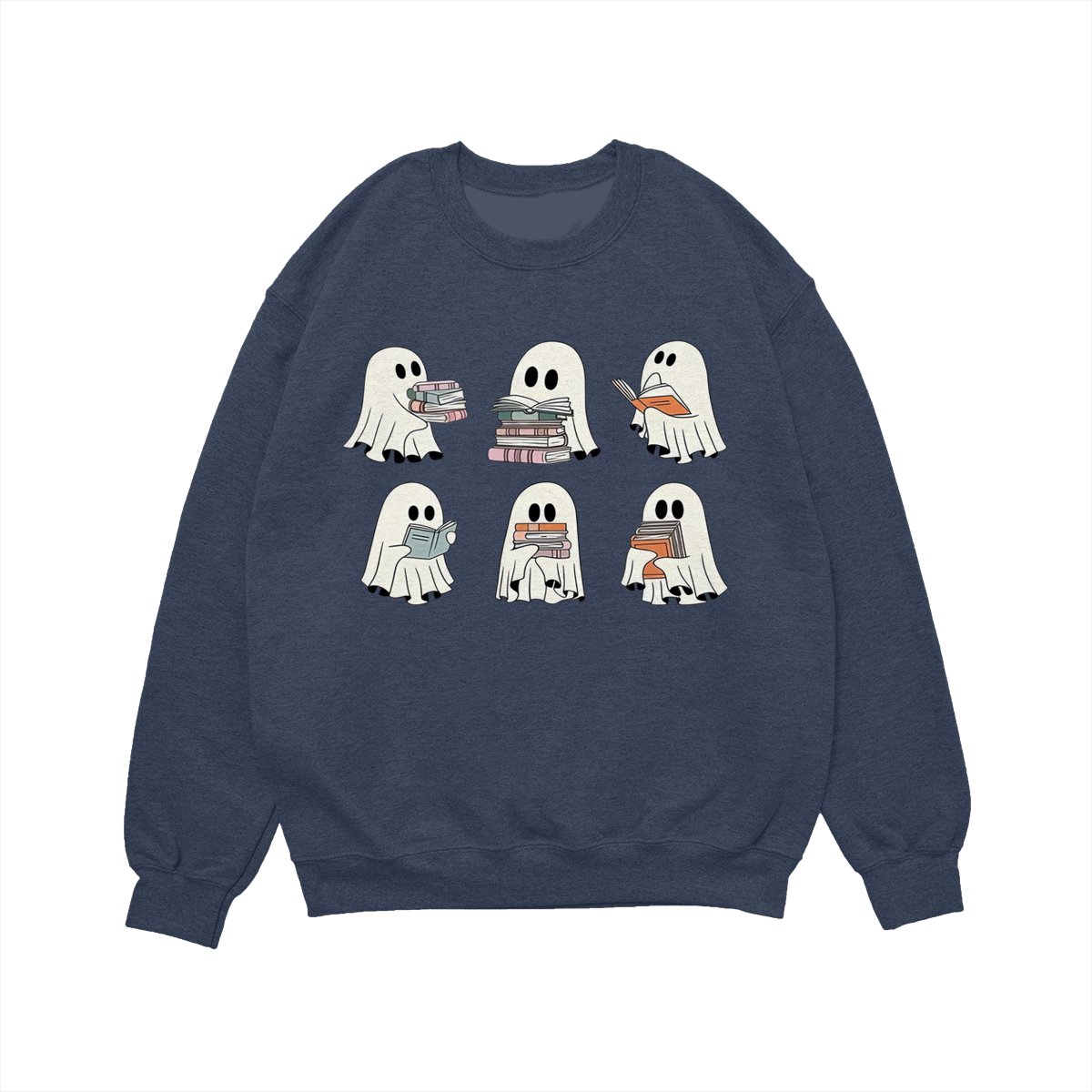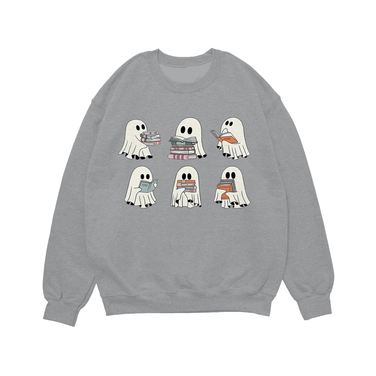 Ghost Reading Books Shirt, Bookish Halloween Crewneck Librarian Sweater, Funny Ghost Reading Shirt, Ghost Book Shirt, Book Ghosts Sweatshirt, Full Color, For Men, For Women, Classic Fashion, Halloween Sweatshirt, Gifts for Halloween
