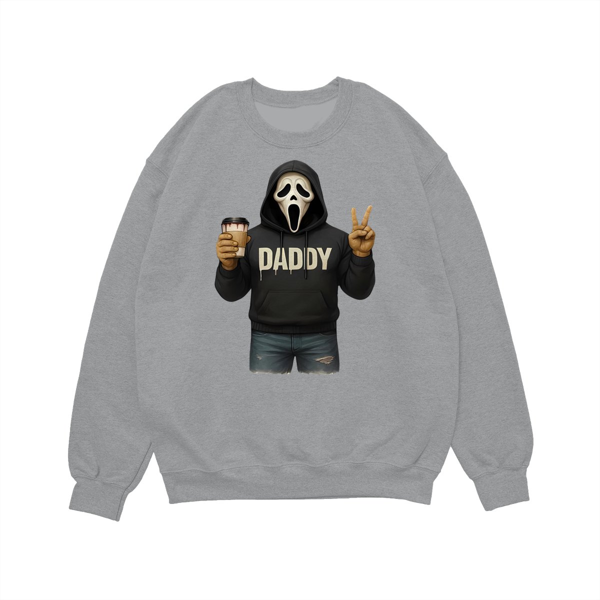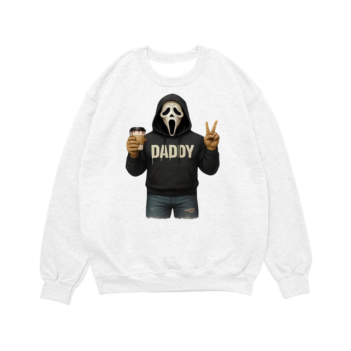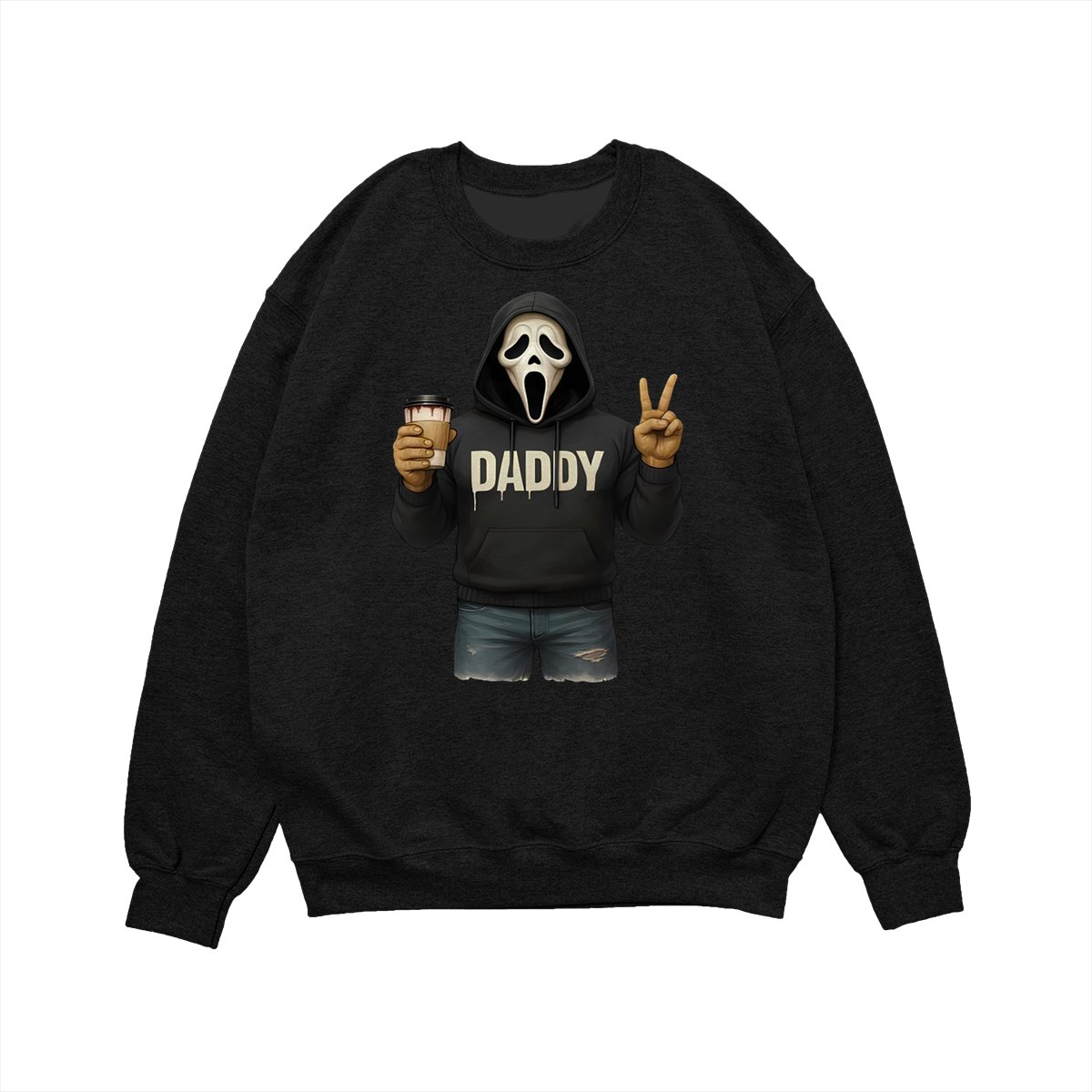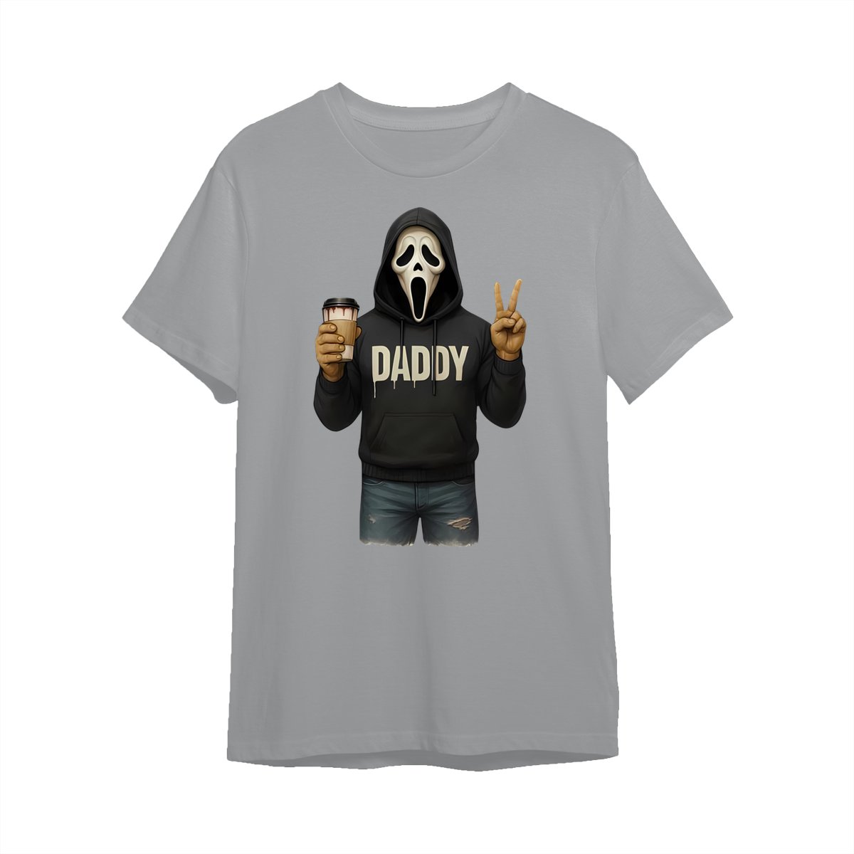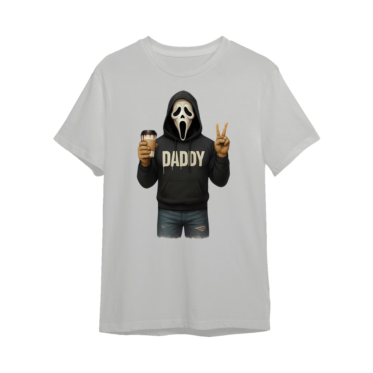 Ghostface Daddy Halloween T-Shirt – Spooky Funny Dad with Coffee Graphic, Creepy Yet Cute Pullover, Cozy Fall Streetwear