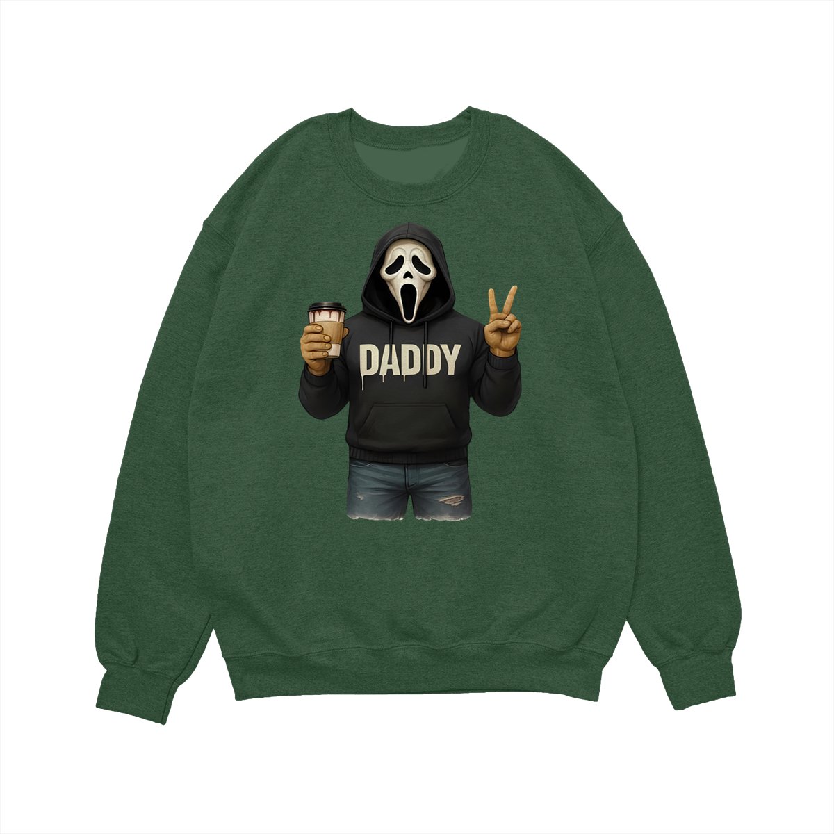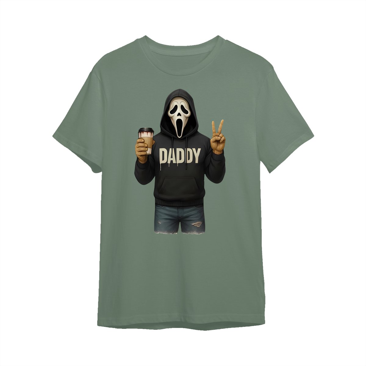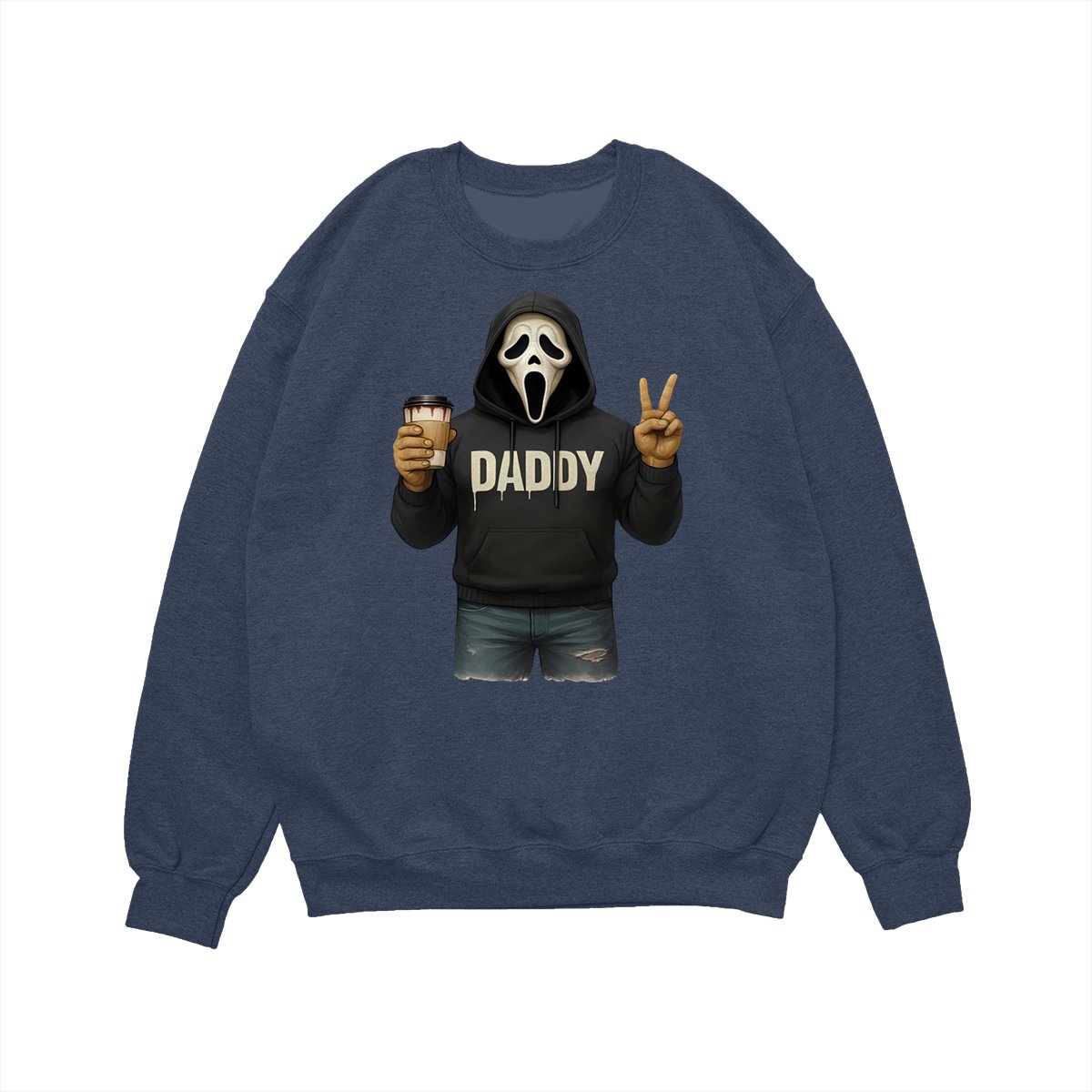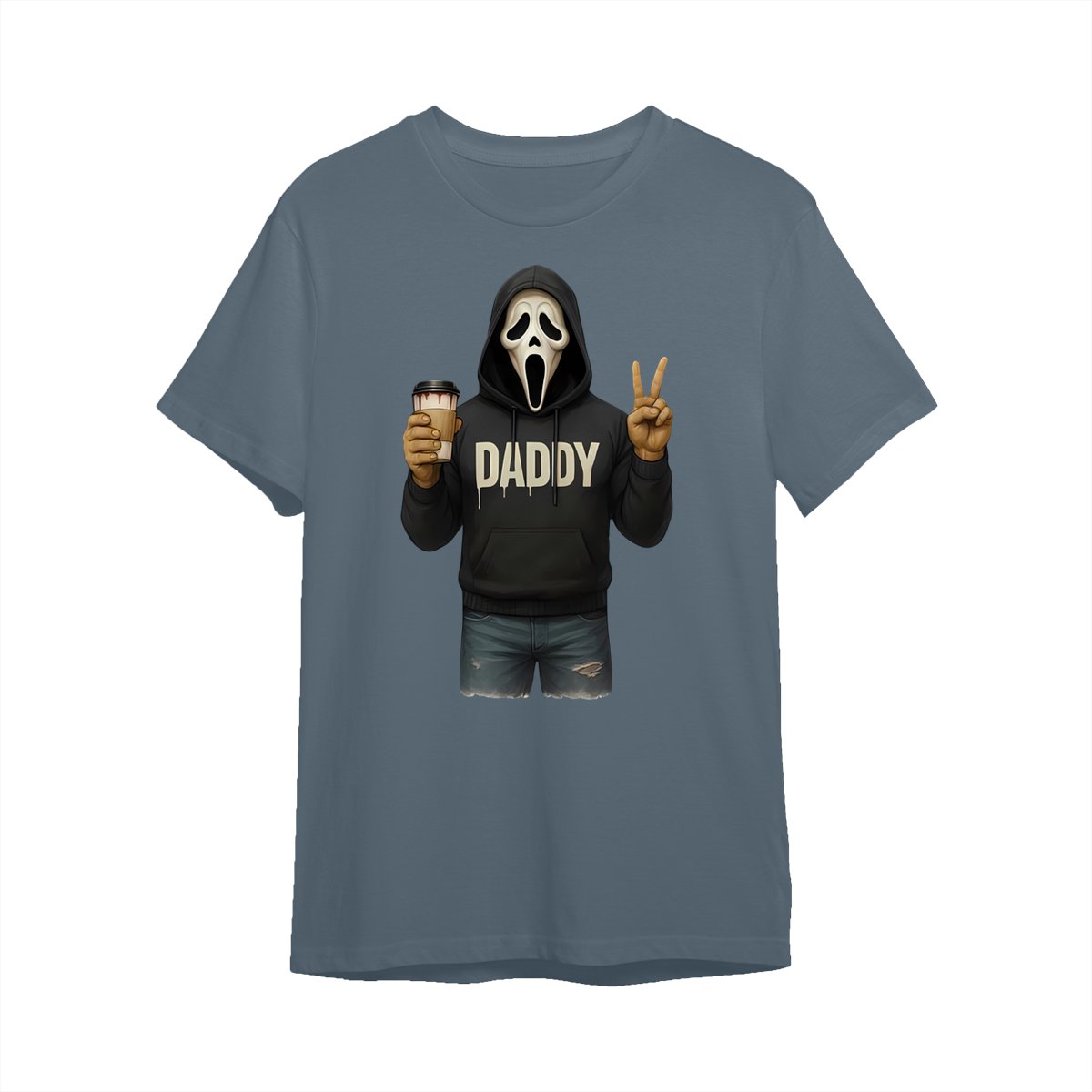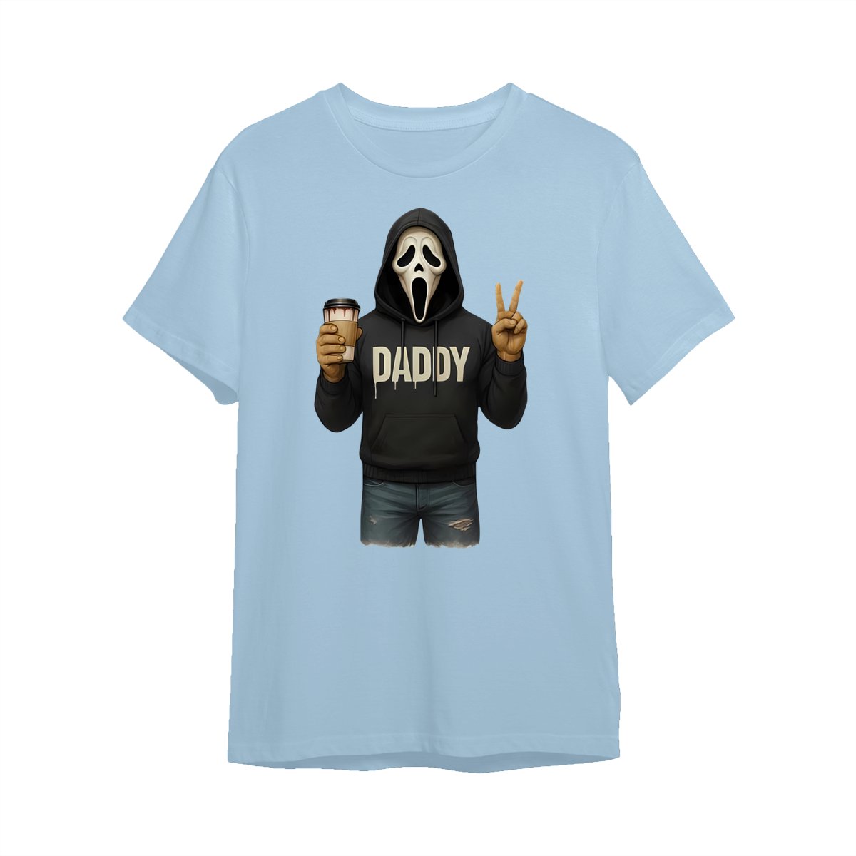 Ghostface Daddy Halloween T-Shirt – Spooky Funny Dad with Coffee Graphic, Creepy Yet Cute Pullover, Cozy Fall Streetwear