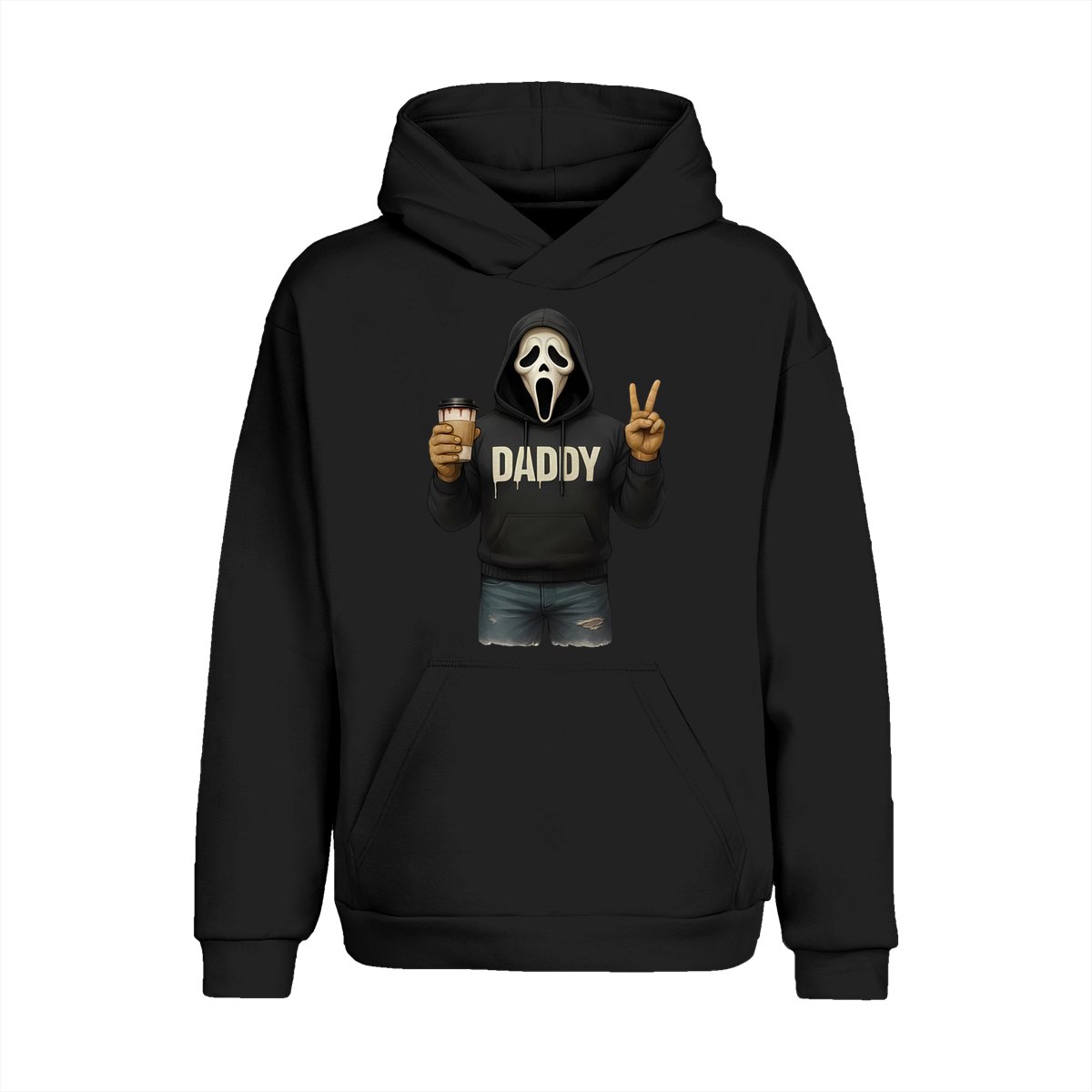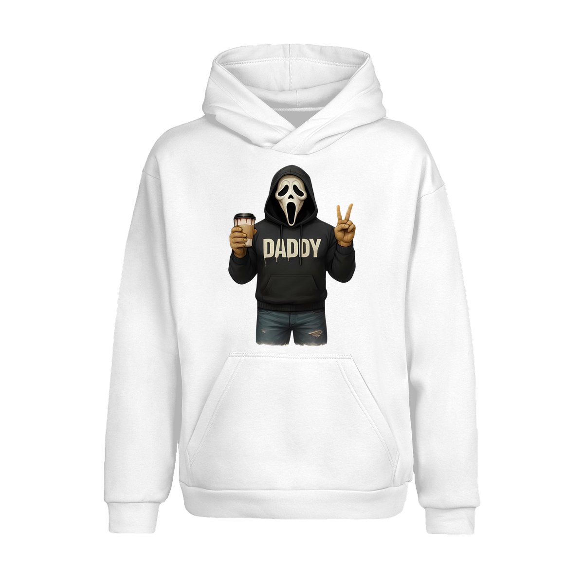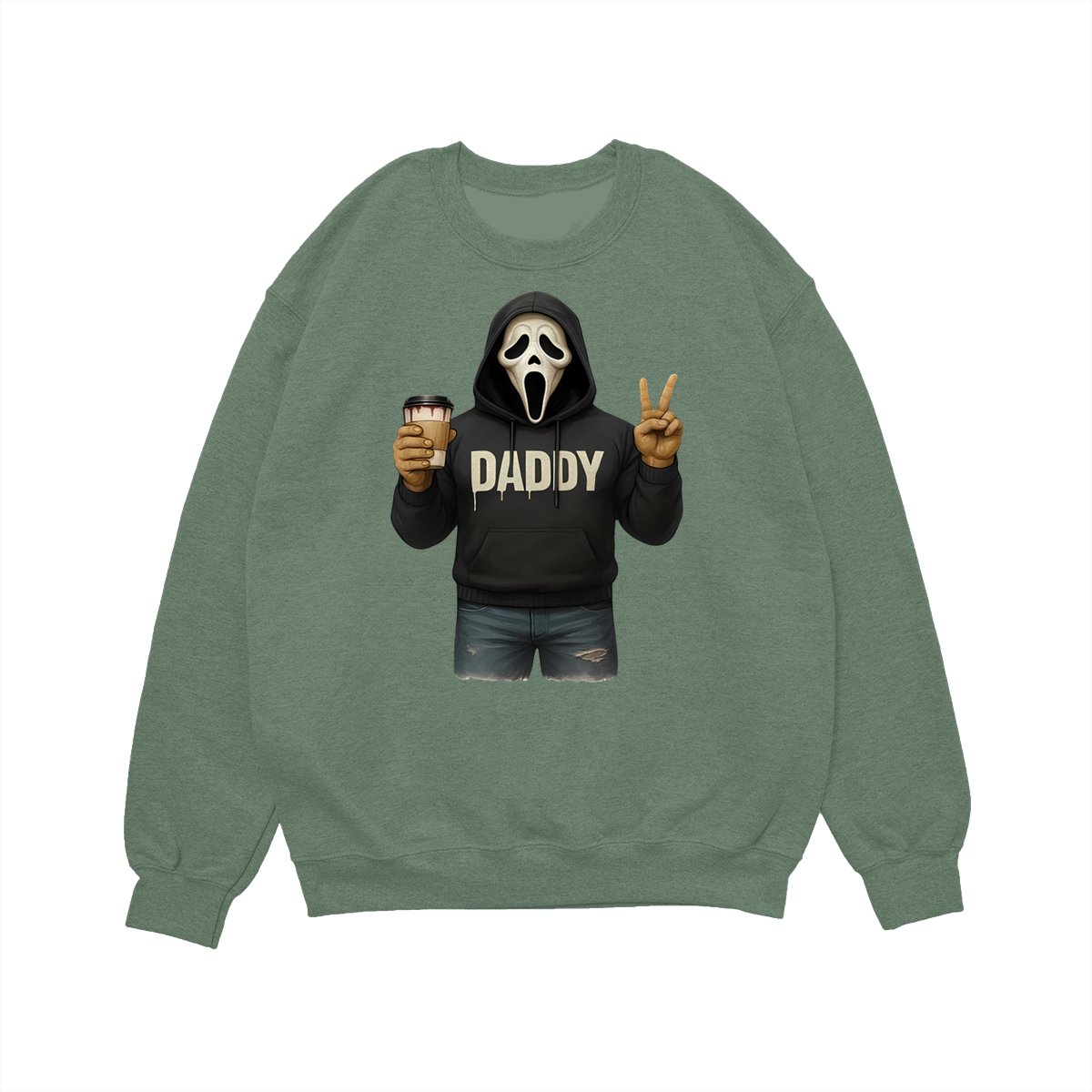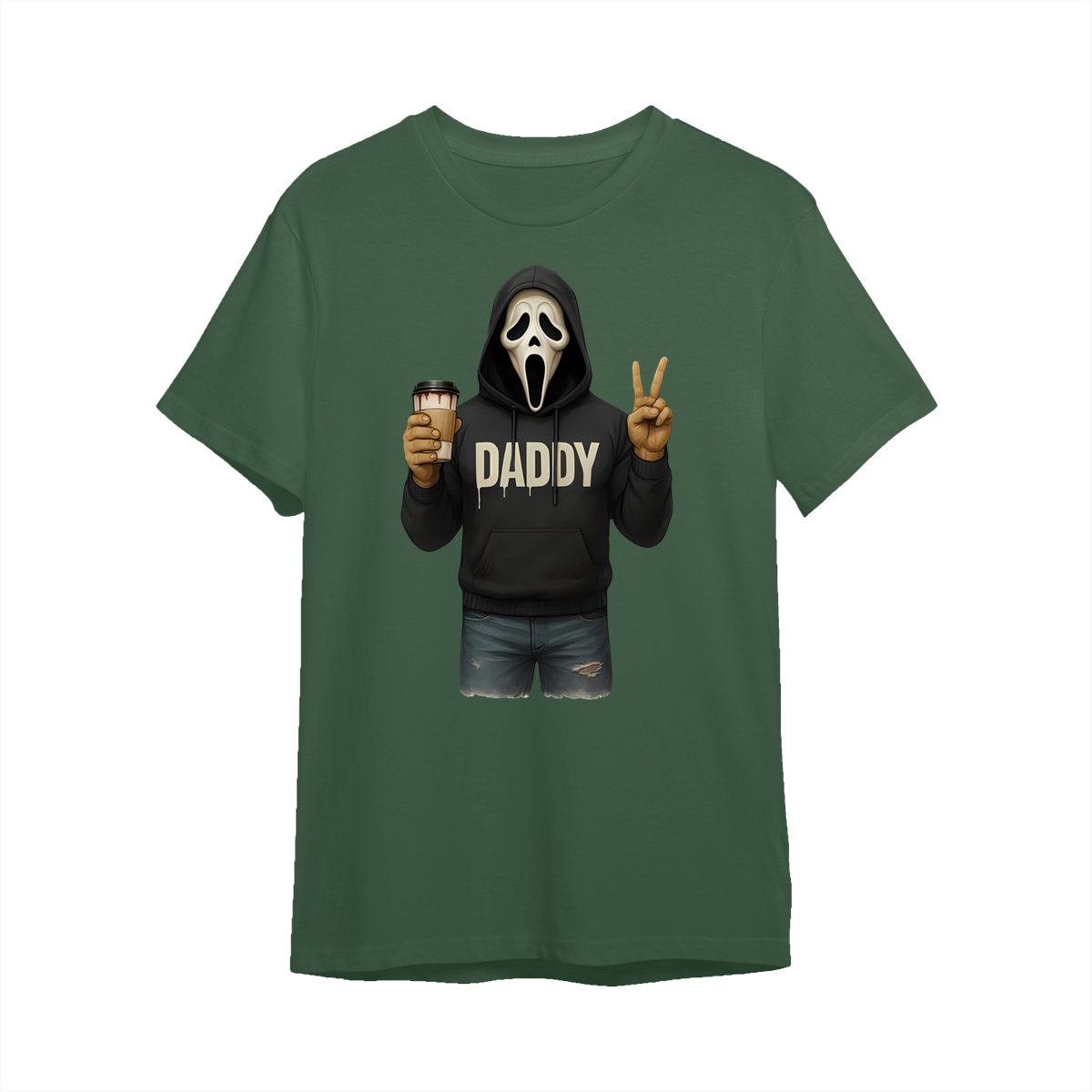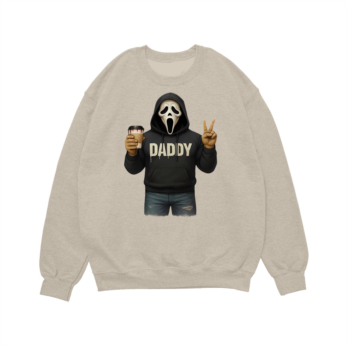 Ghostface Daddy Halloween T-Shirt – Spooky Funny Dad with Coffee Graphic, Creepy Yet Cute Pullover, Cozy Fall Streetwear