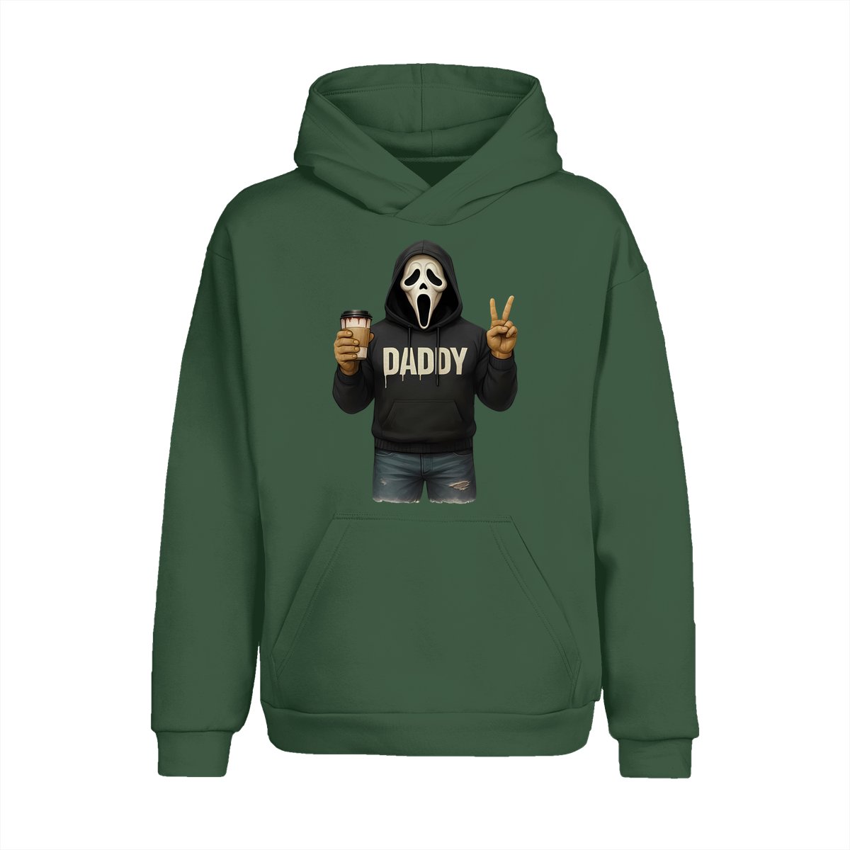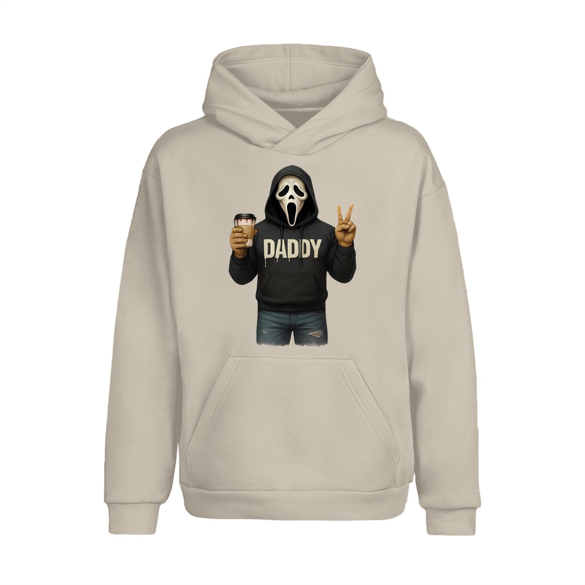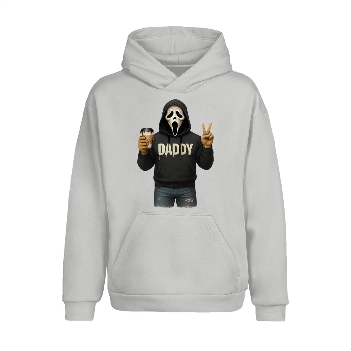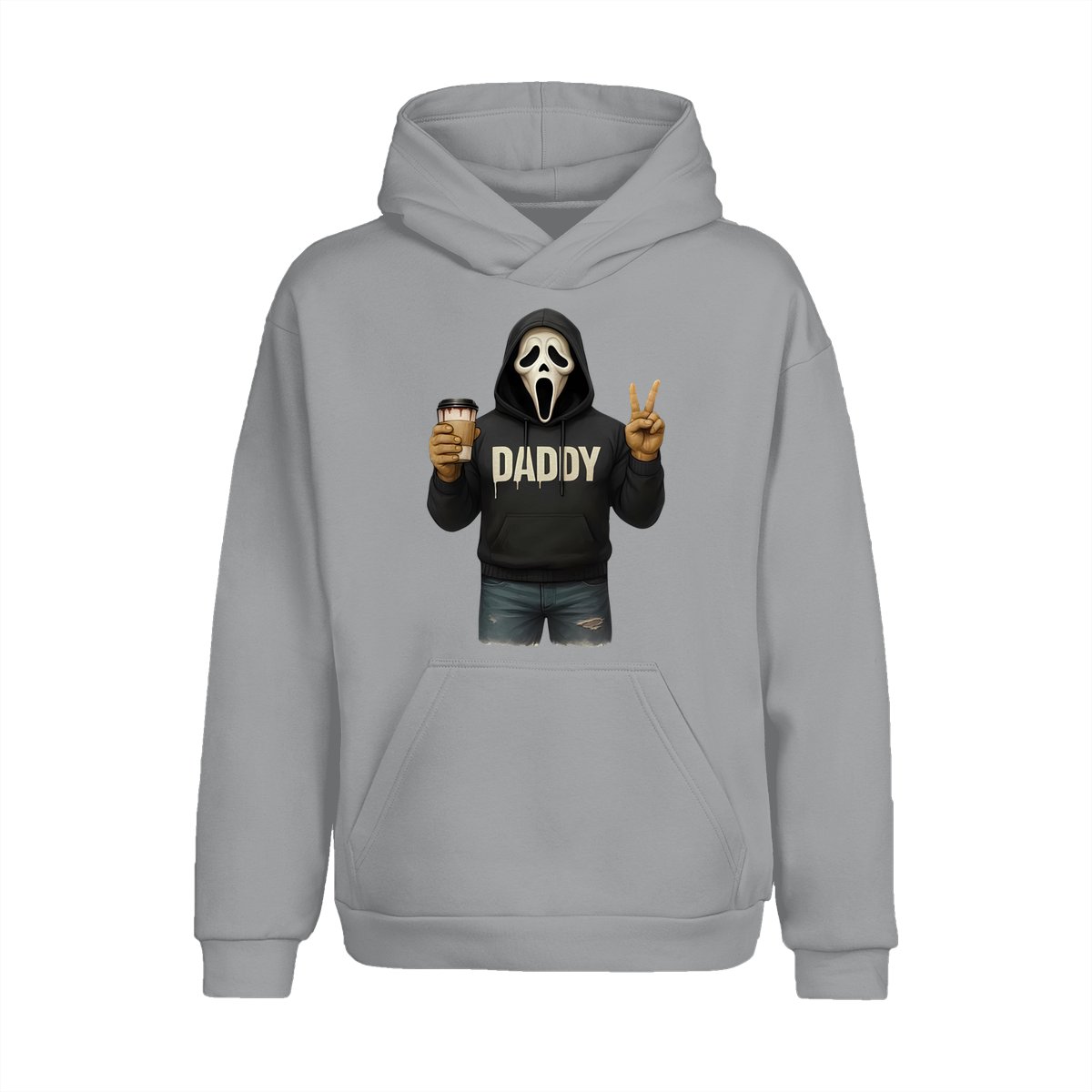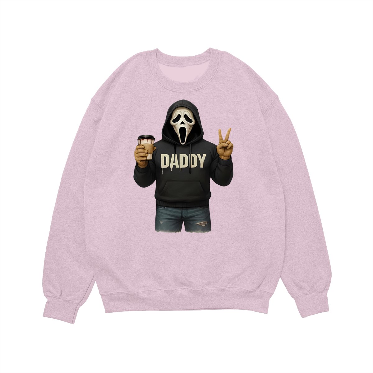 Ghostface Daddy Halloween T-Shirt – Spooky Funny Dad with Coffee Graphic, Creepy Yet Cute Pullover, Cozy Fall Streetwear