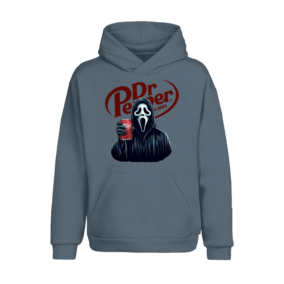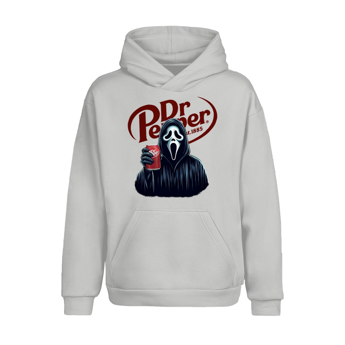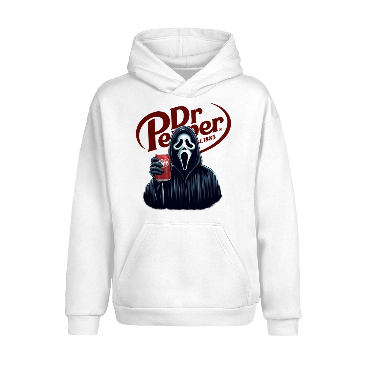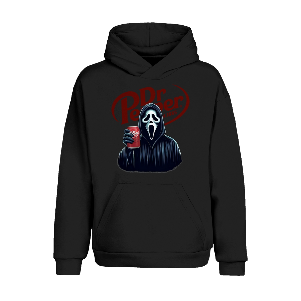 Ghostttface Parody Shirt Tee, Dr Pepper Horror Pullover Sweatshirt, Funny Halloween Hoodie, Oversized Fit Streetwear, Scary Movie Graphic Apparel, Spooky Gift Hoodie, Unisex