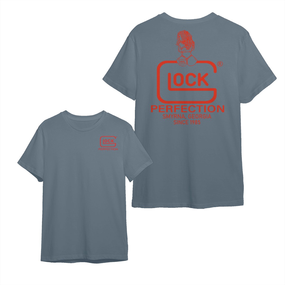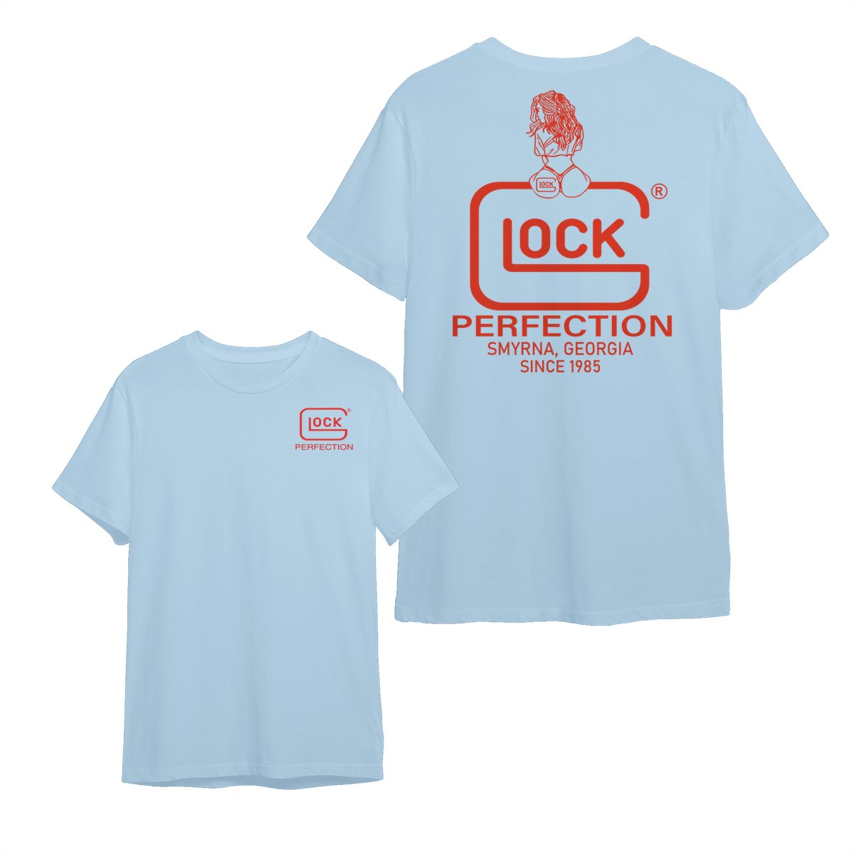 Girl Sit on Glock Logo T-Shirt, Gift for Glock Fans, Unisex Short Sleeve Casual 100% Cotton, Tactical Gear, Made in USA